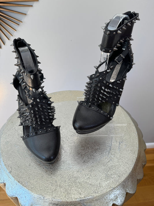 BCBGMAXAZRIA - Black Snake Embossed Spiked Vamp Pumps