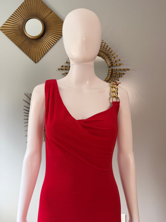 Calvin Klein - Red Fitted Dress w/ Gold Chain