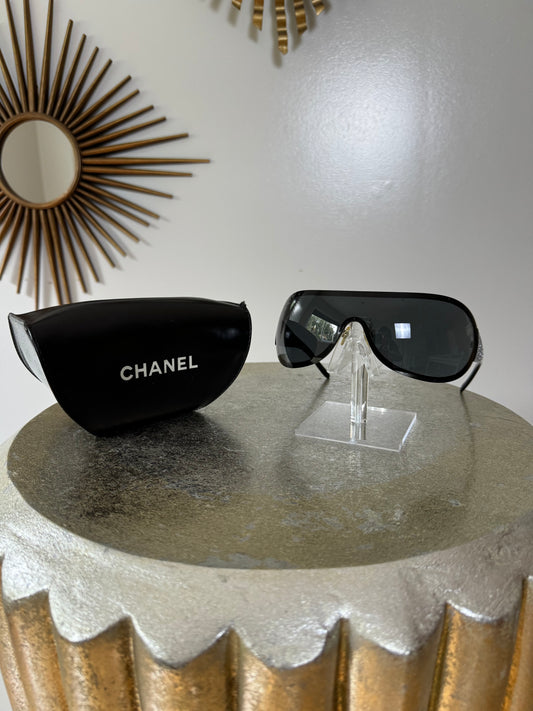 CHANEL - Black Shield Mod 4148B Sunglasses W/ Crystals