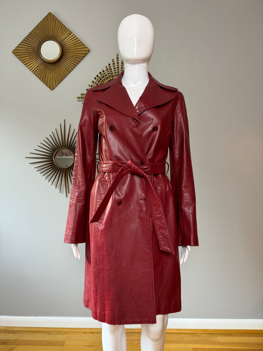 Theory - Burgundy Leather Trench Coat