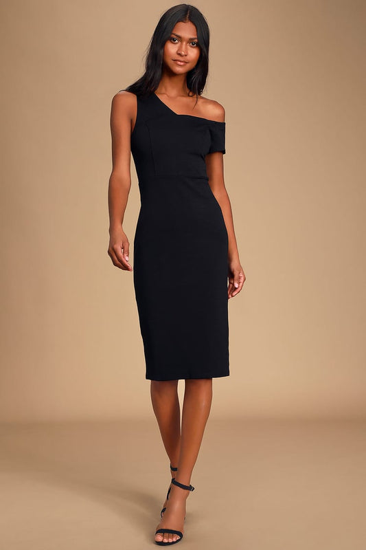 Lulu’s - Black One Shoulder Bodycon Midi Dress