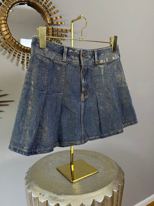 ZARA - Blue Denim Mini Skirt w/ Gold Accents