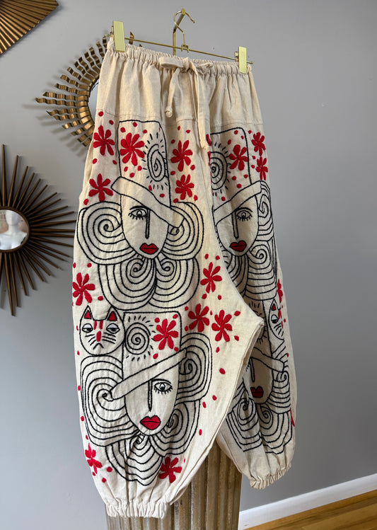 Madame Red Hand Embroidered Pants