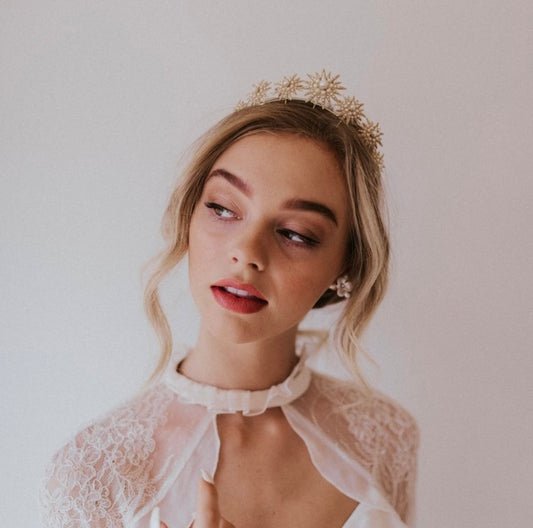 Untamed Petal - Gold Violeta Tiara w/ Pearl Details