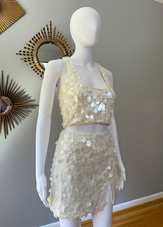 MESHKI - Ivory Maude Sequin Skirt & Top Set