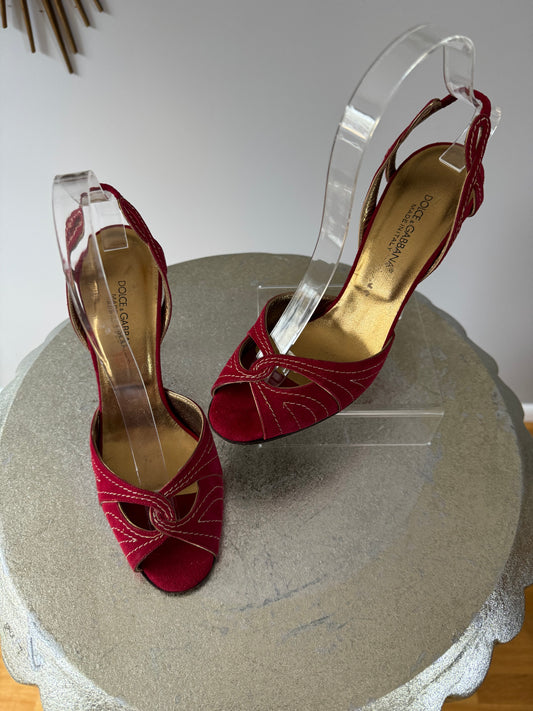 Dolce & Gabbana - Red Suede Slingback Sandals
