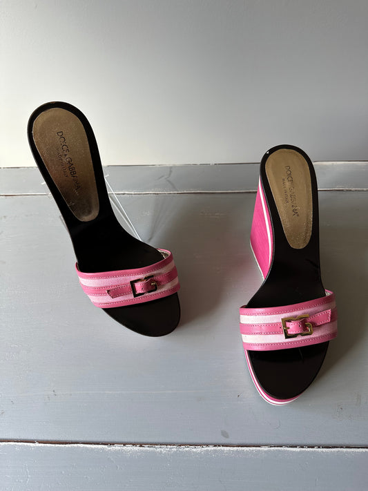 Dolce & Gabbana - Sandalias con cuña de lona/piel de becerro beige y rosa