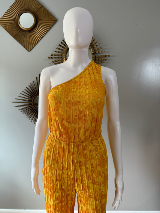 Zara - Gold Jacquard One Shoulder Jumpsuit