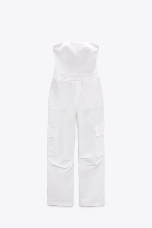ZARA - White Strapless Cargo Jumpsuit