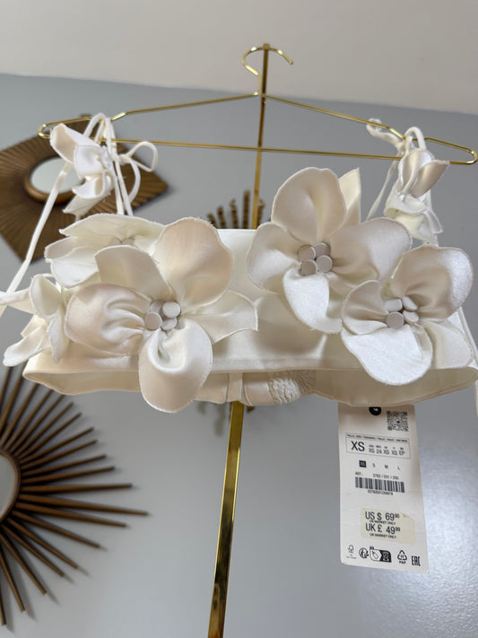 ZARA - Beige Flower Crochet Top & Skirt Set