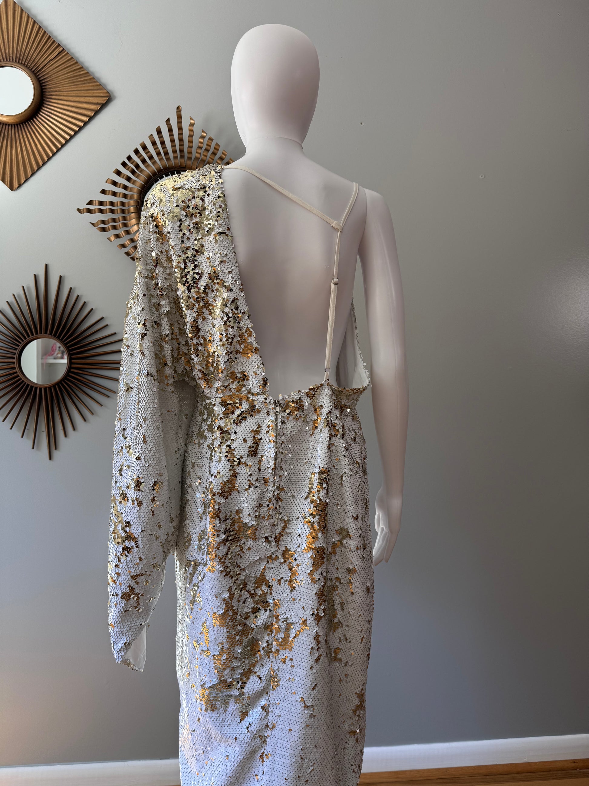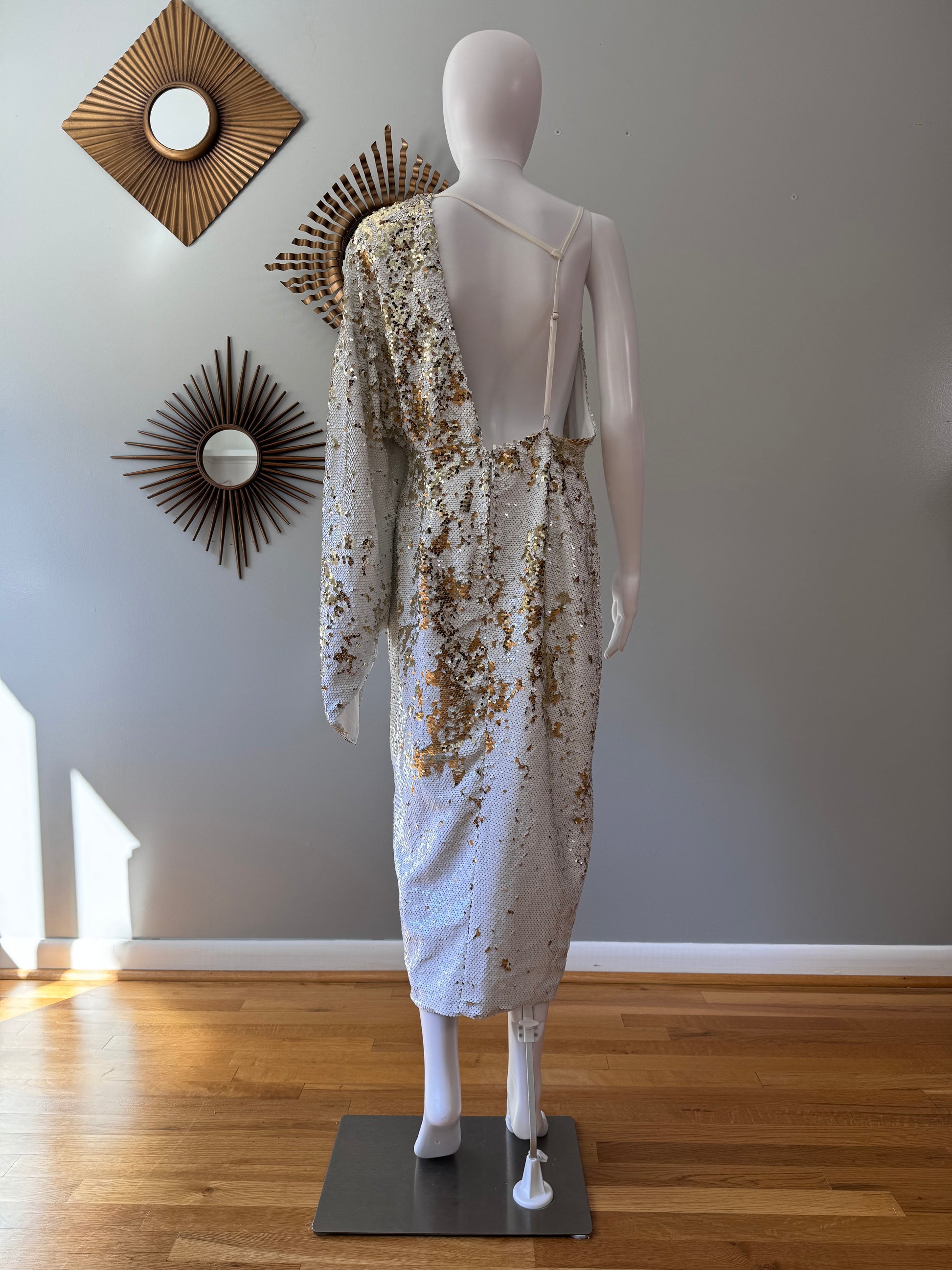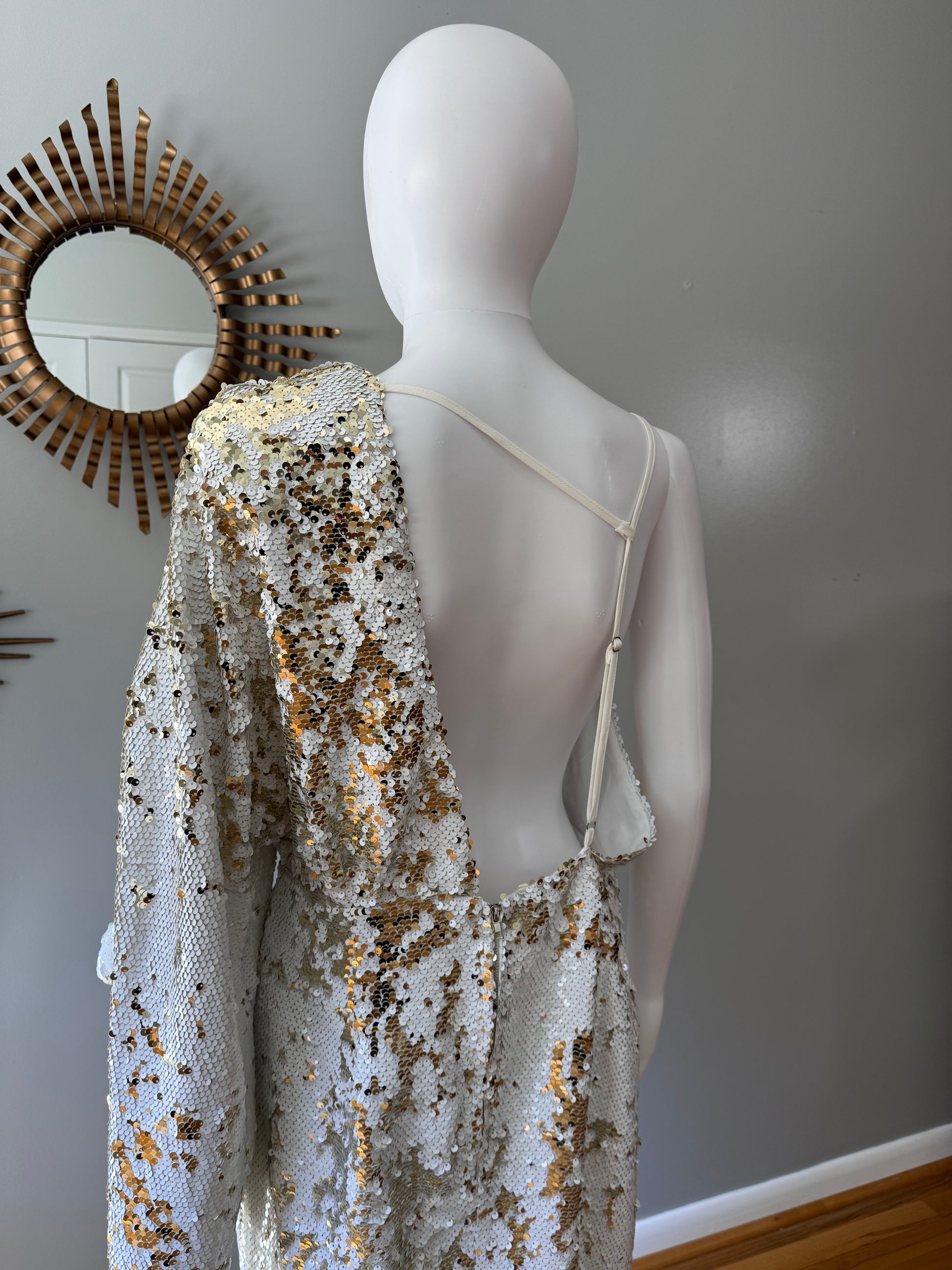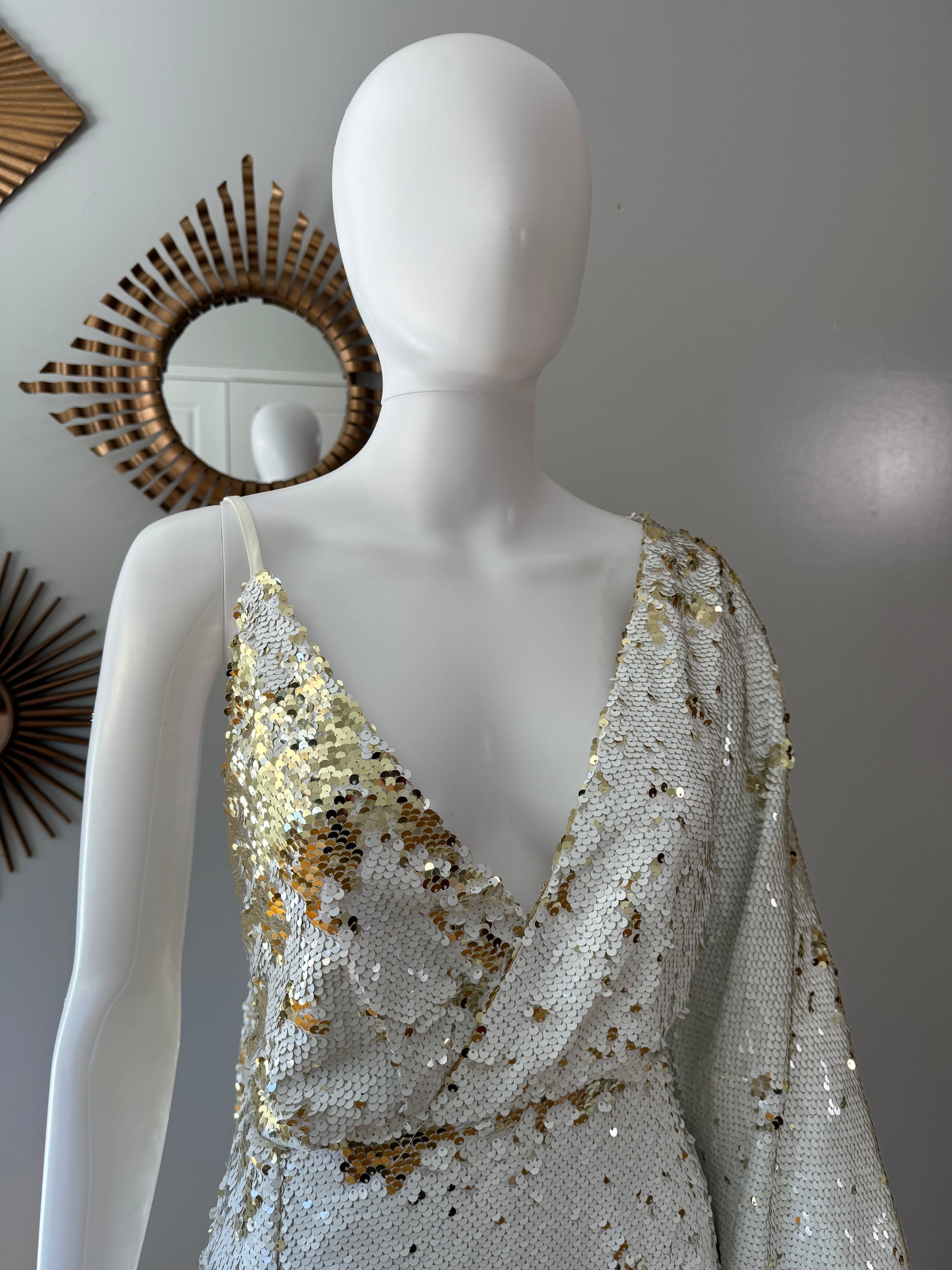 Es tu momento de brillar, ¿y qué mejor manera de hacerlo que con este vestido de lentejuelas? Abraza la sensación brillante y reluciente de este vestido adornado con lentejuelas y brinda una versión elegante y moderna de las lentejuelas en tu próximo evento elegante. Combina este vestido brillante con tacones negros para lograr un conjunto sofisticado perfecto para una noche de chicas.