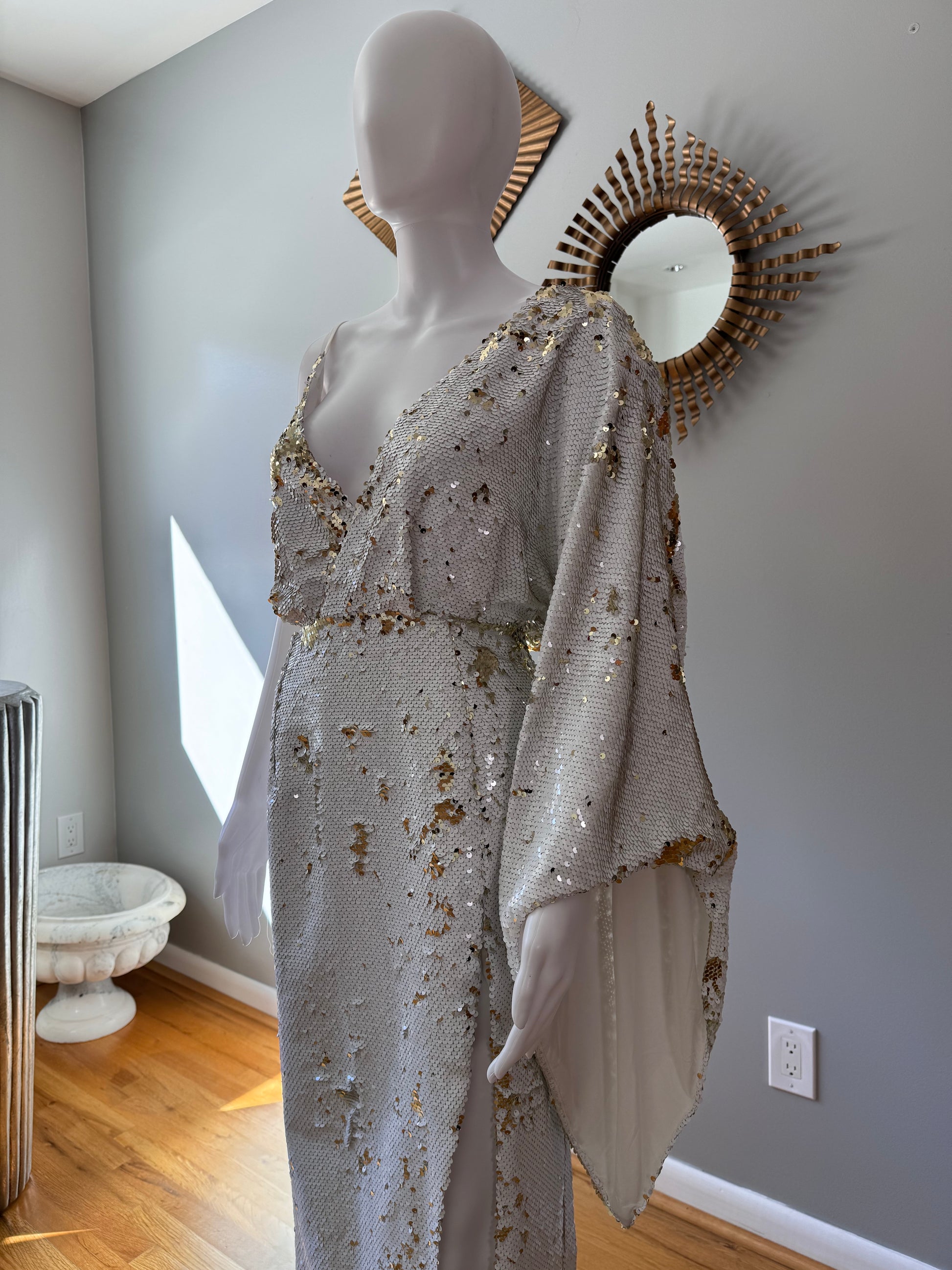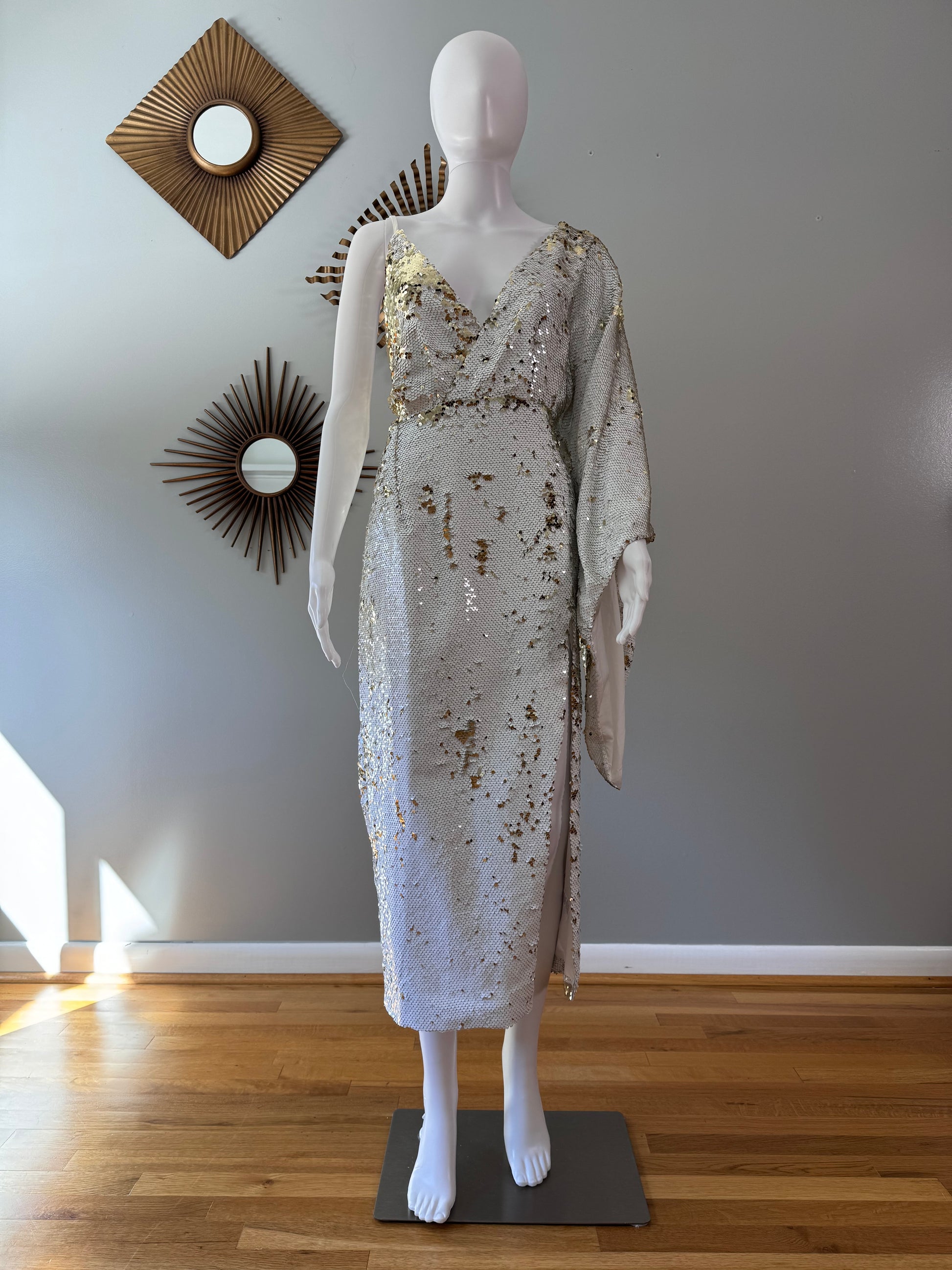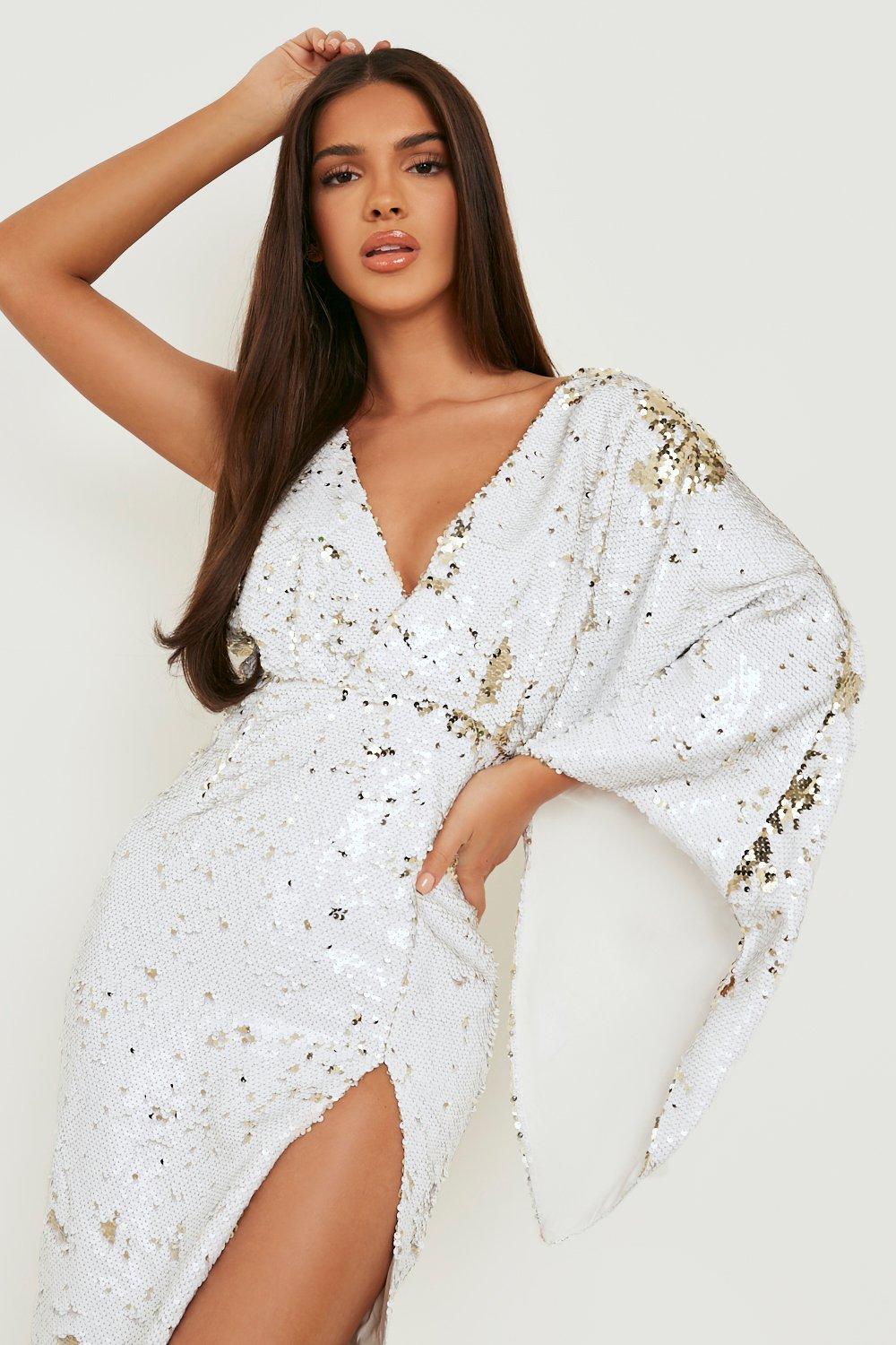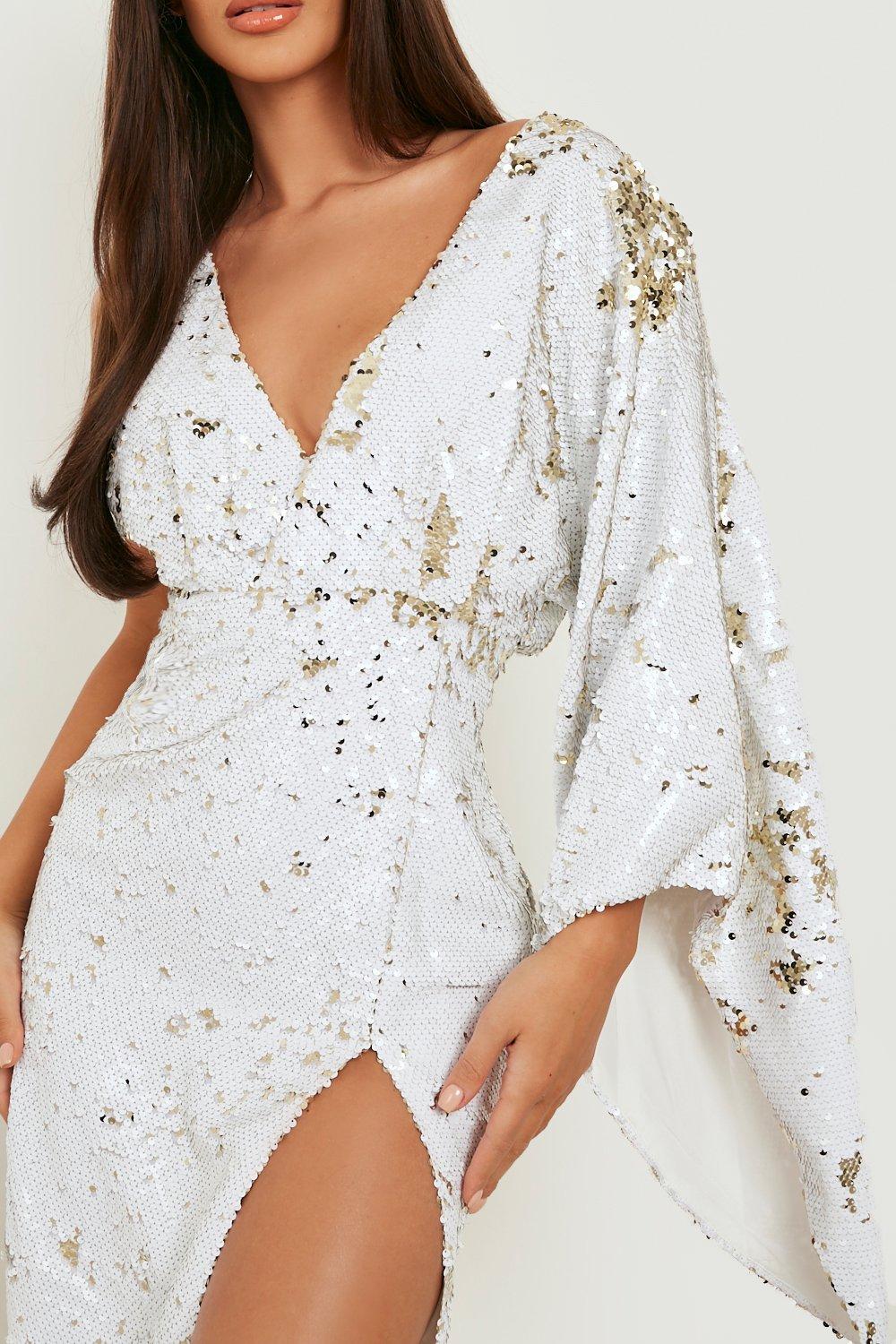 Boohoo - Vestido largo con mangas de ángel y lentejuelas