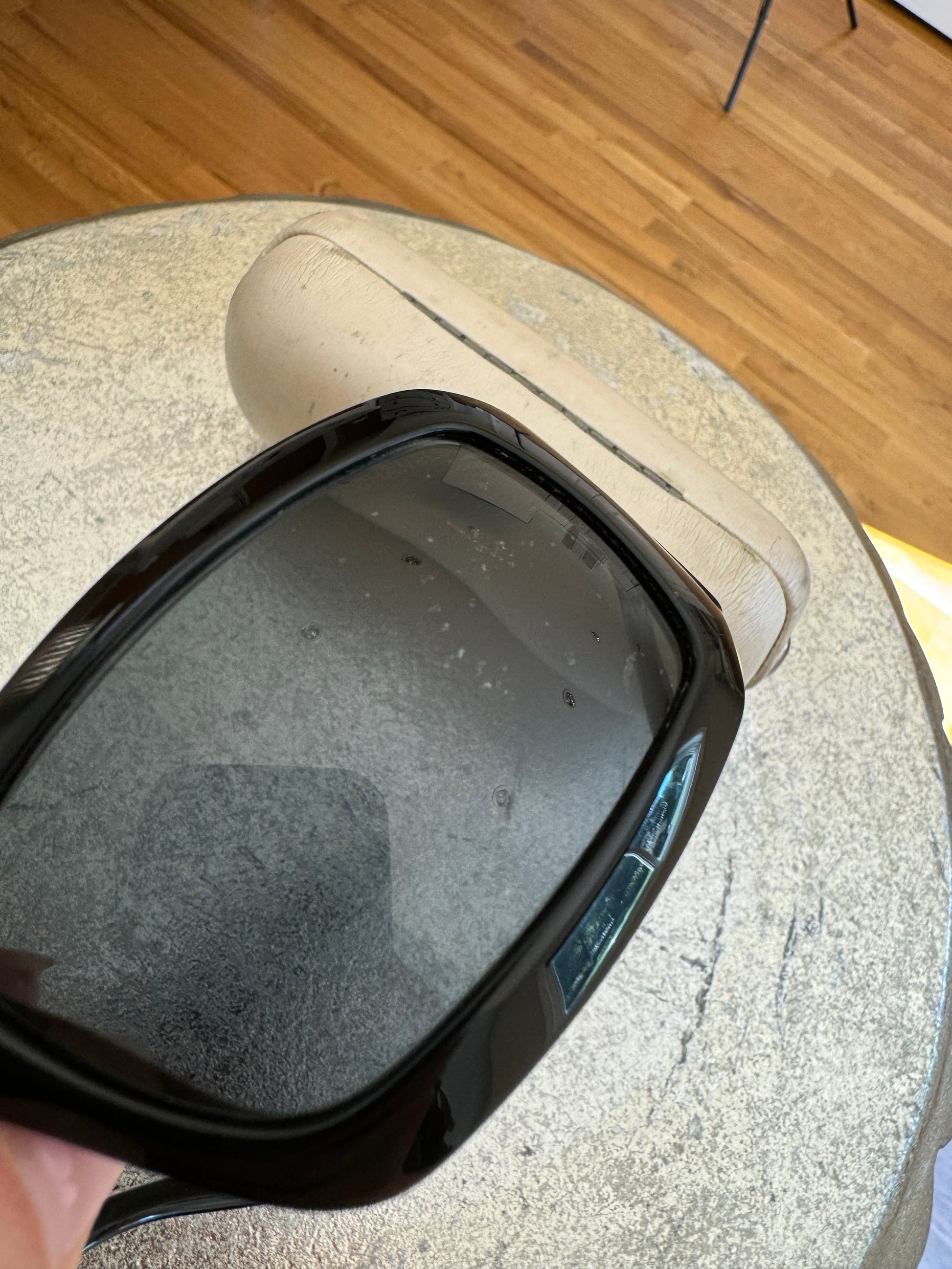 Good pre-owned condition with a bunch of tiny bubbles on the lenses coating. These do not affect visibility and not noticeable while wearing.