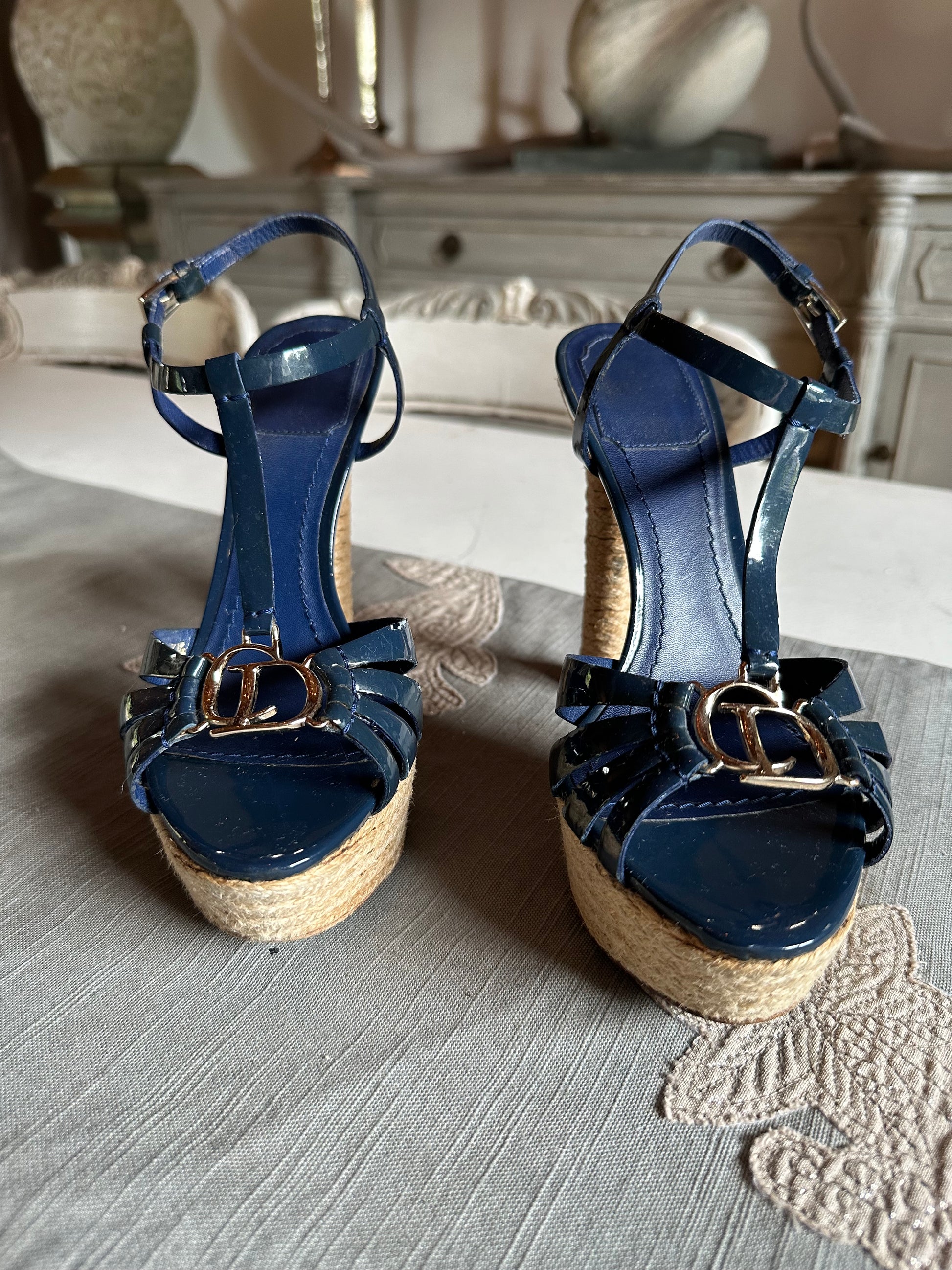 Christian Dior - Blue Patent Leather Strappy Sandals