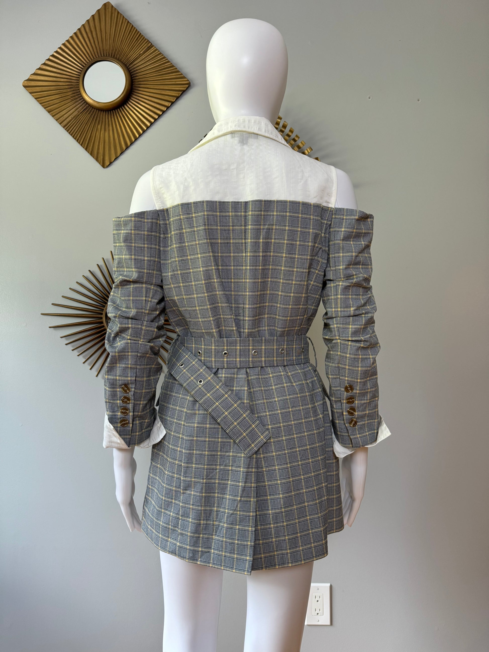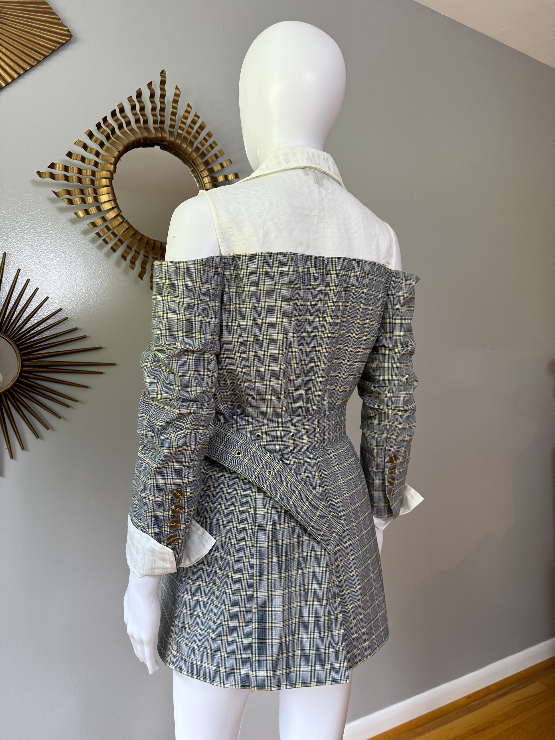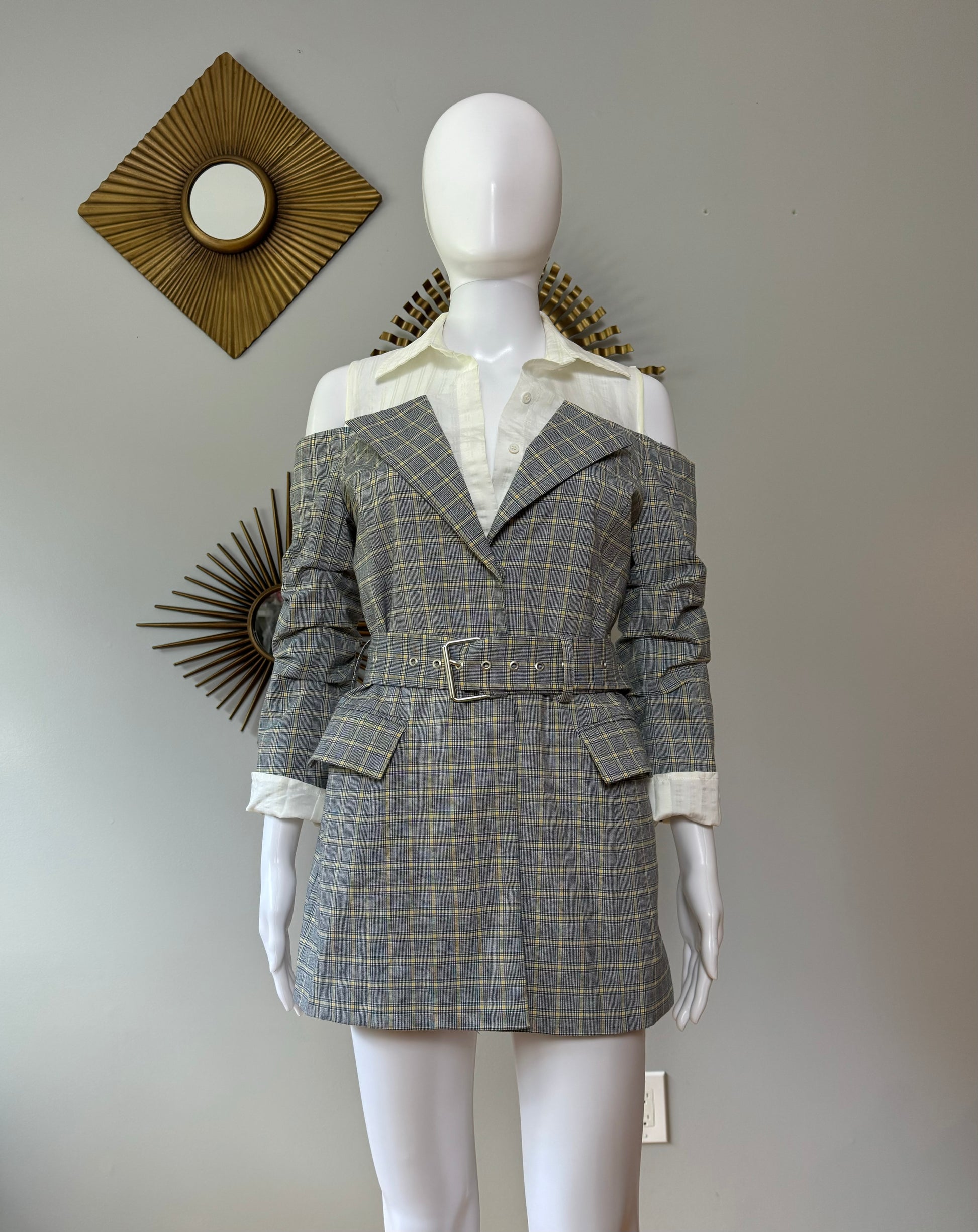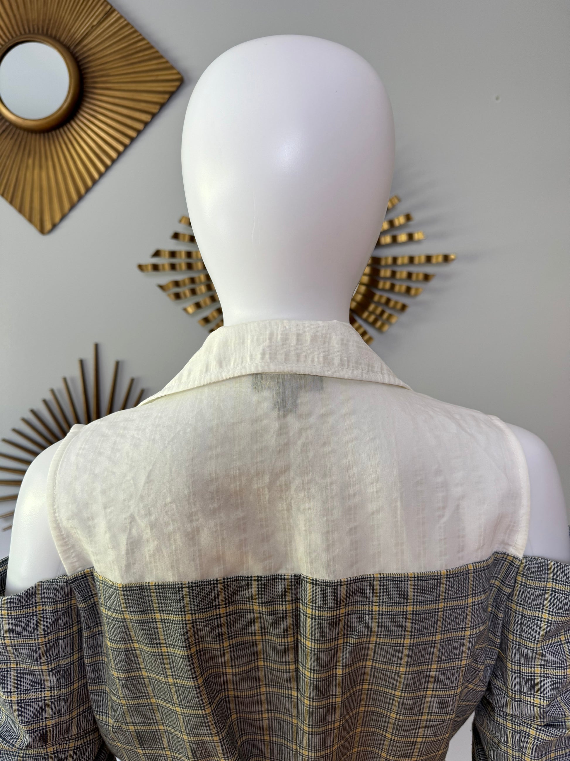 Current Air - Gray Plaid Open Shoulder Top