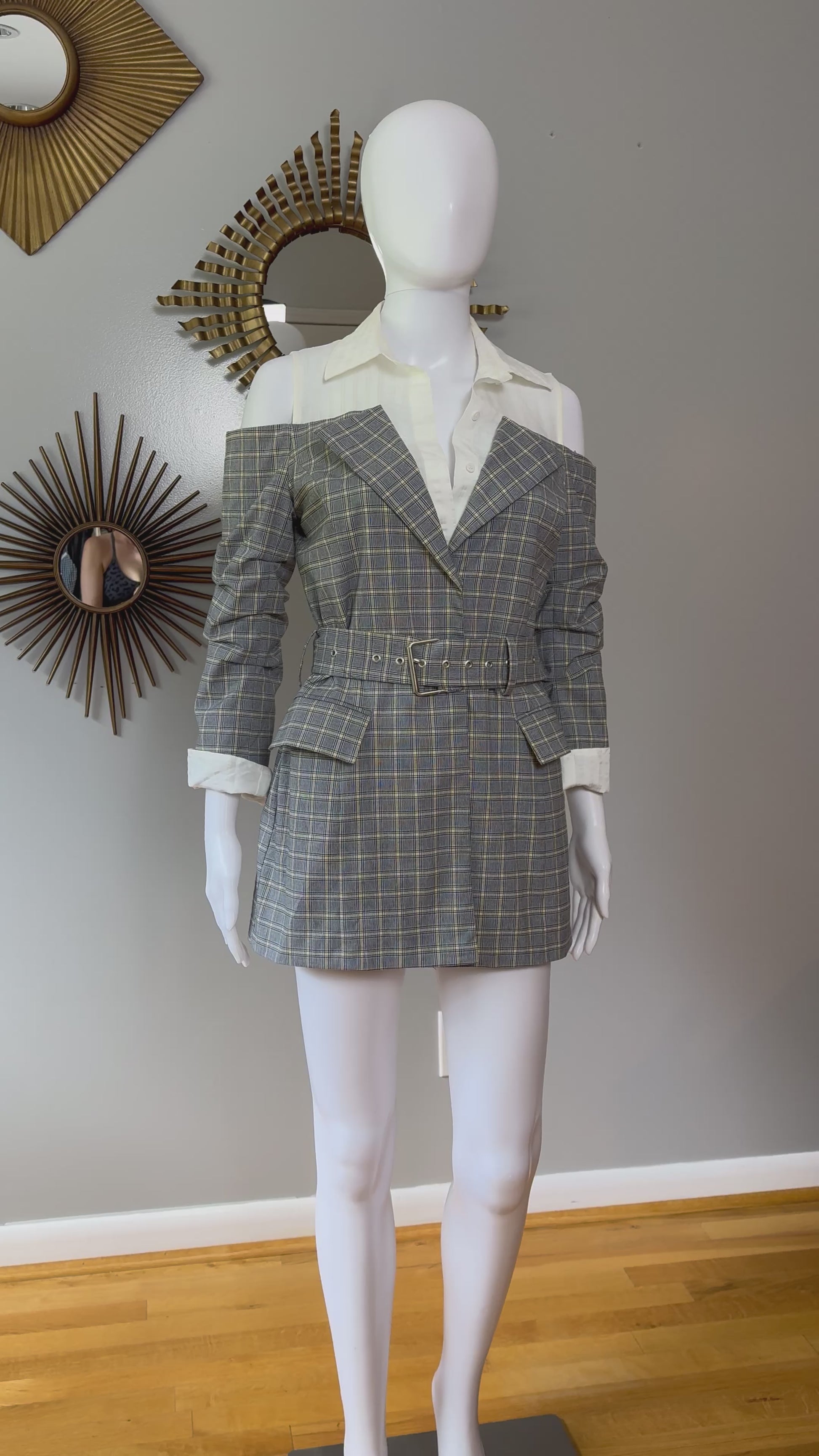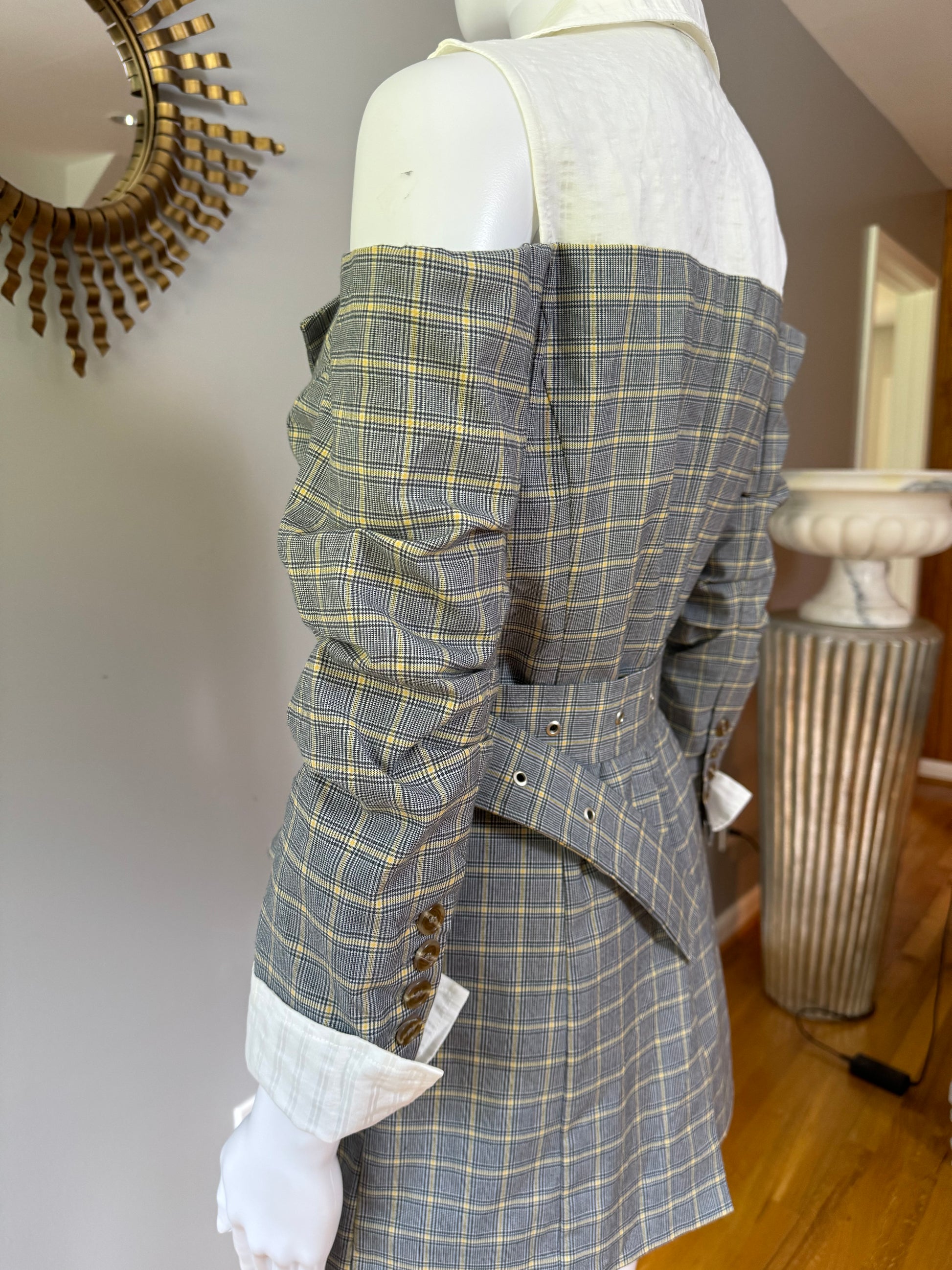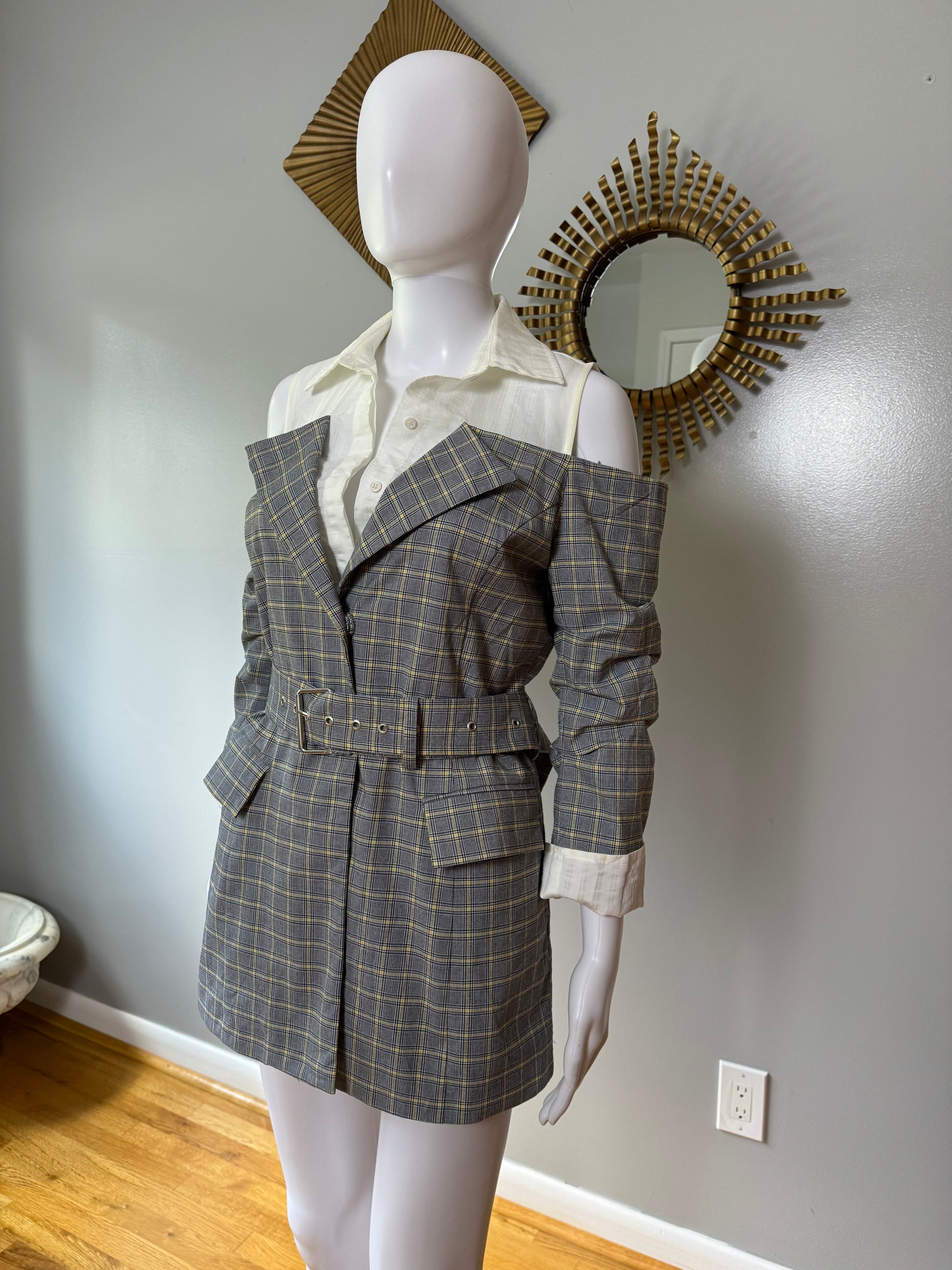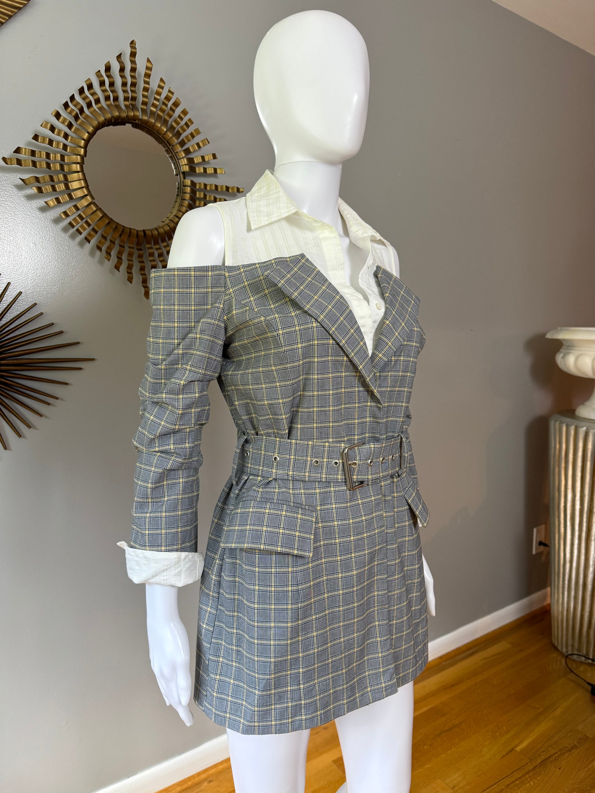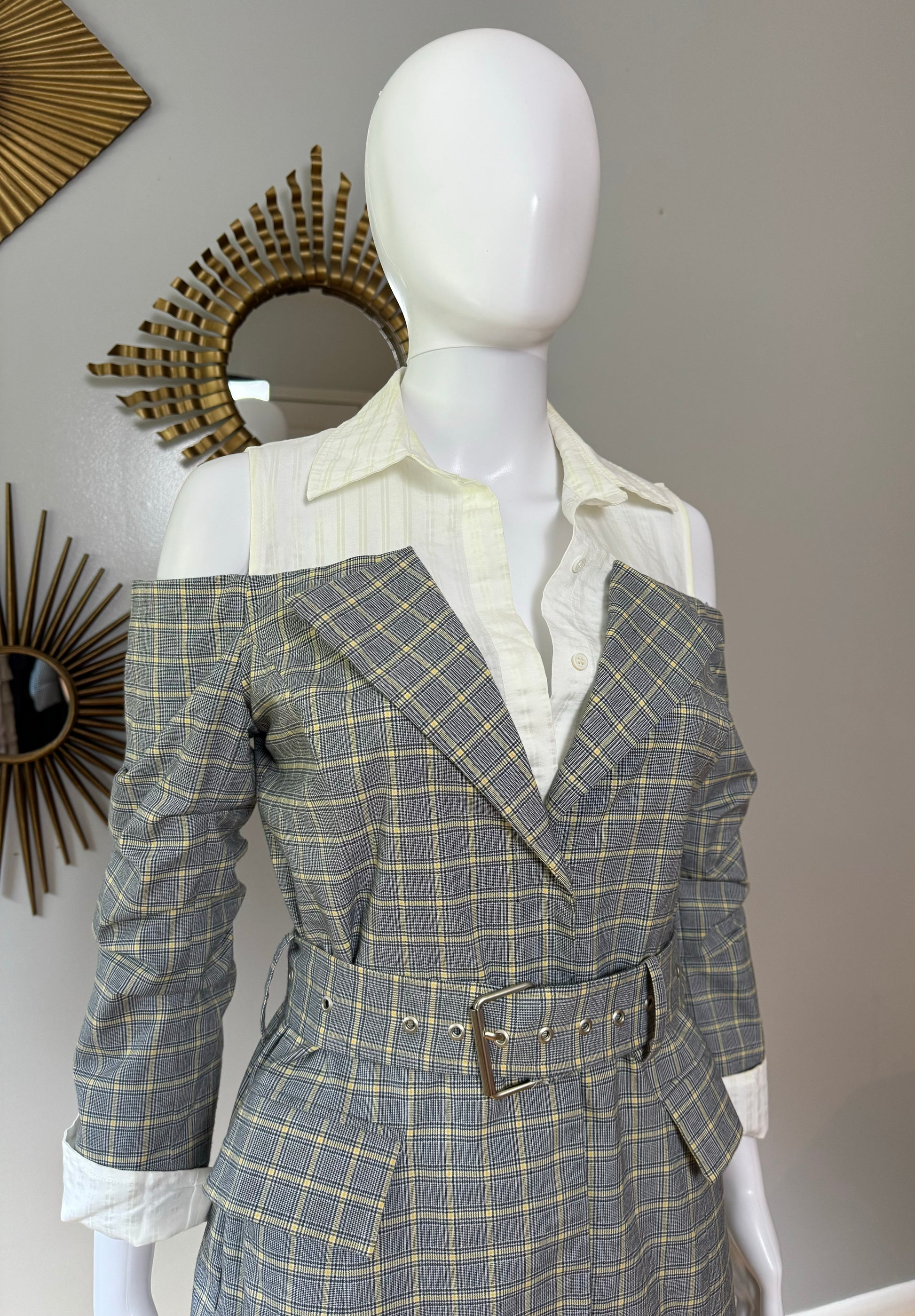 Current Air - Gray Plaid Open Shoulder Top