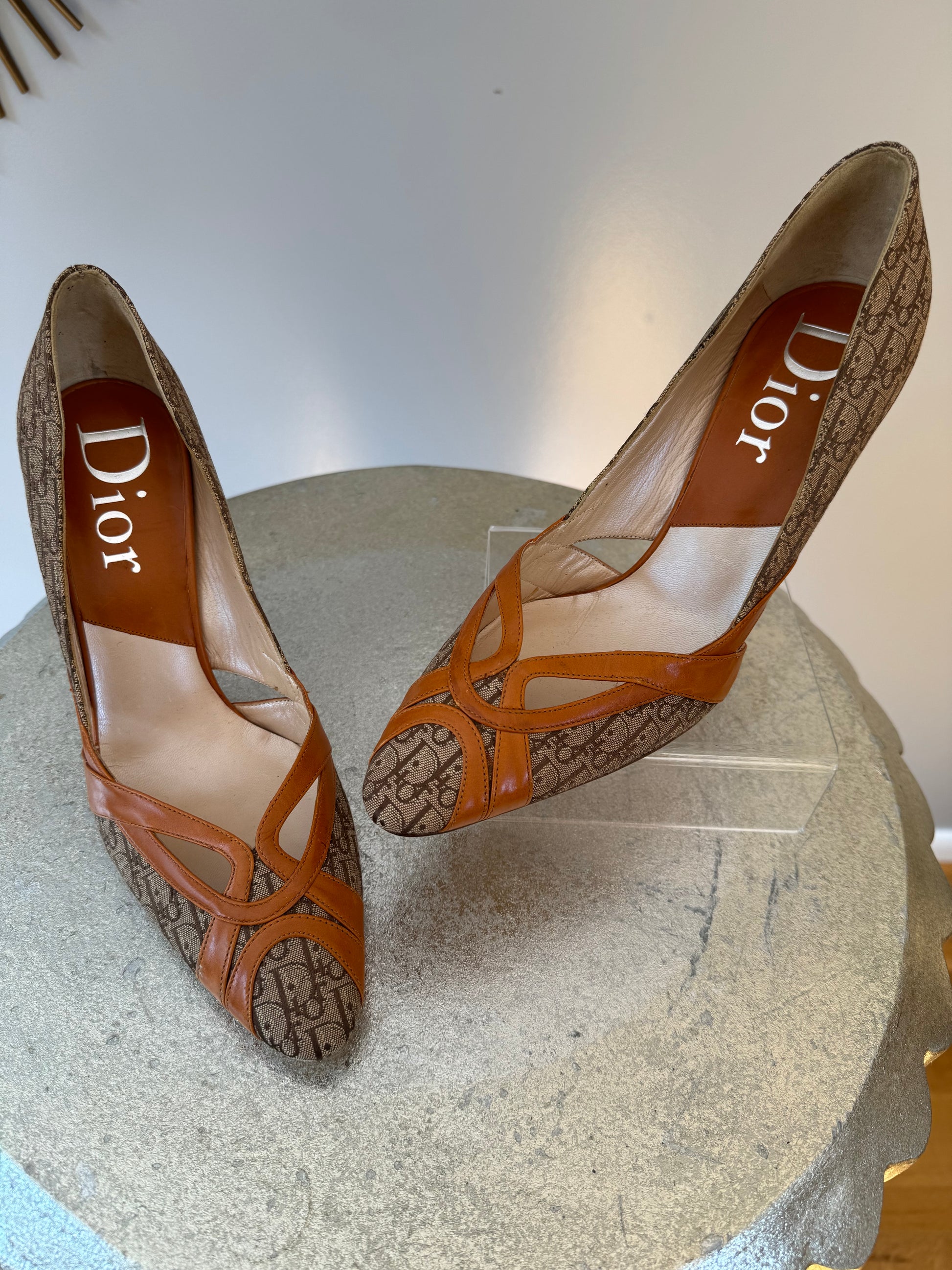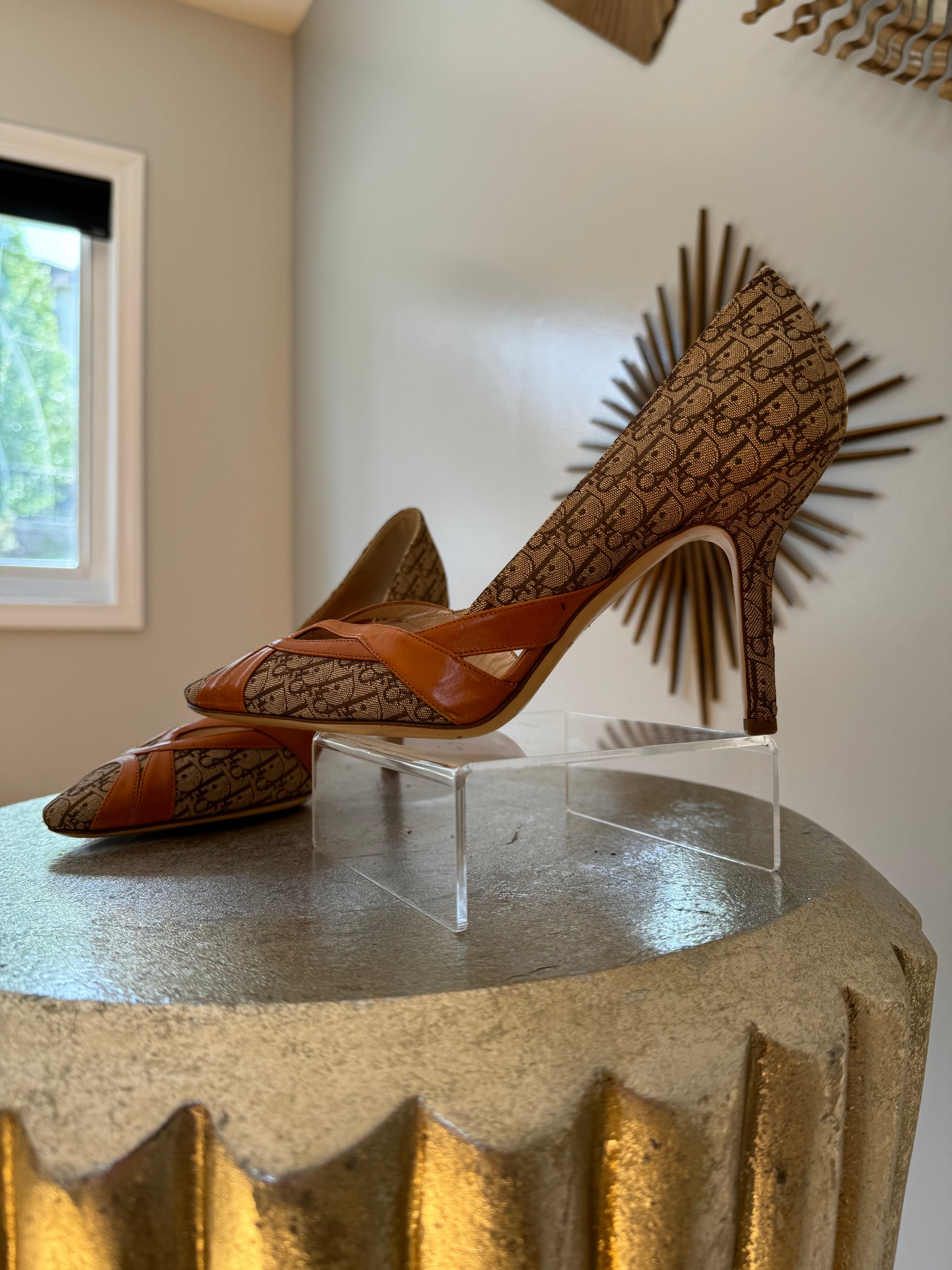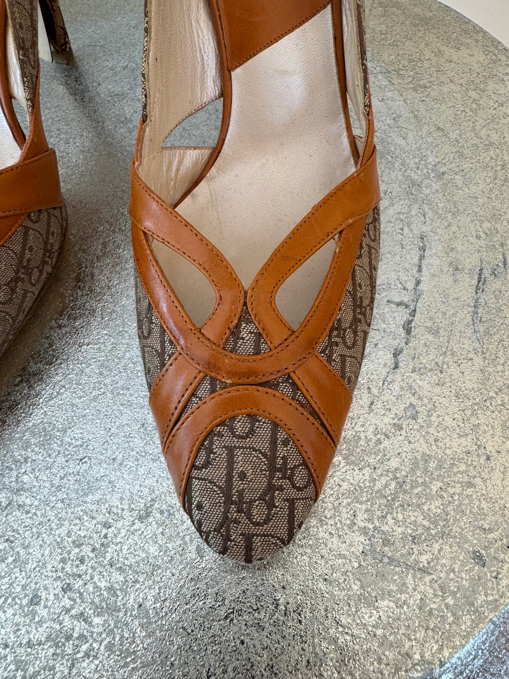 Dior - Brown Diorissimo Canvas & Leather Trim Pumps