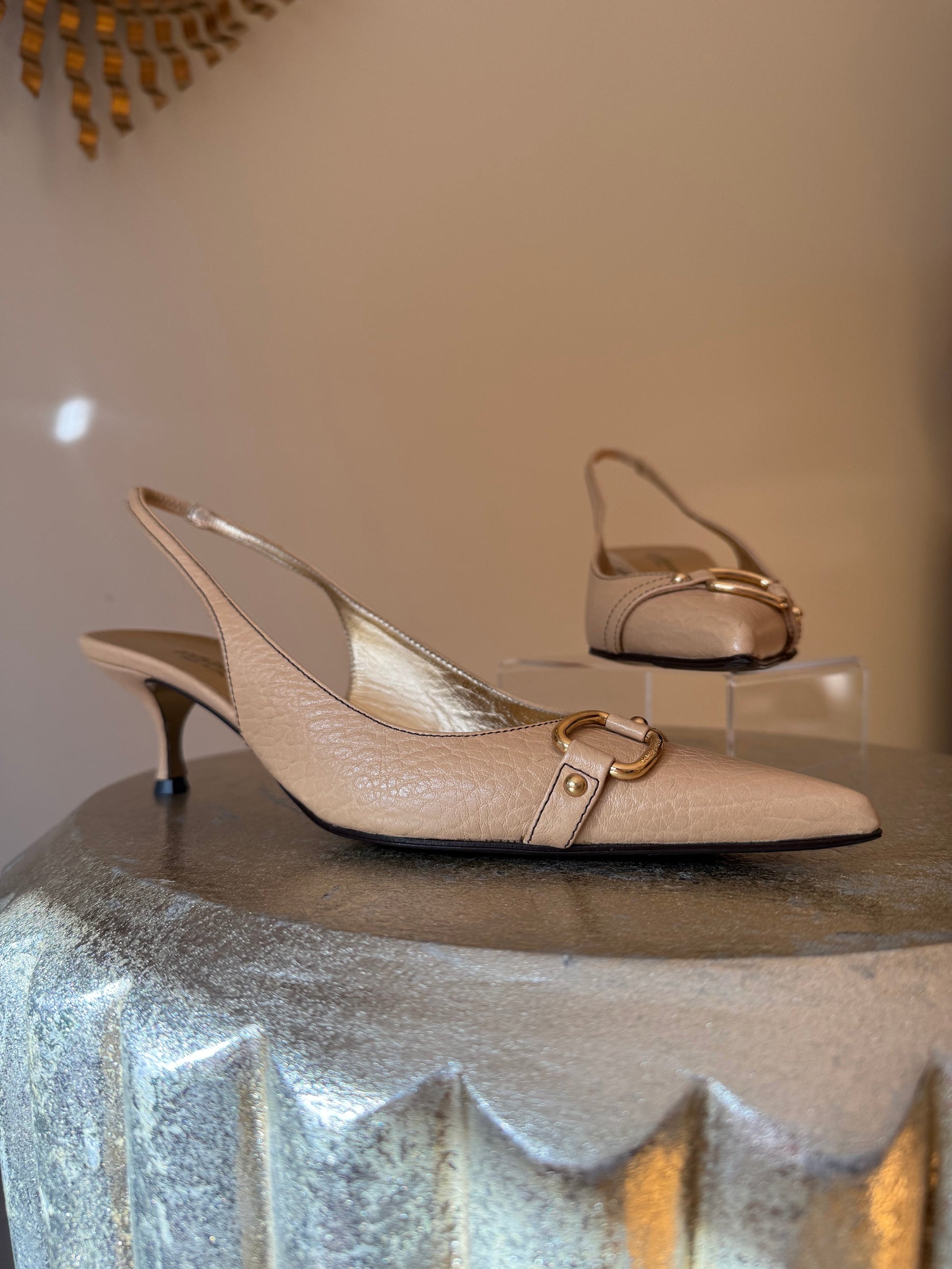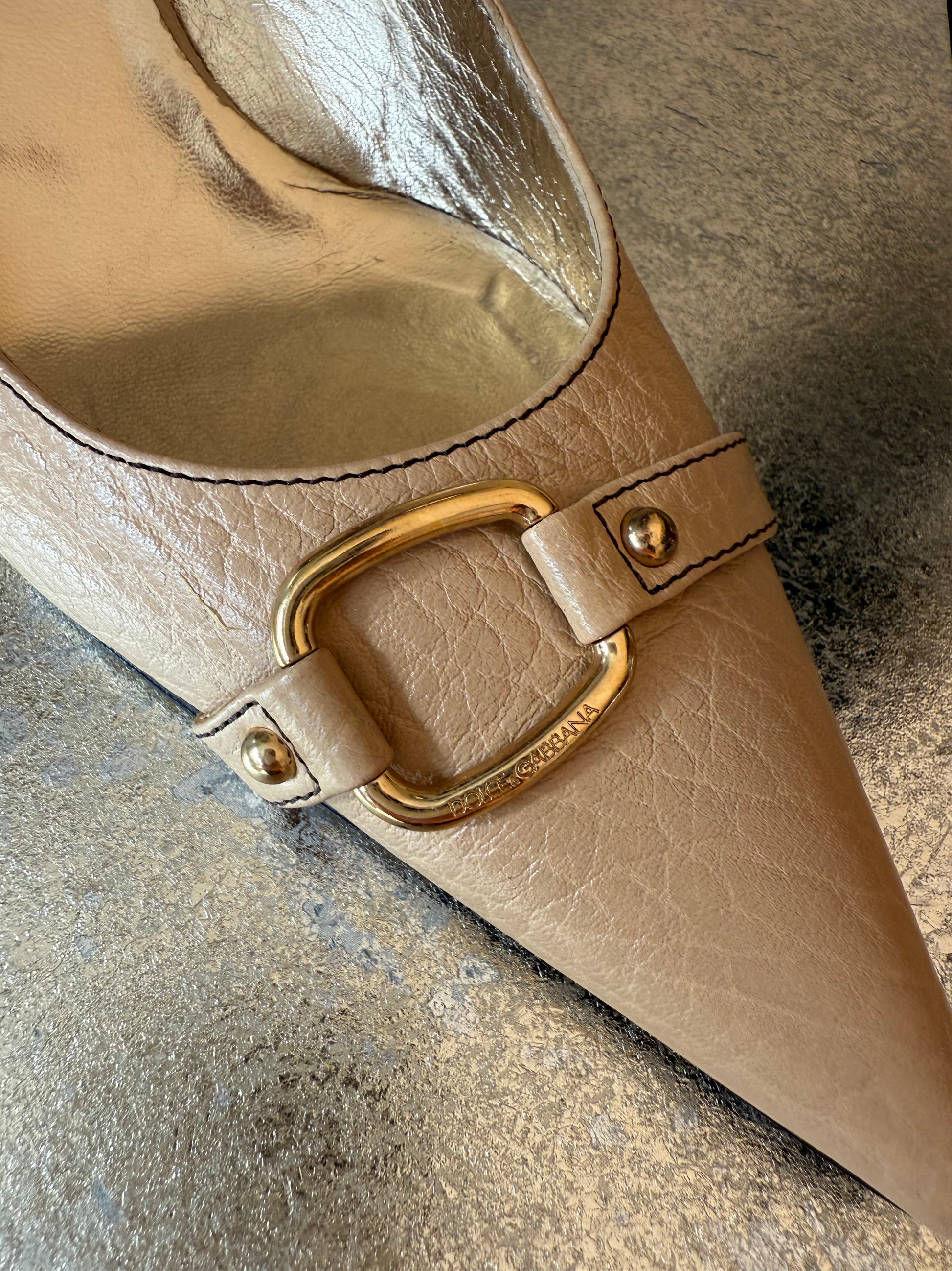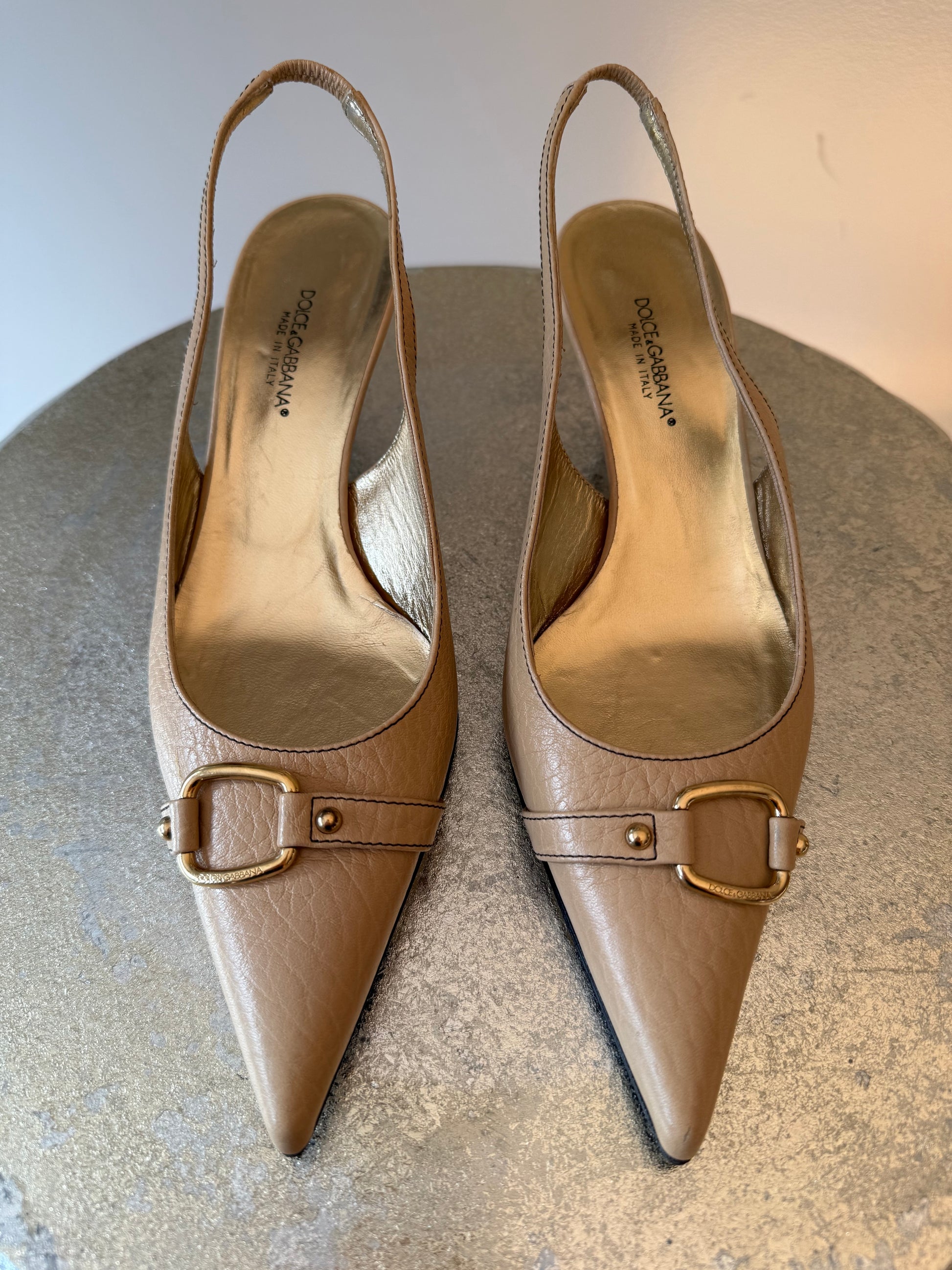 Dolce & Gabbana - Beige Leather Slingback Pumps
