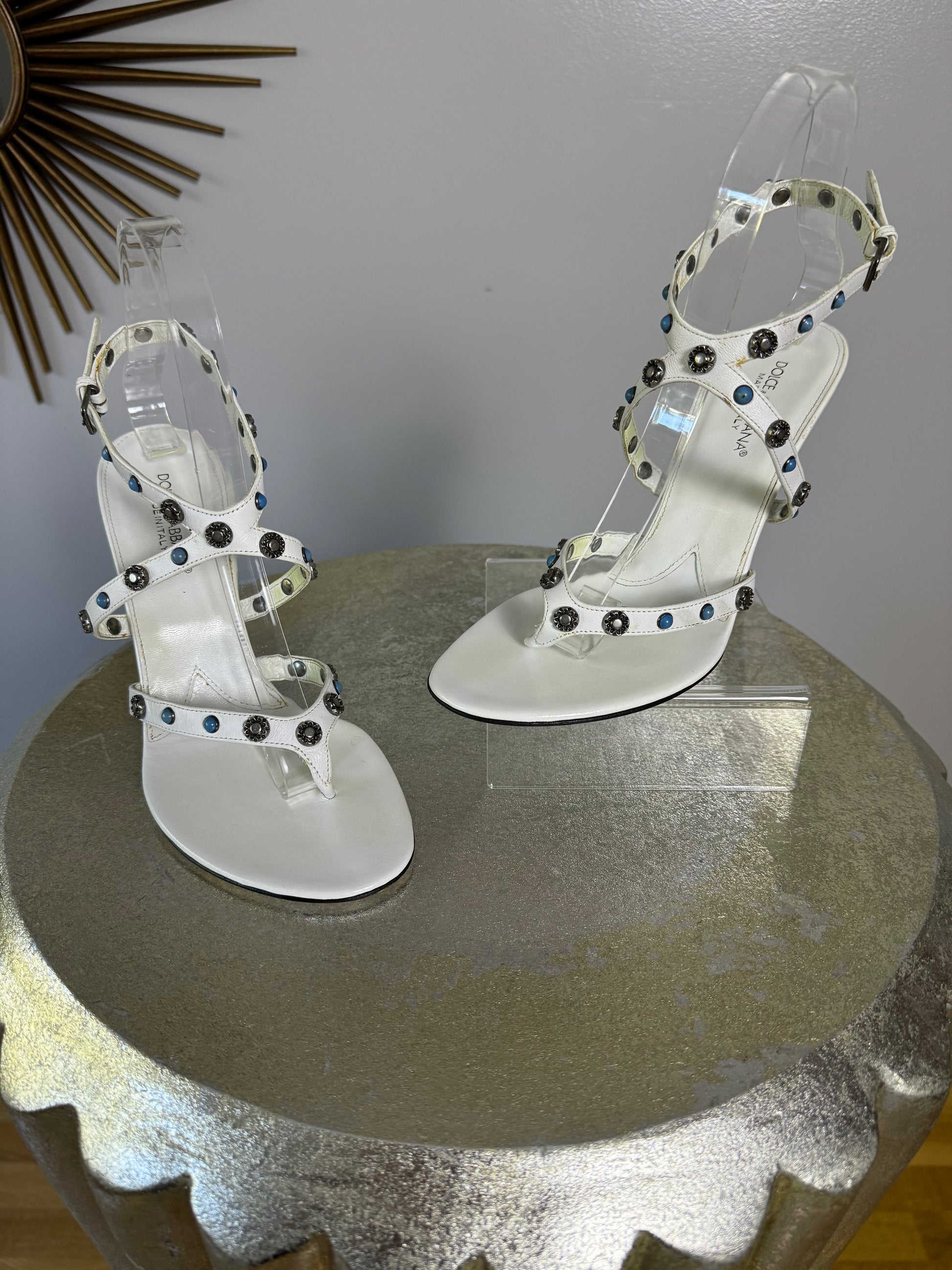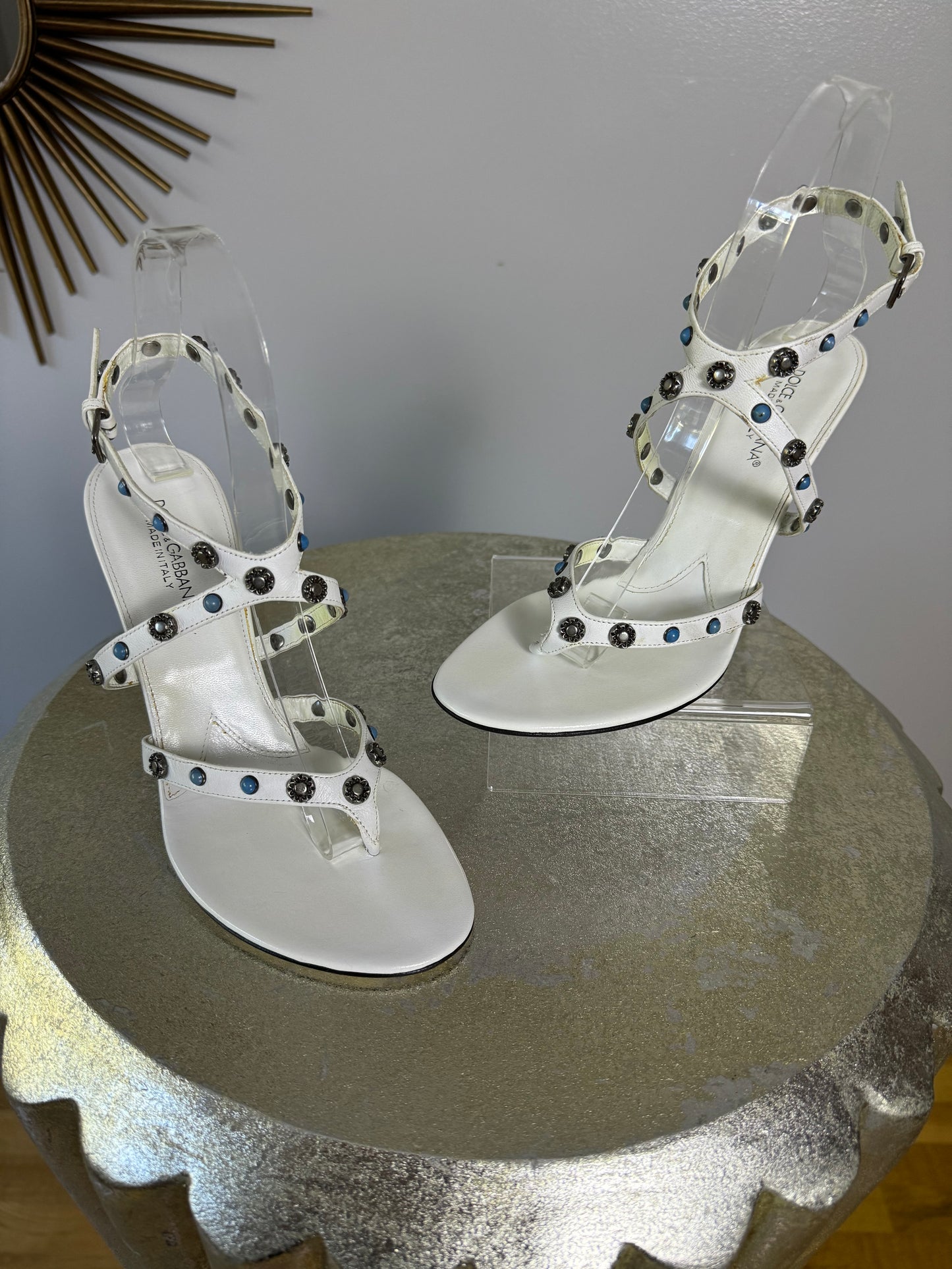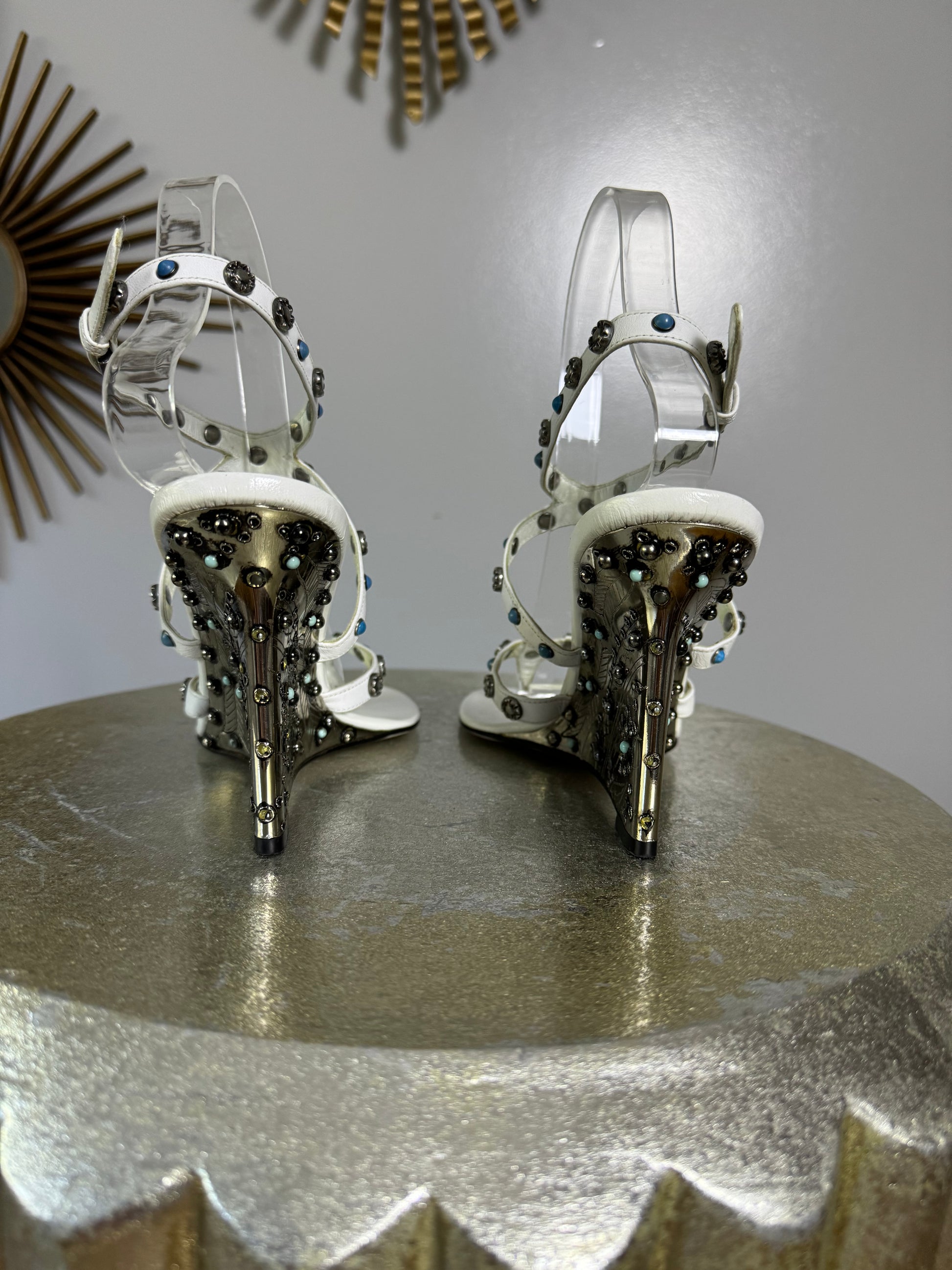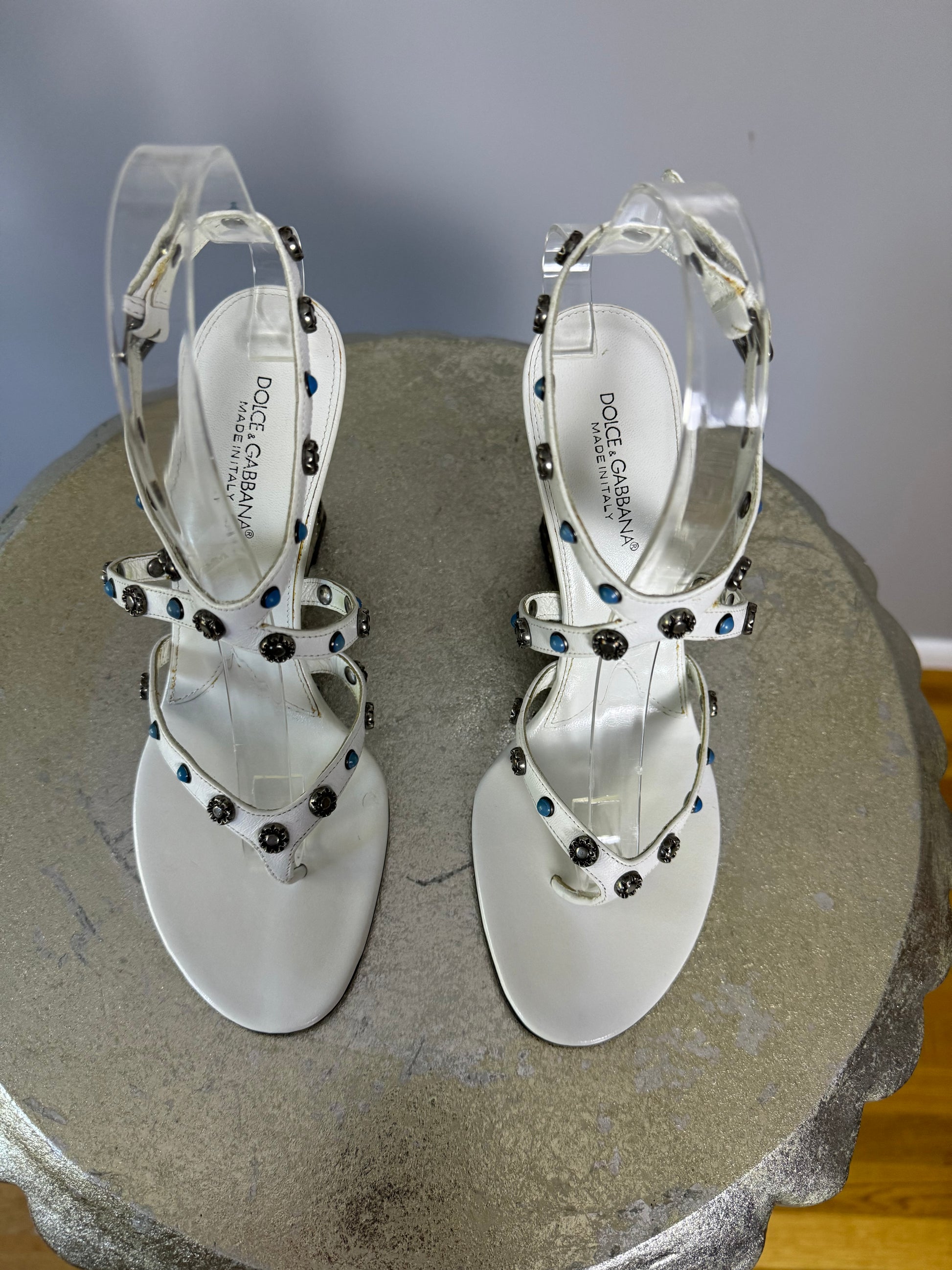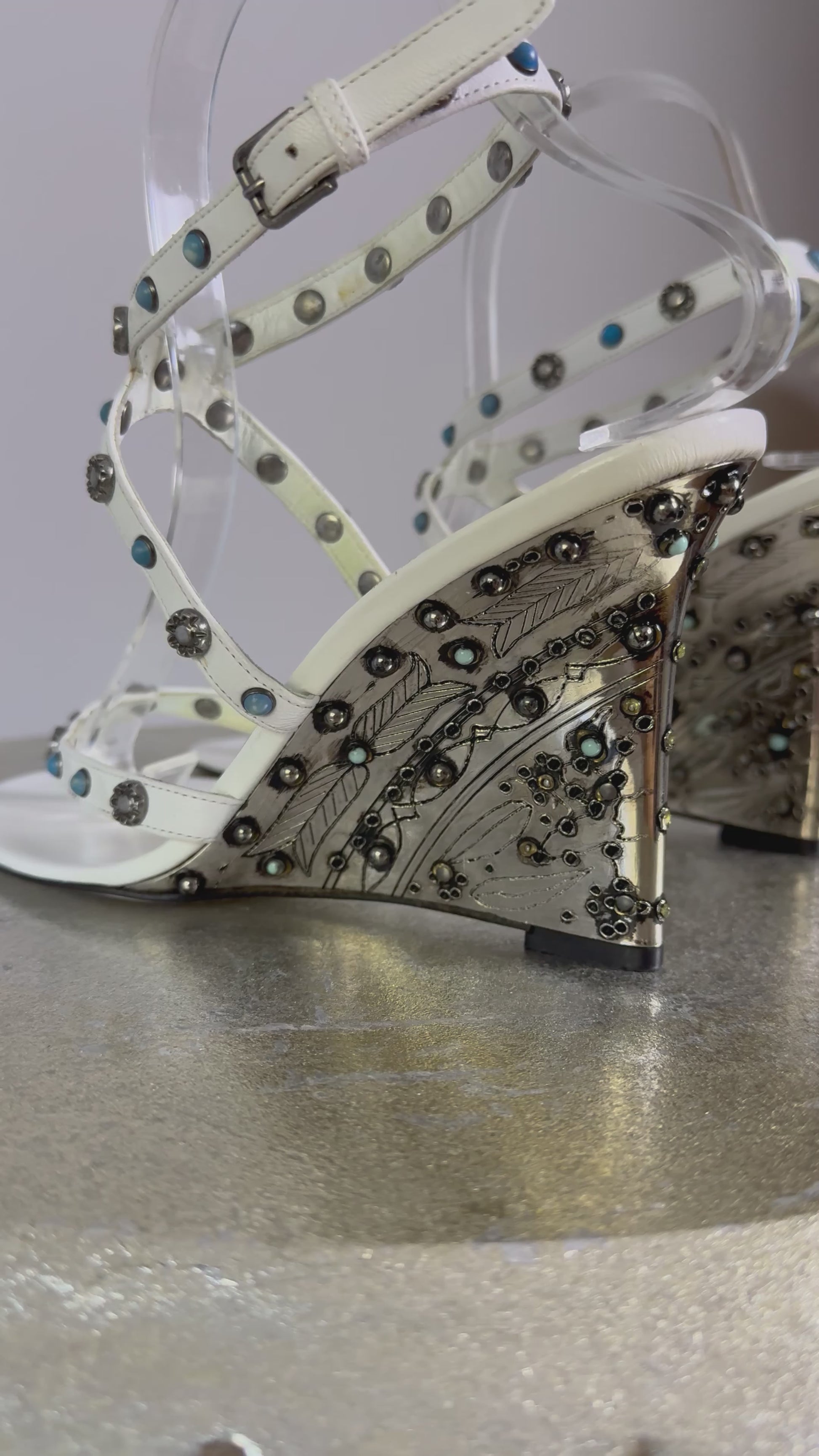 Dolce & Gabbana - White Leather Wedge Sandal With Silver Embellishment