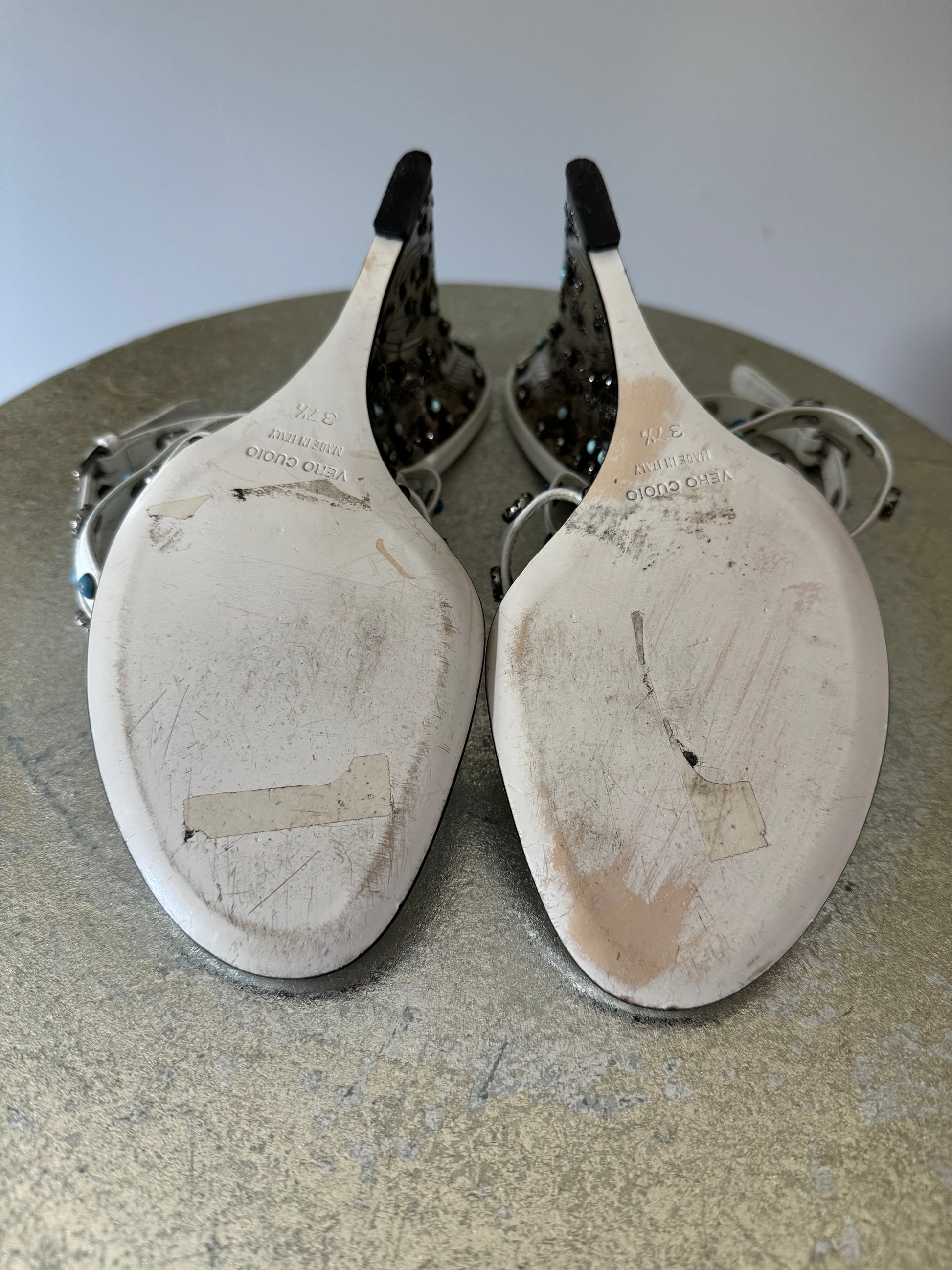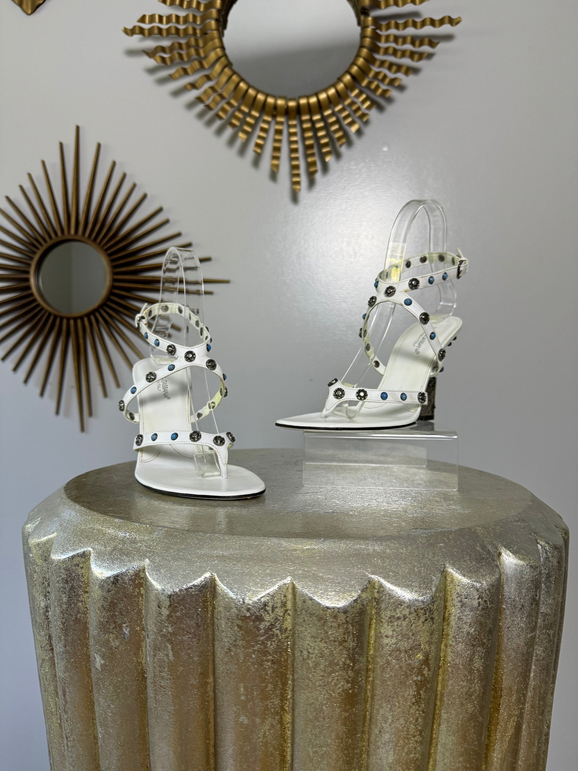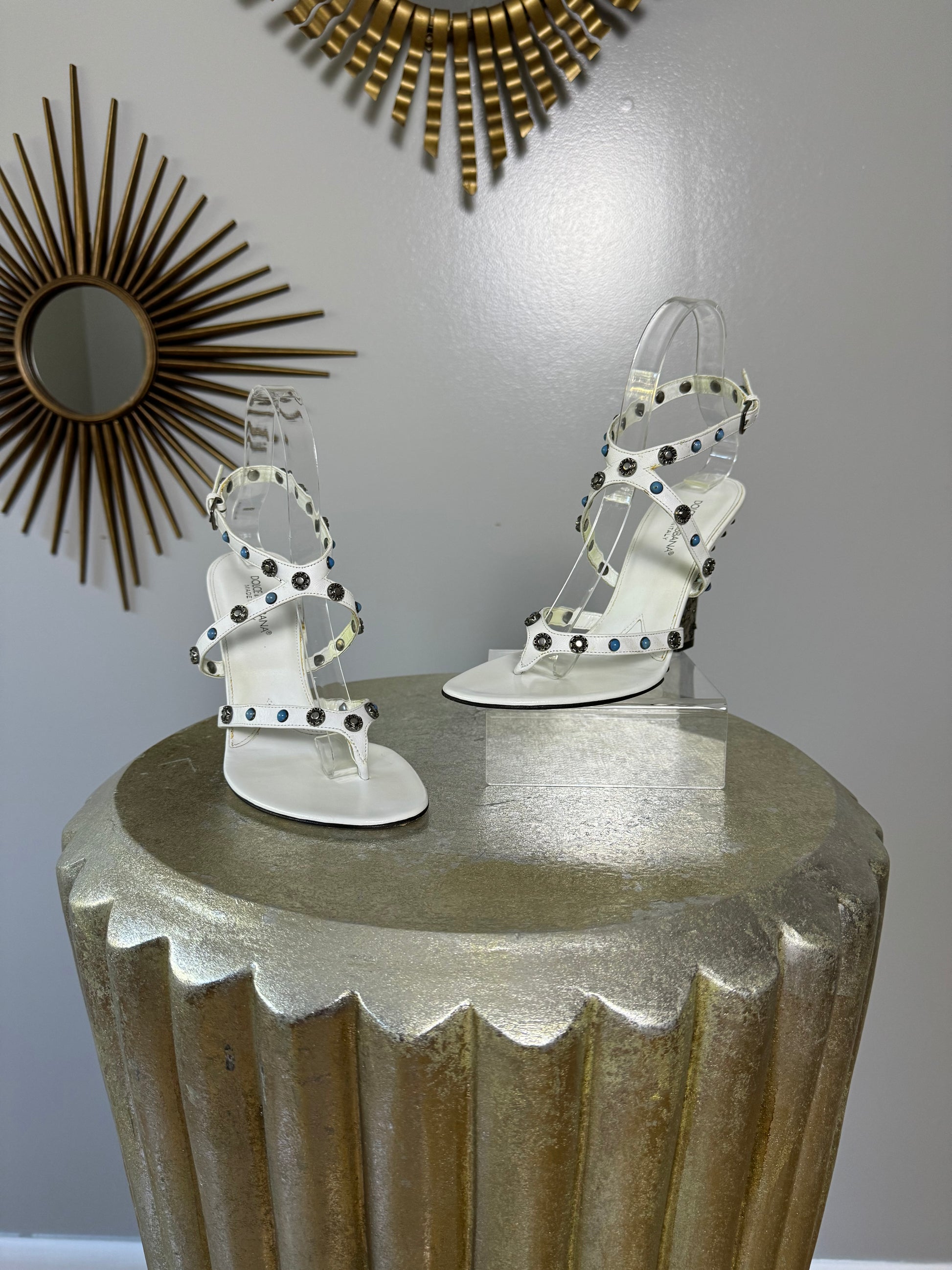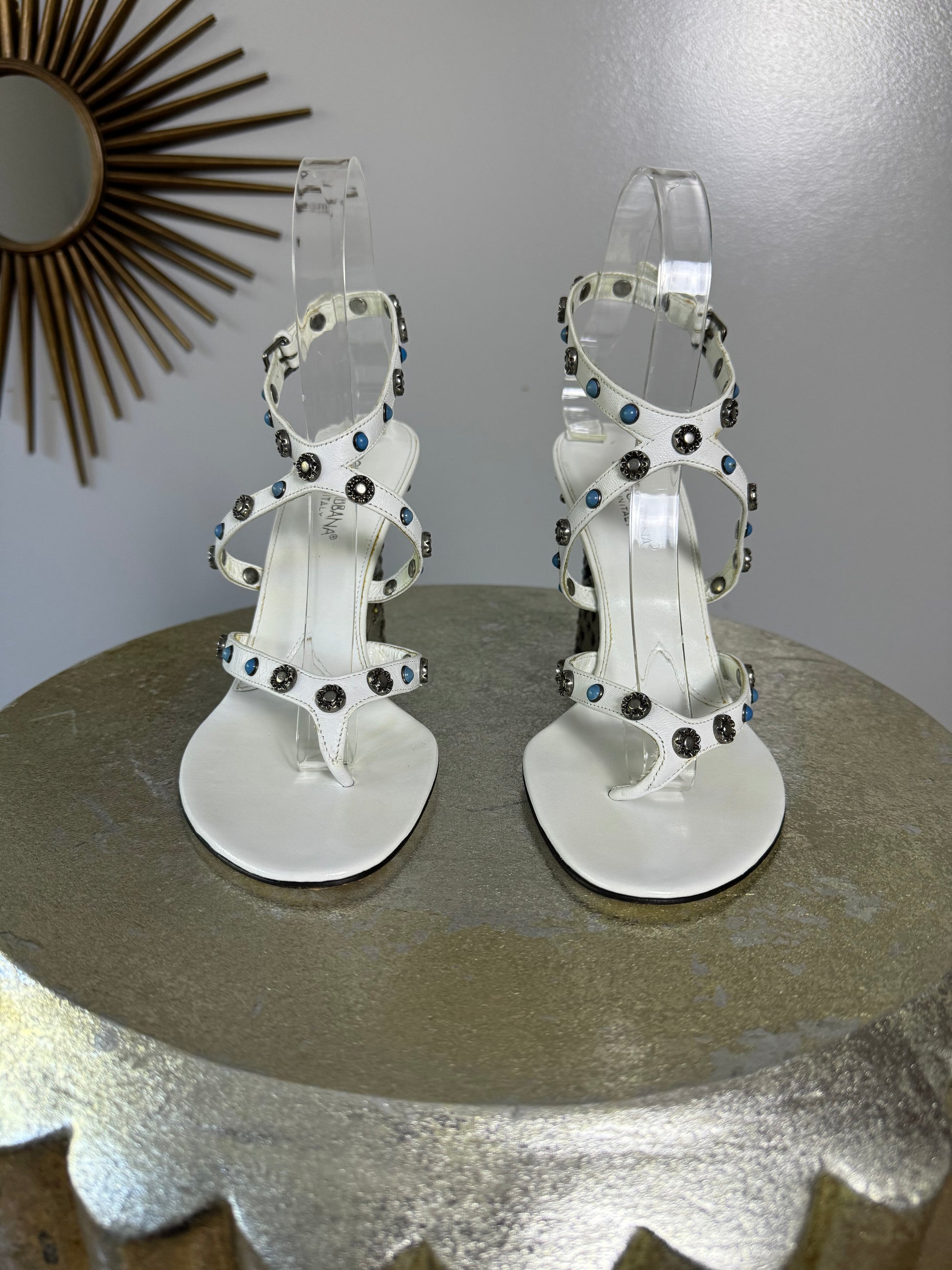 Dolce & Gabbana - White Leather Wedge Sandal With Silver Embellishment
