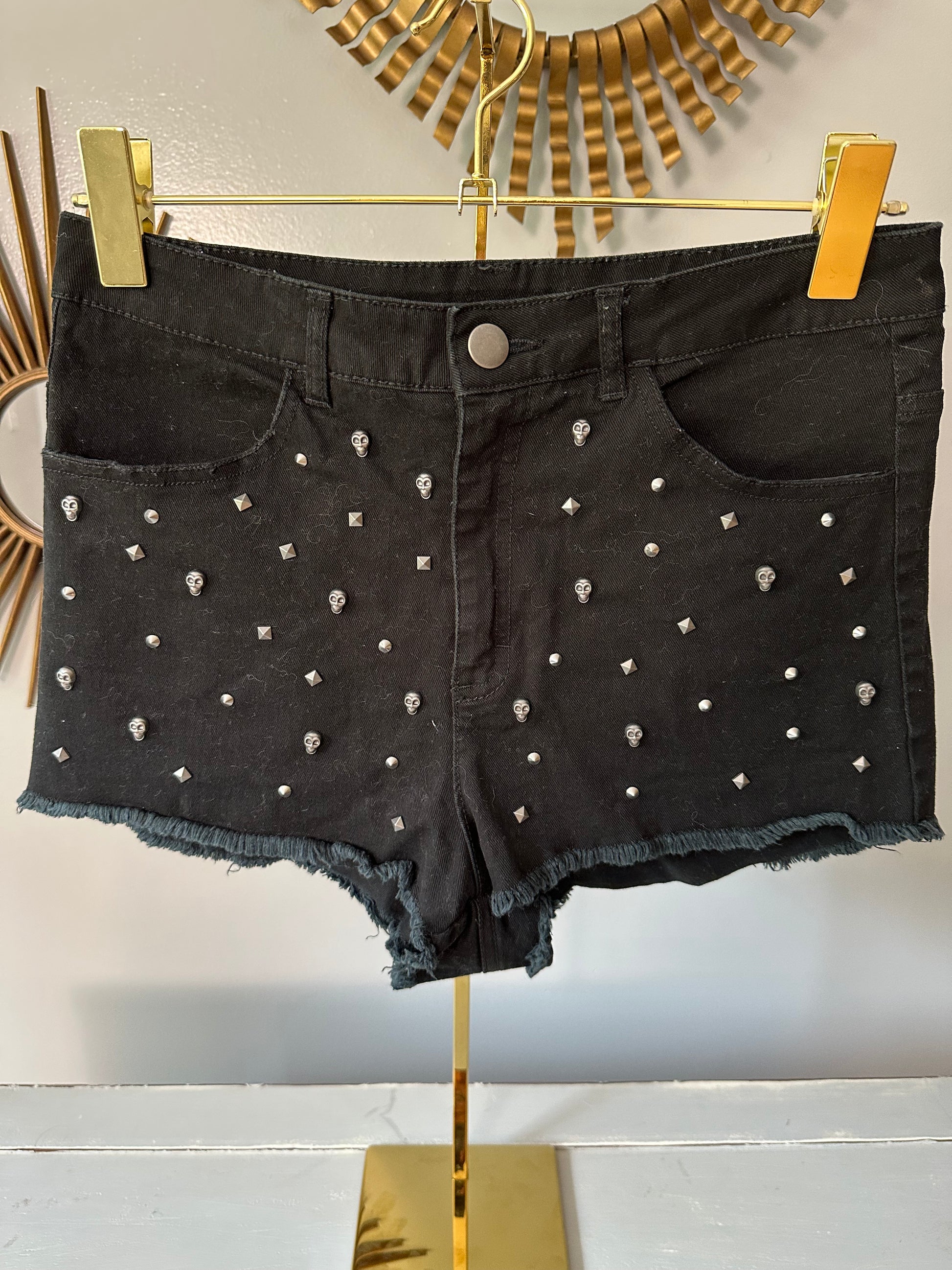 H&M Divided - Black Skull & Spikes High Waist Shorts