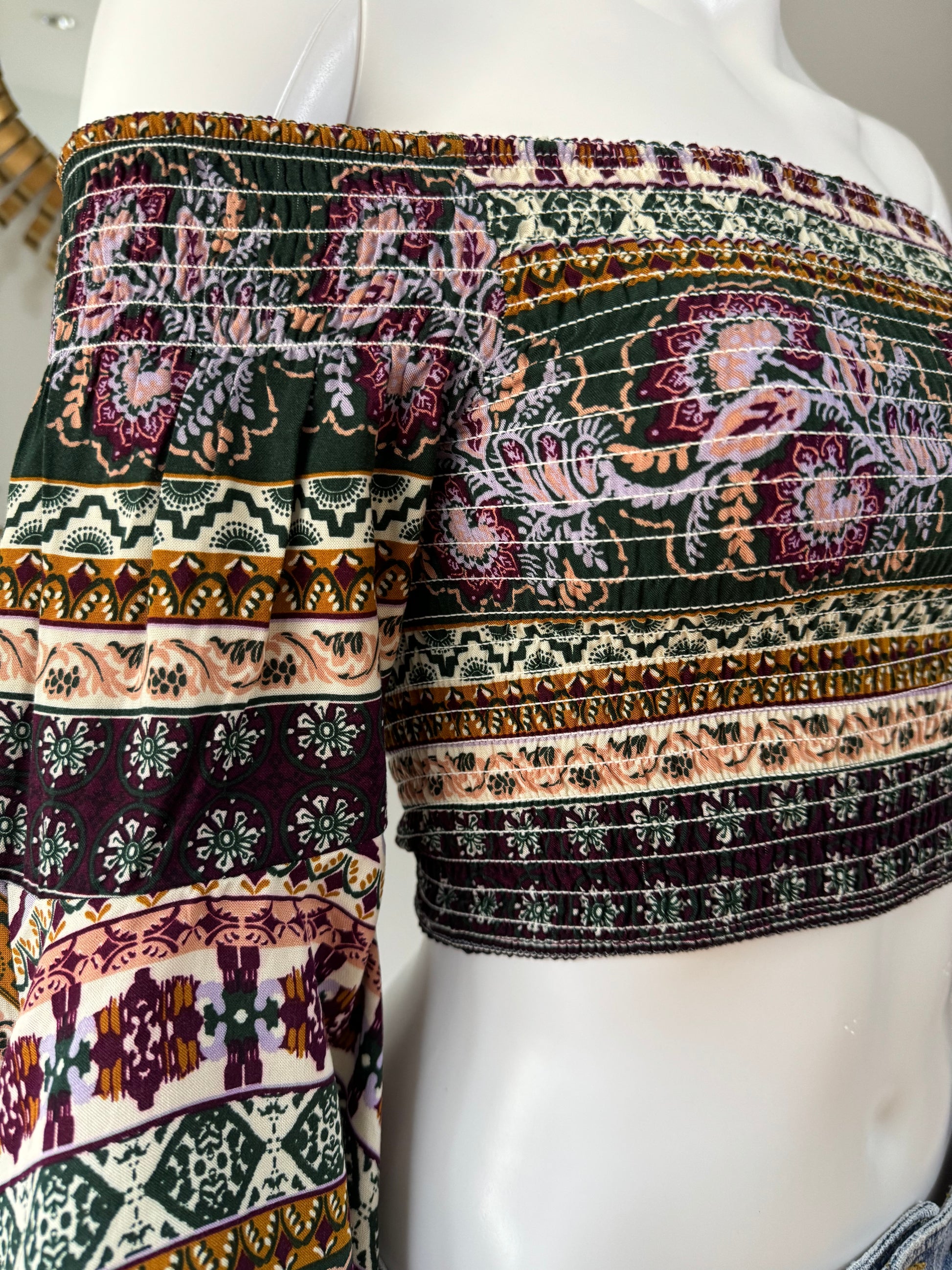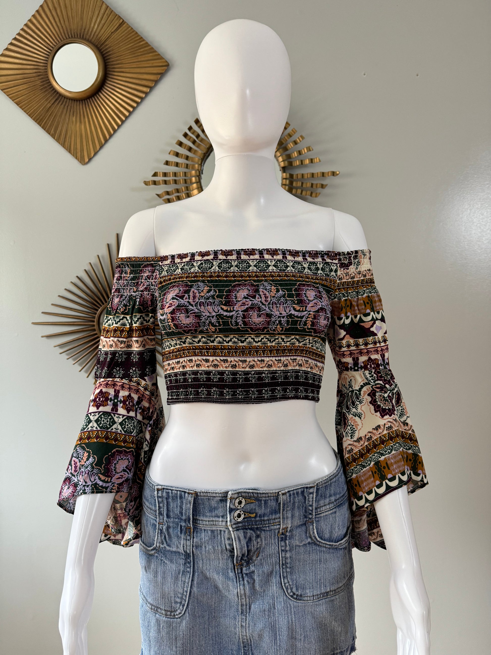 Love Tree - Printed Strapless Top w/ Bell Sleeves