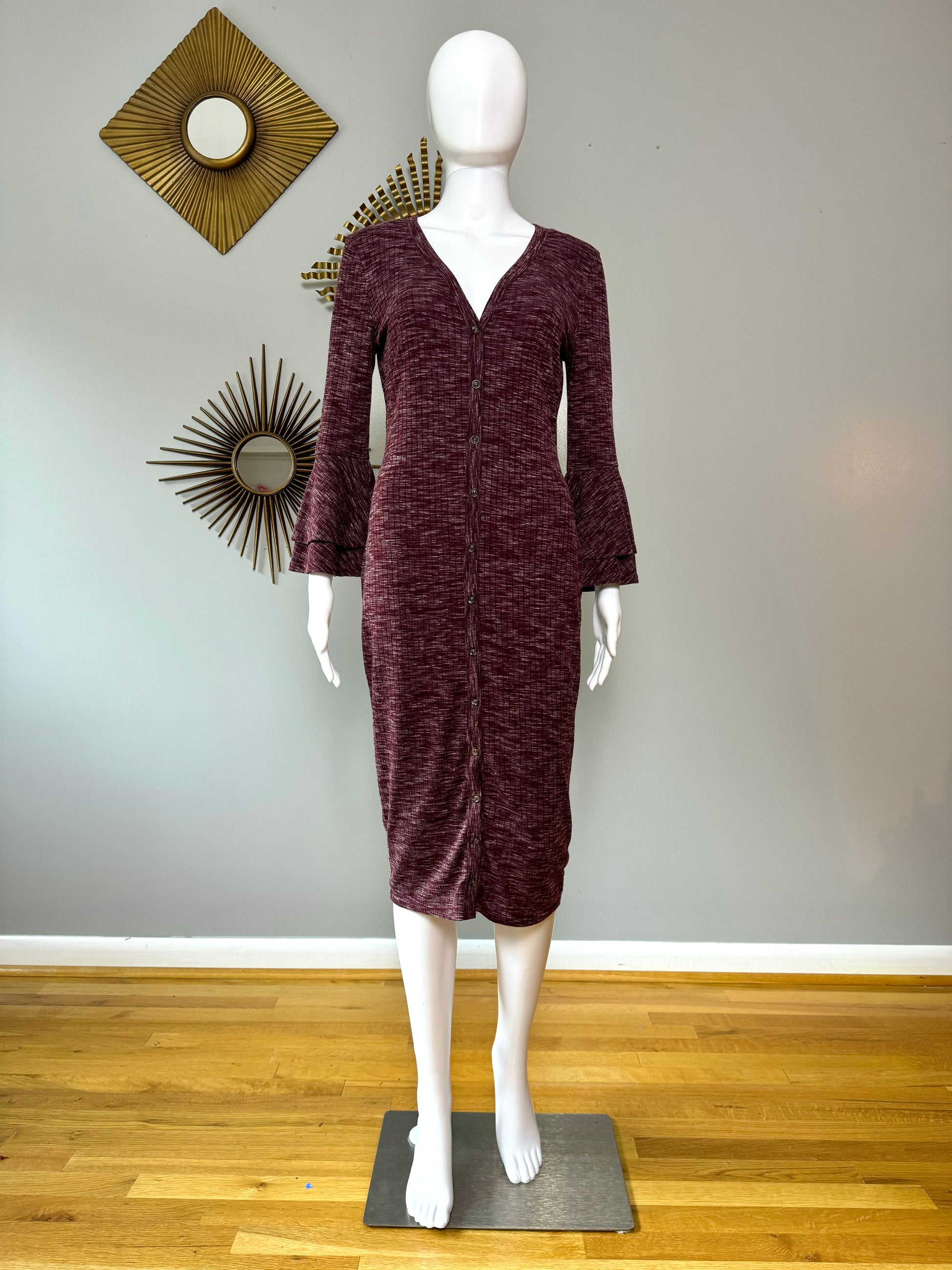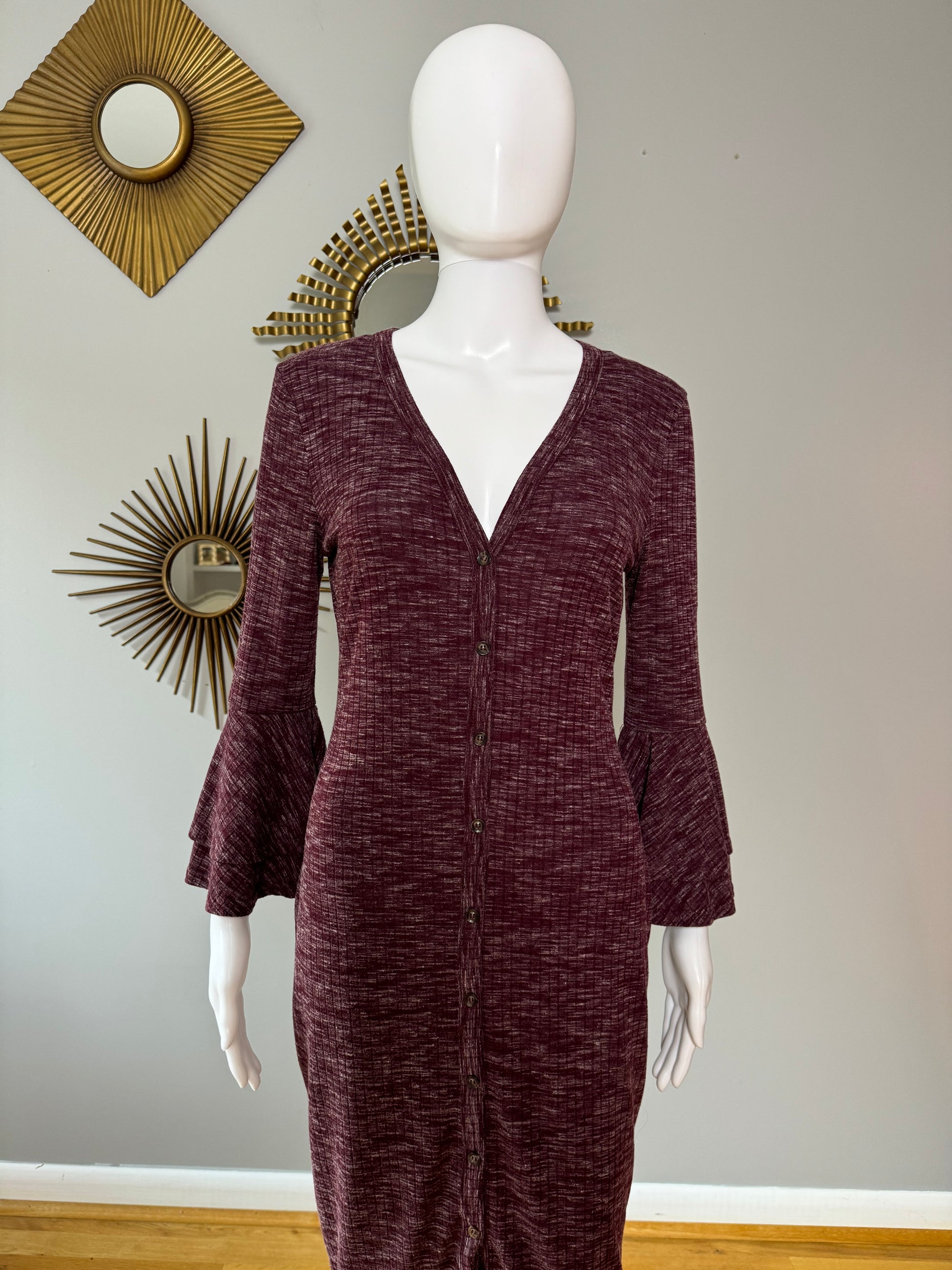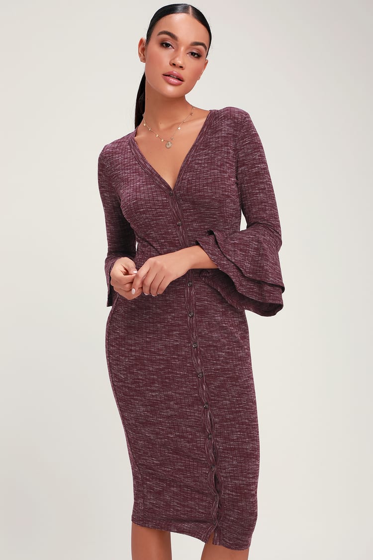 Lulu’s - Burgundy Ribbed Button Up Midi Dress