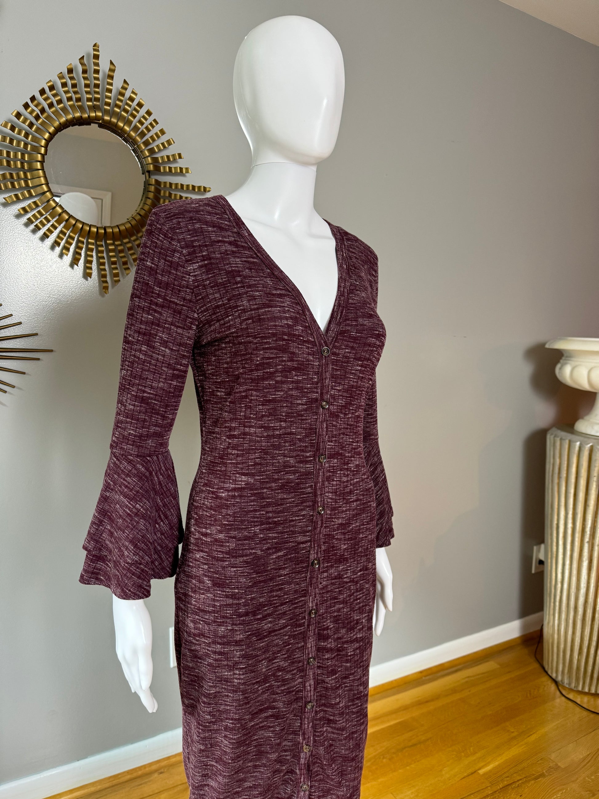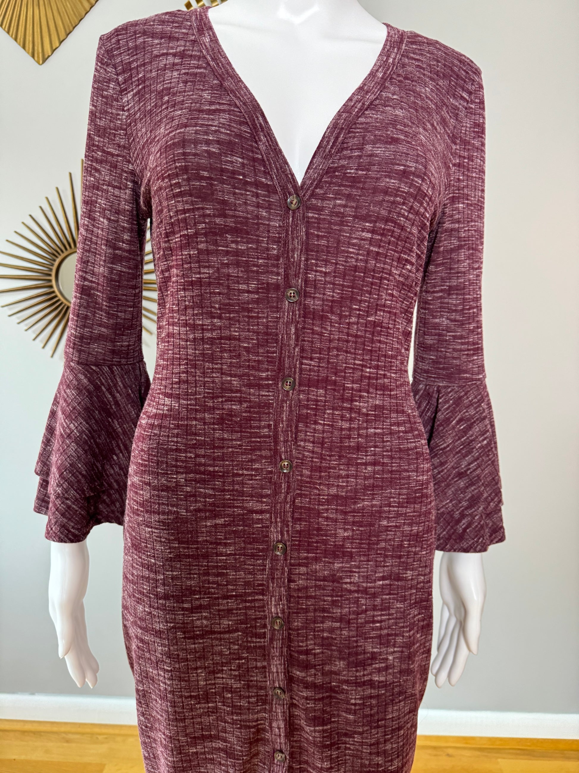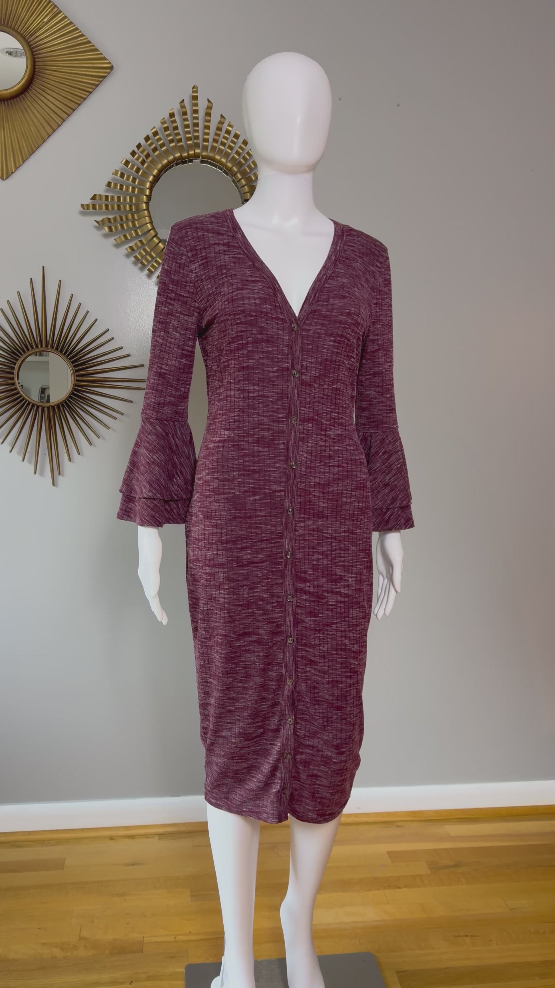 Lulu’s - Burgundy Ribbed Button Up Midi Dress