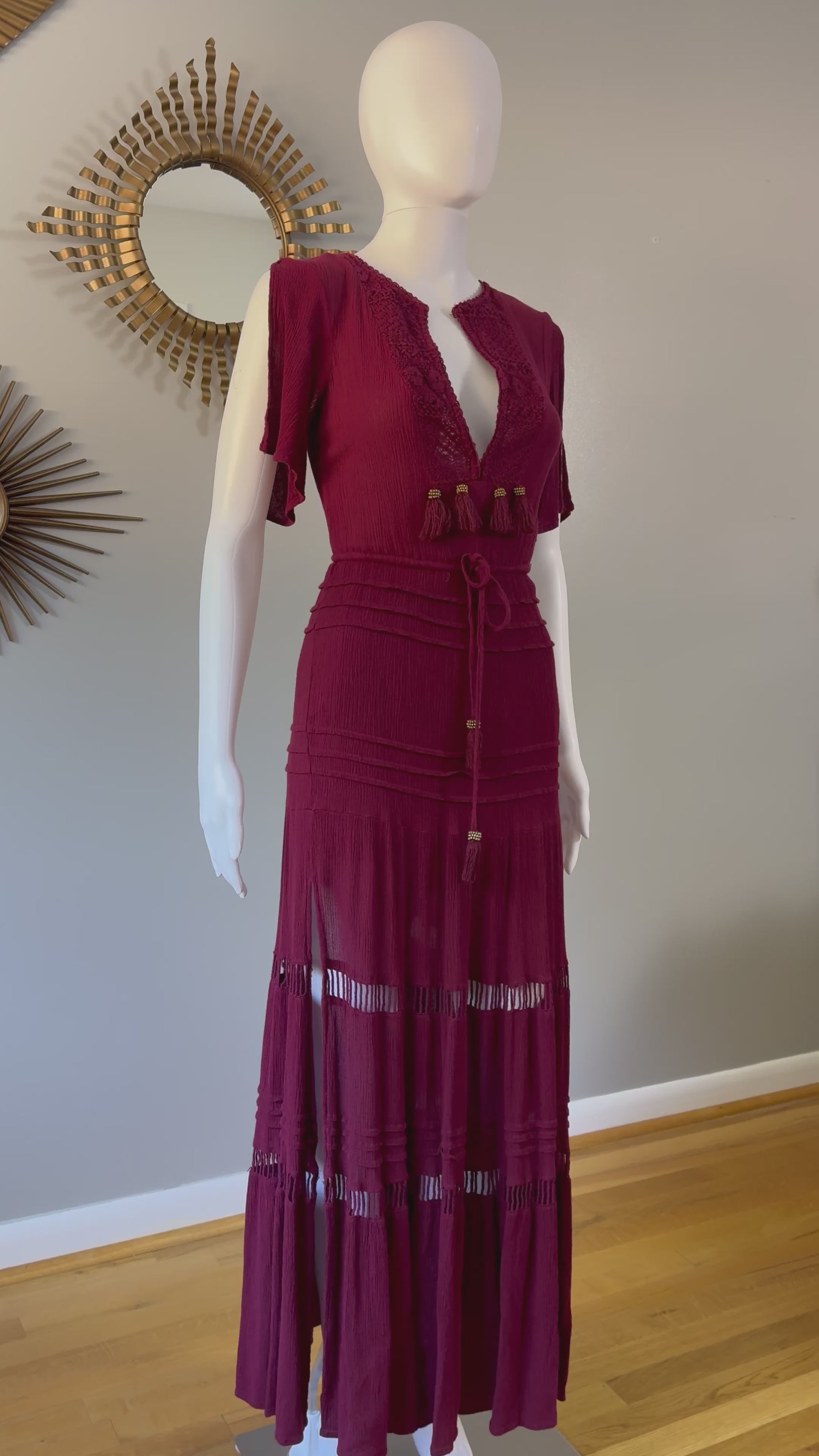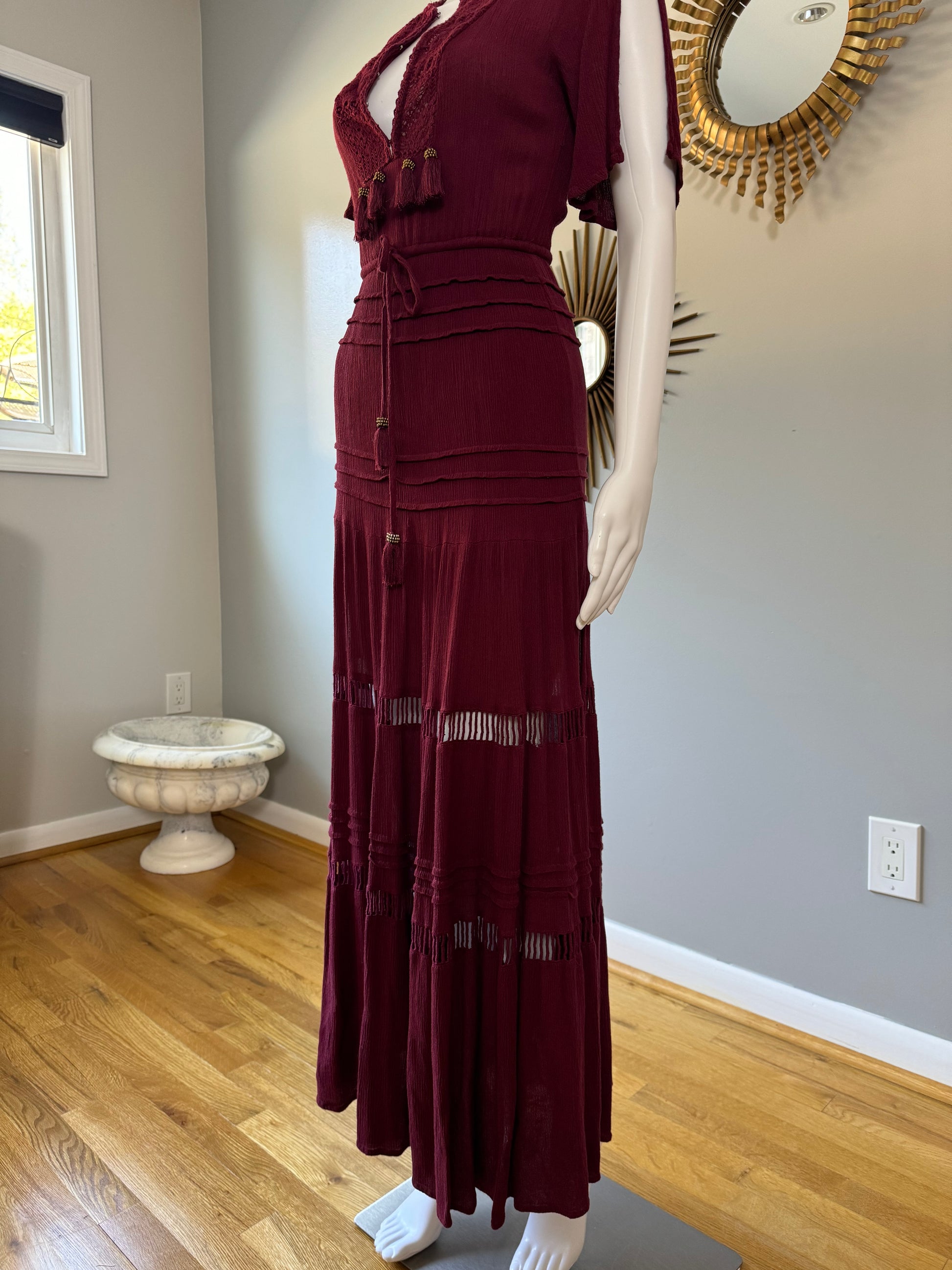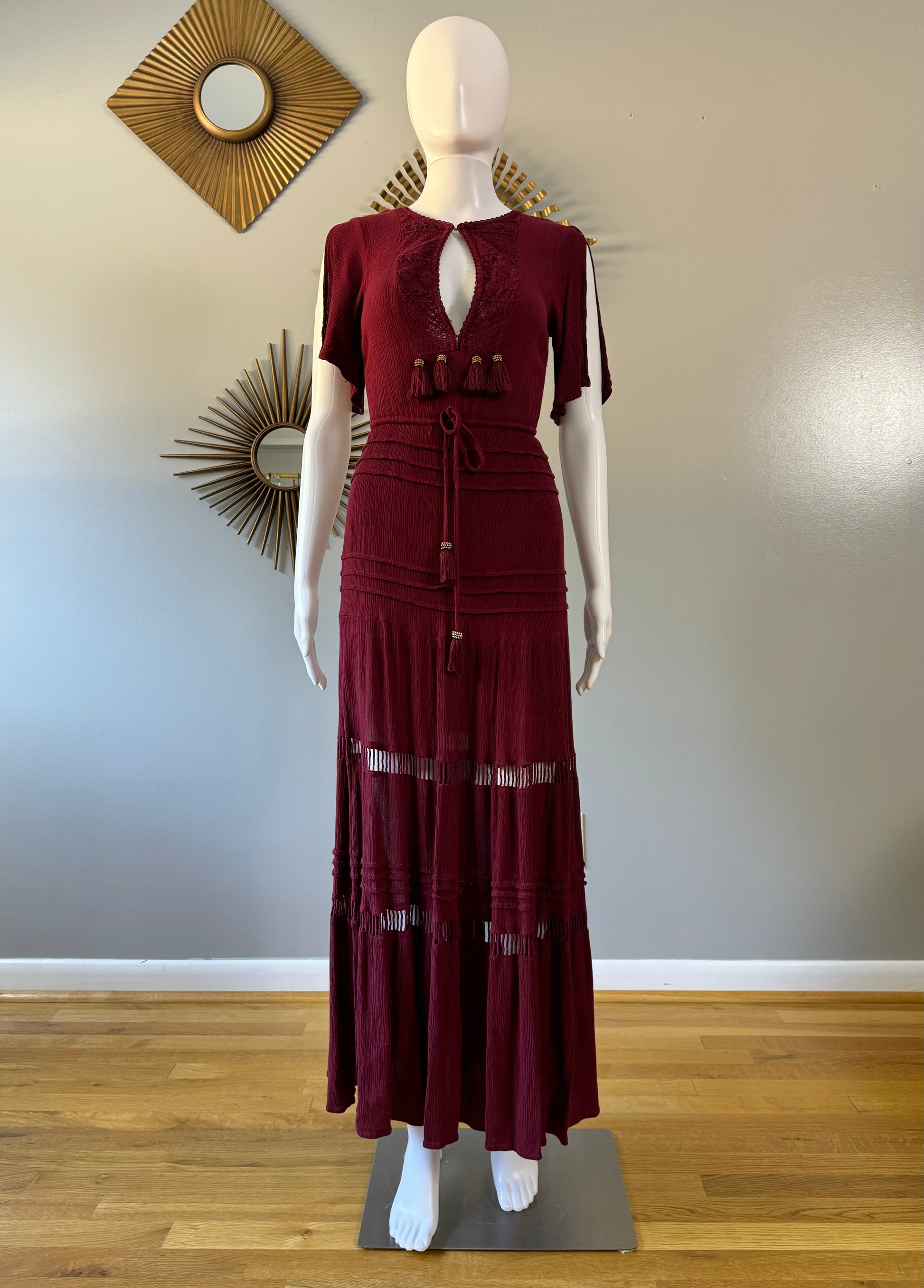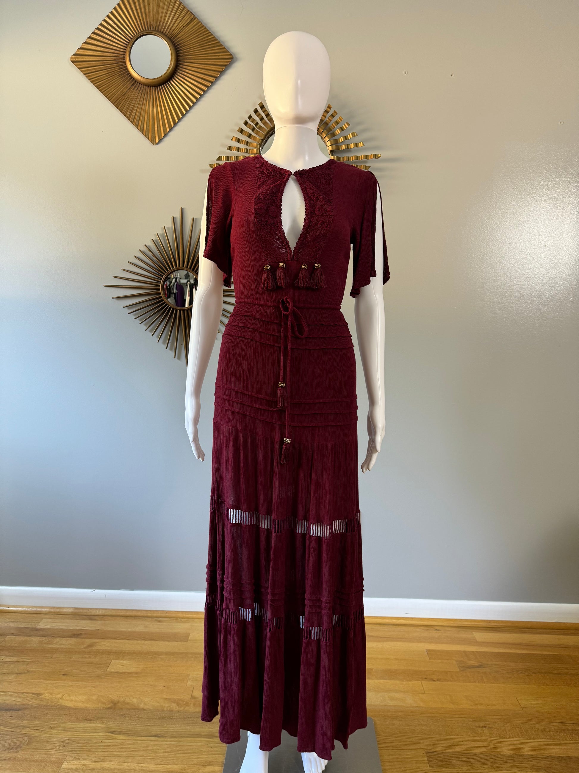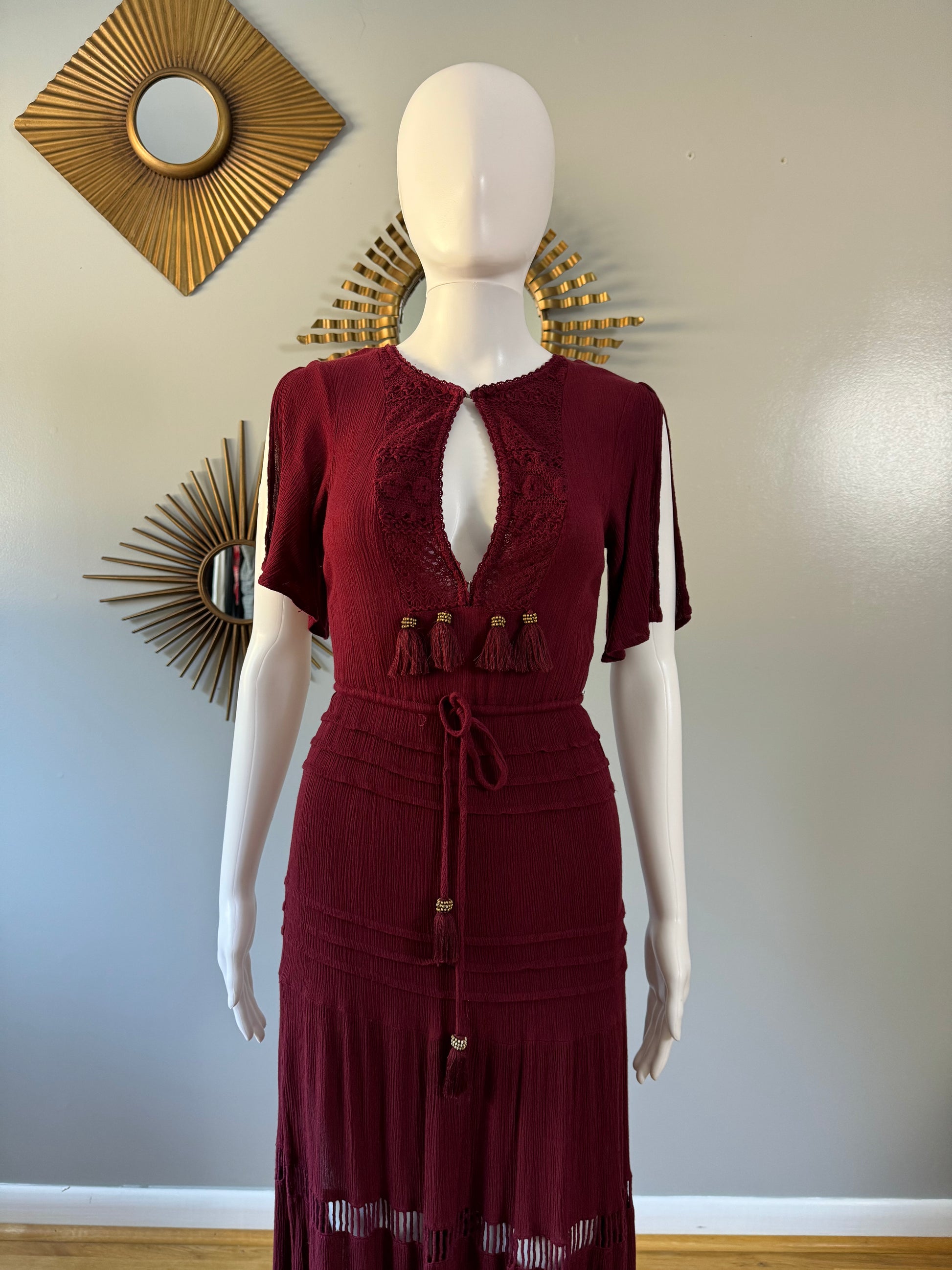 Lulu’s - Burgundy Santa Fe Sway Crochet Maxi Dress