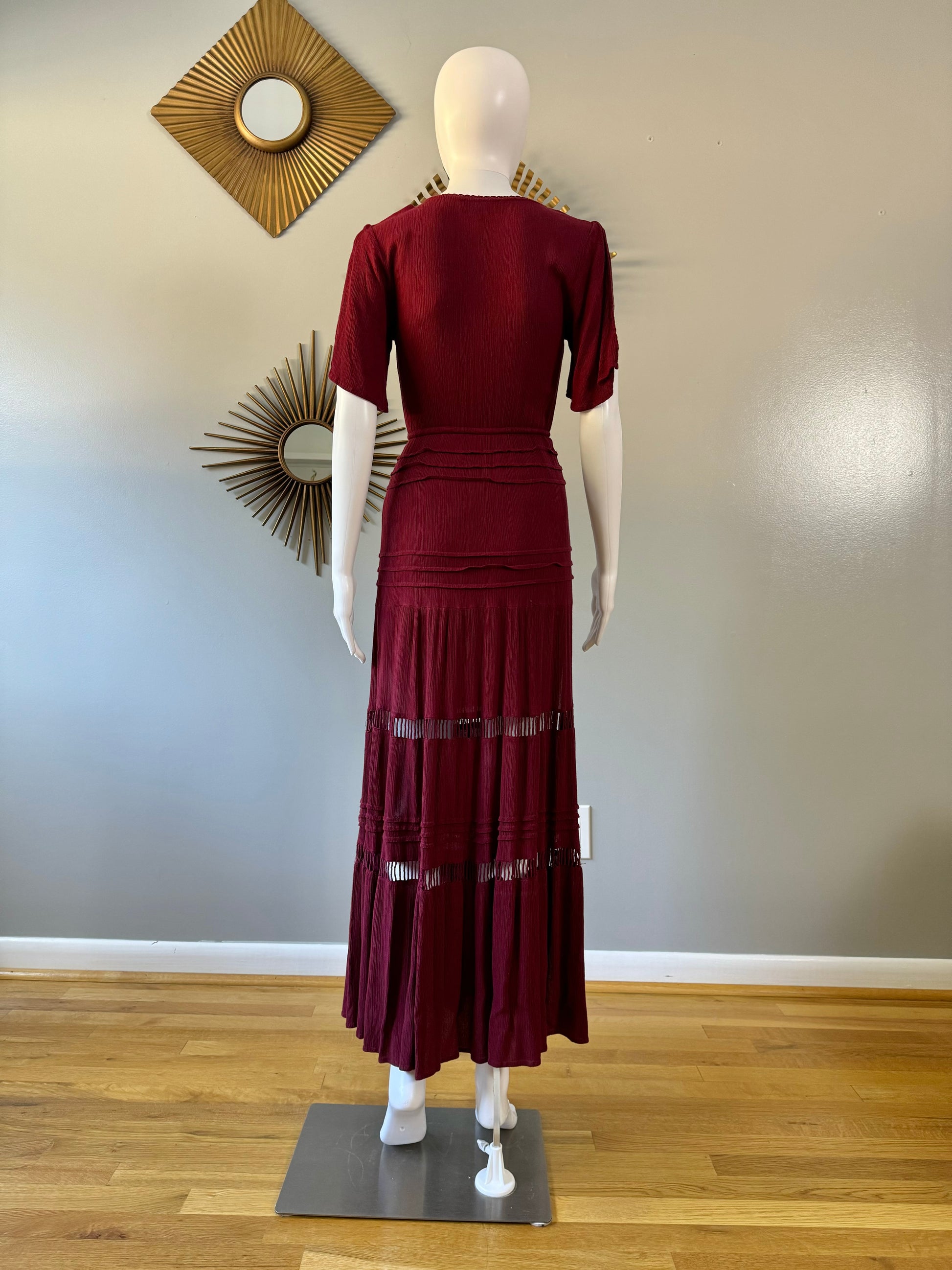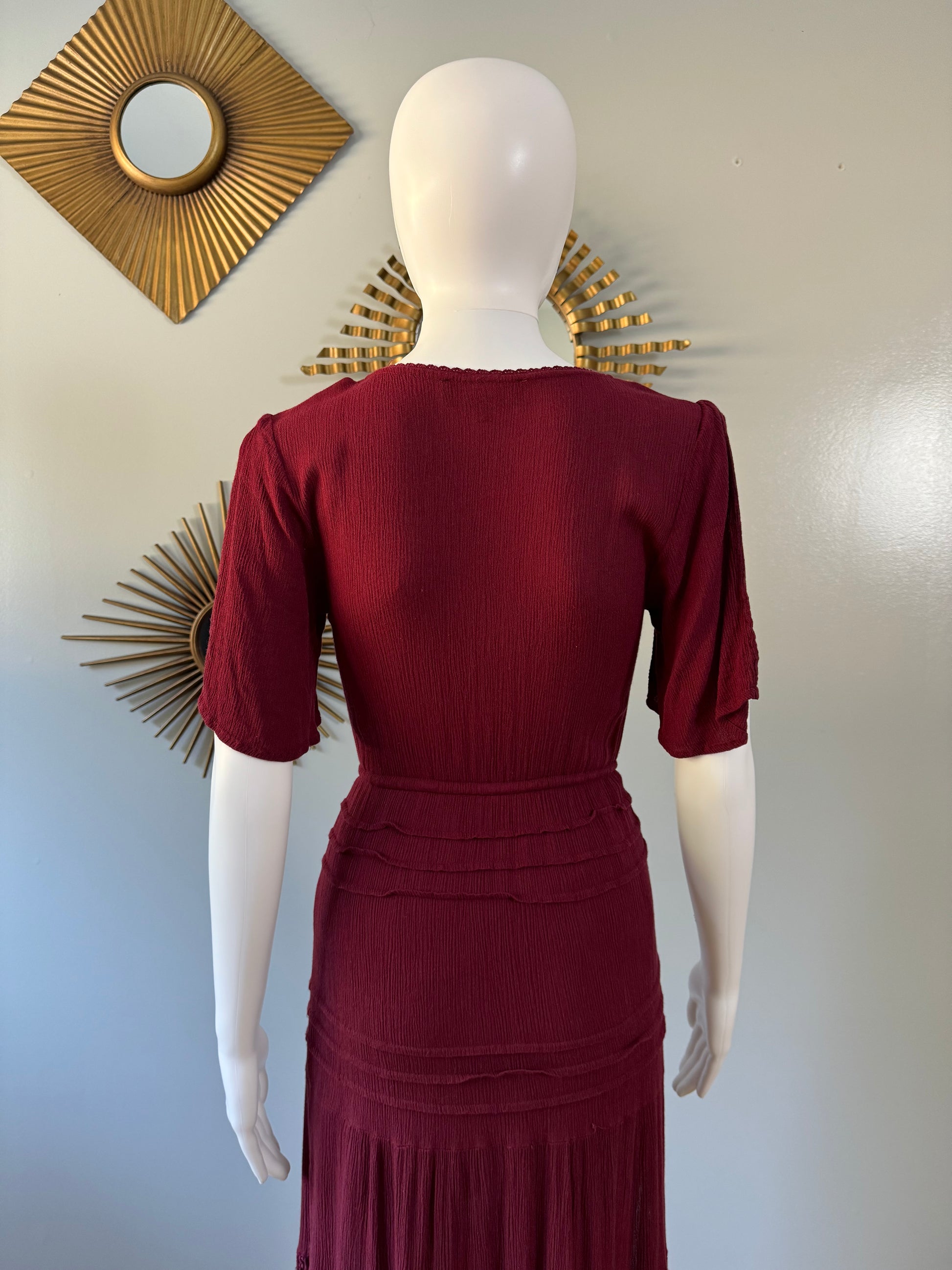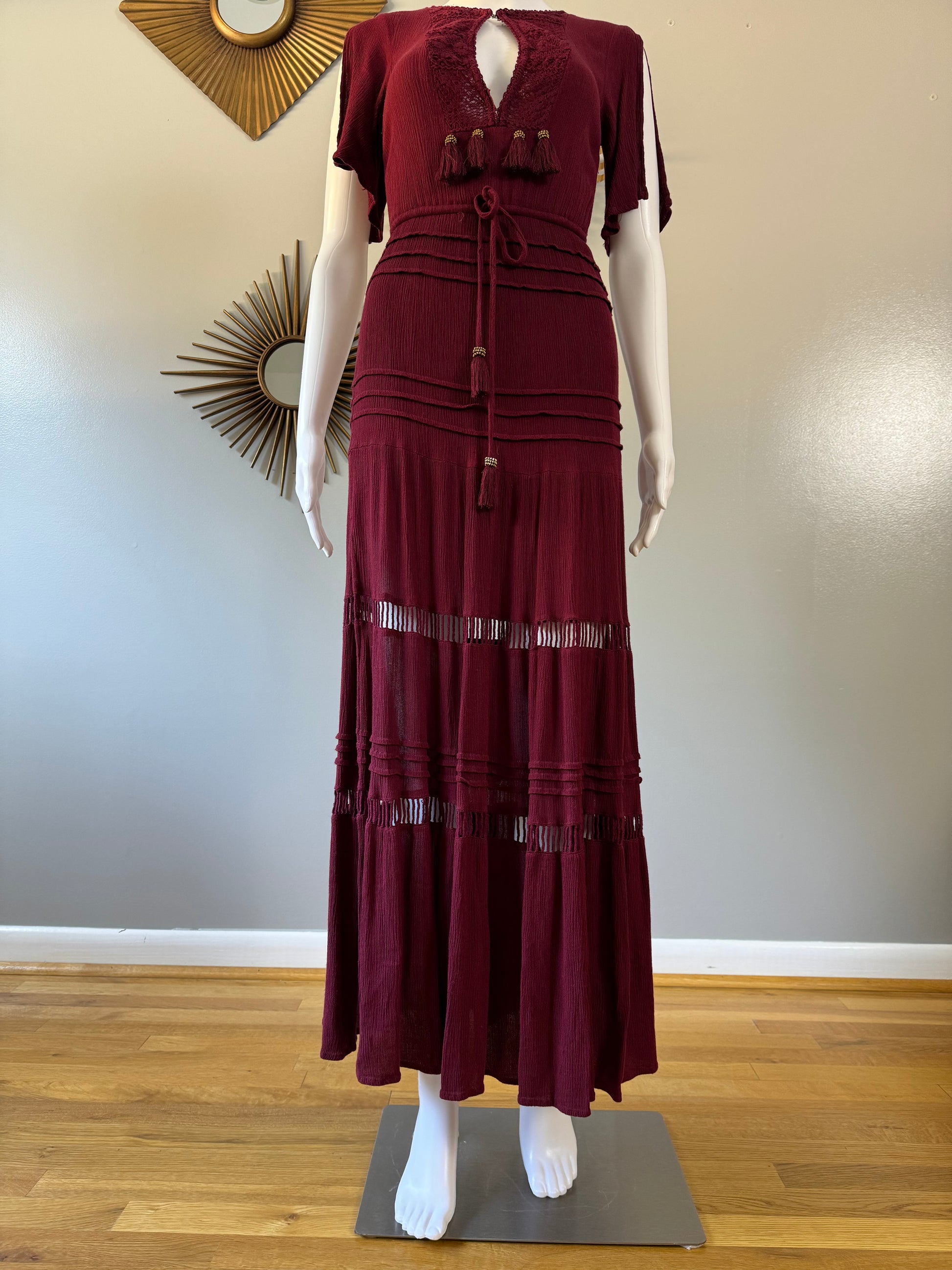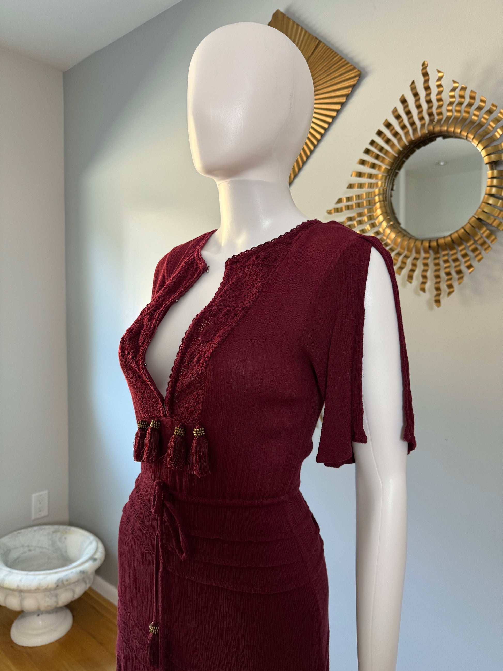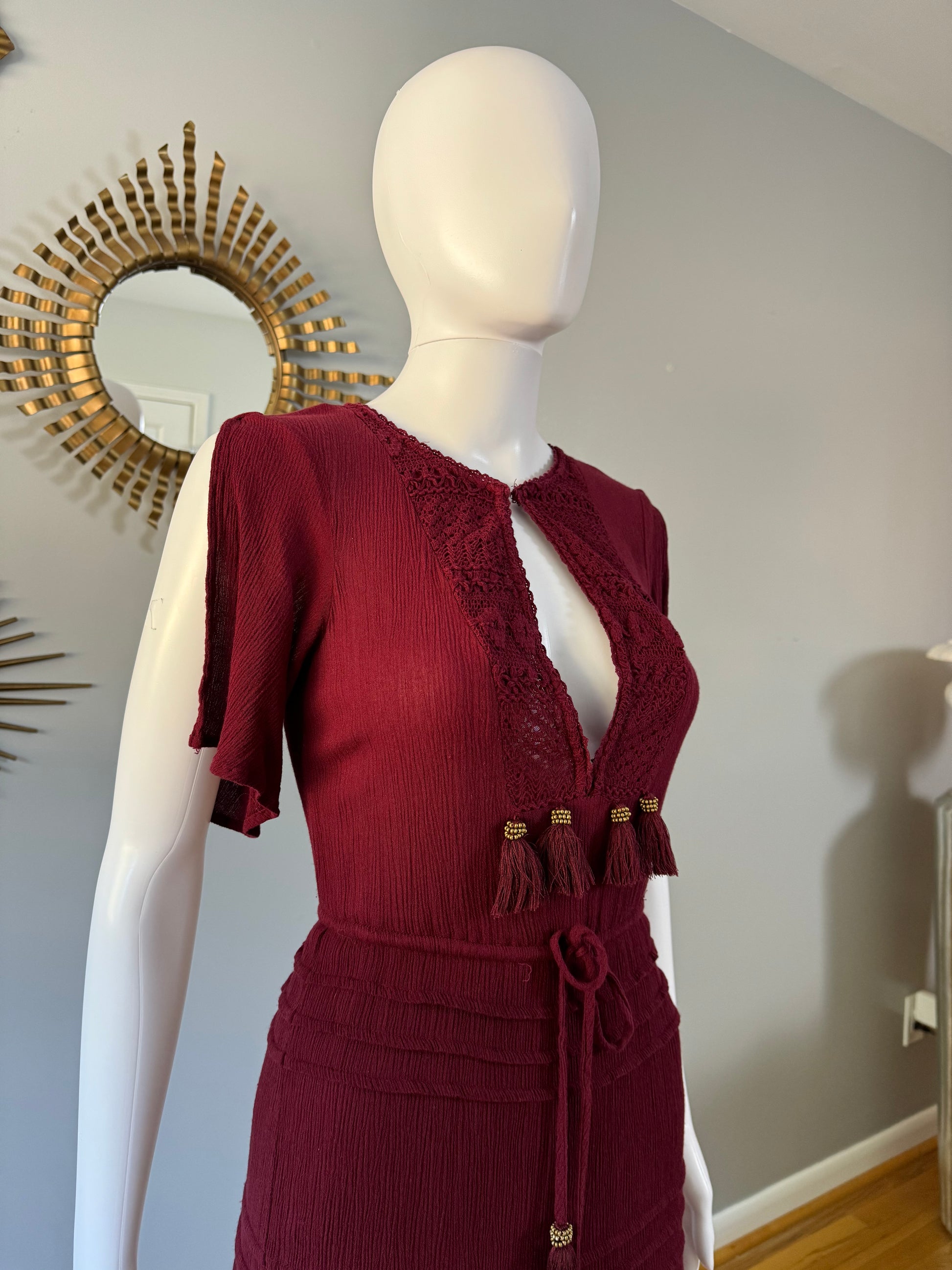 Lulu’s - Burgundy Santa Fe Sway Crochet Maxi Dress