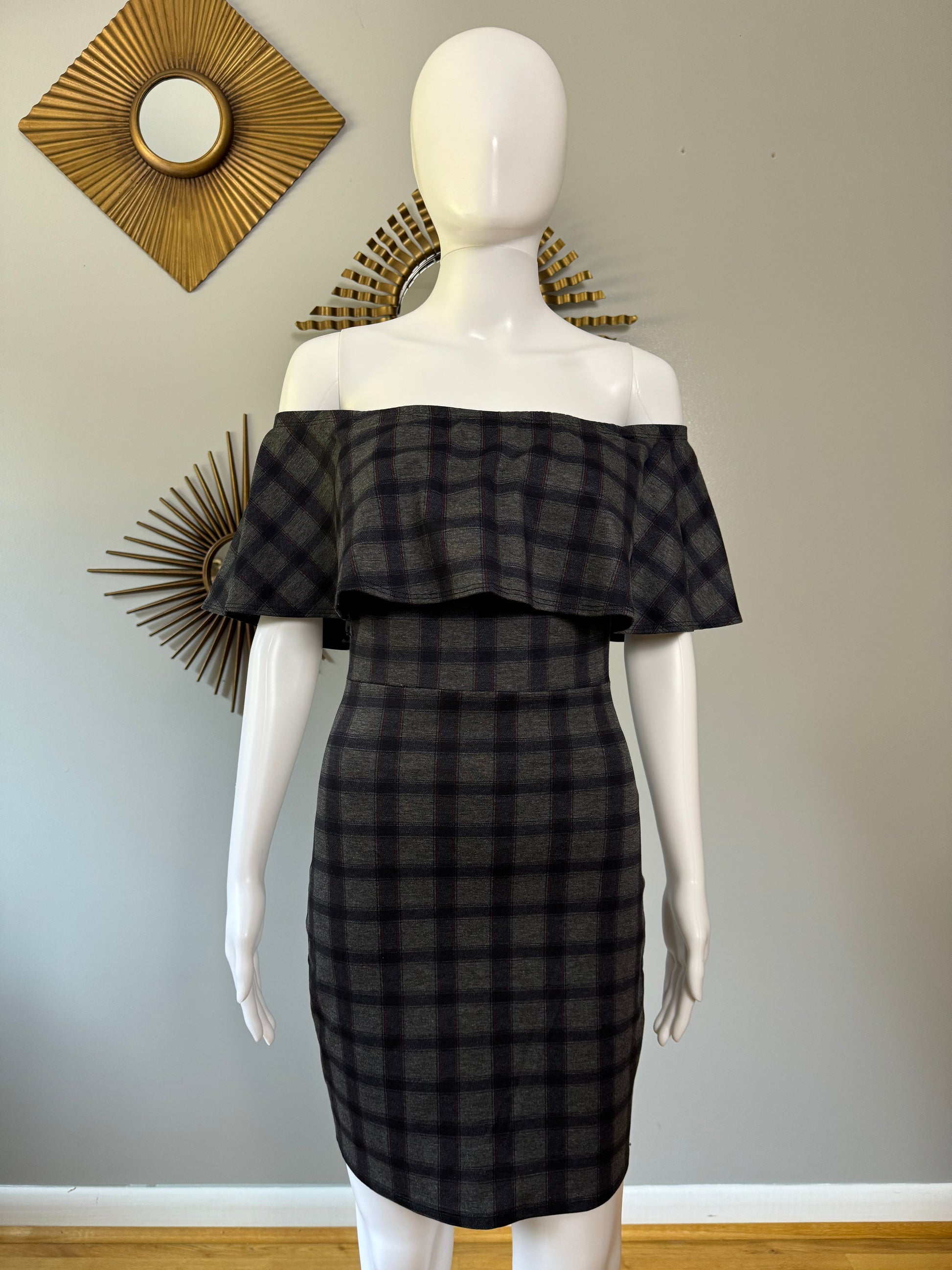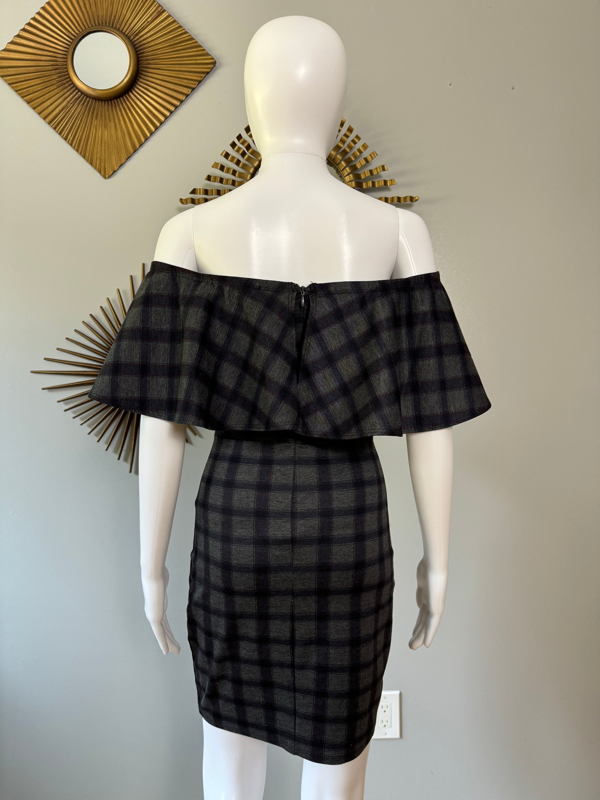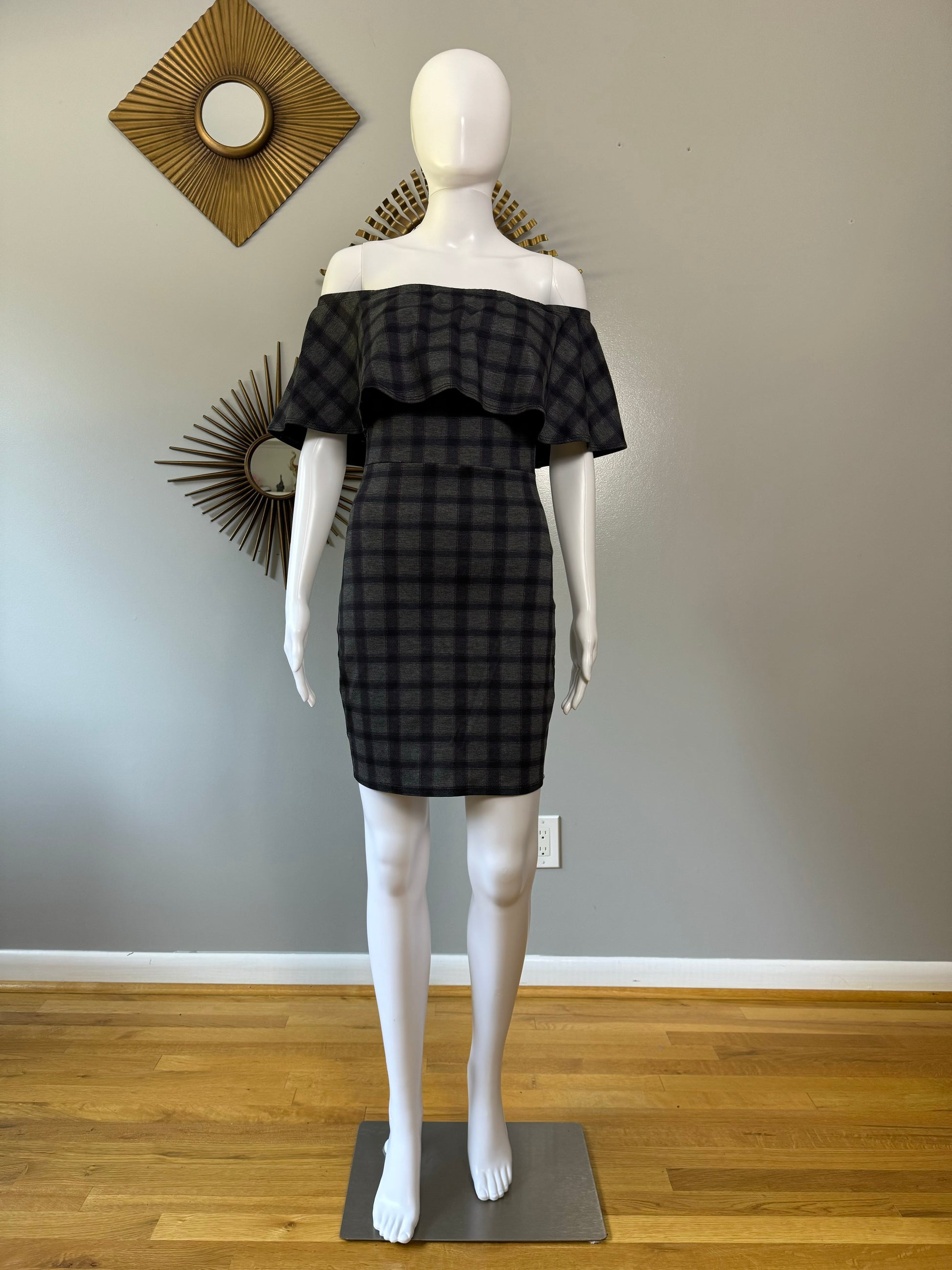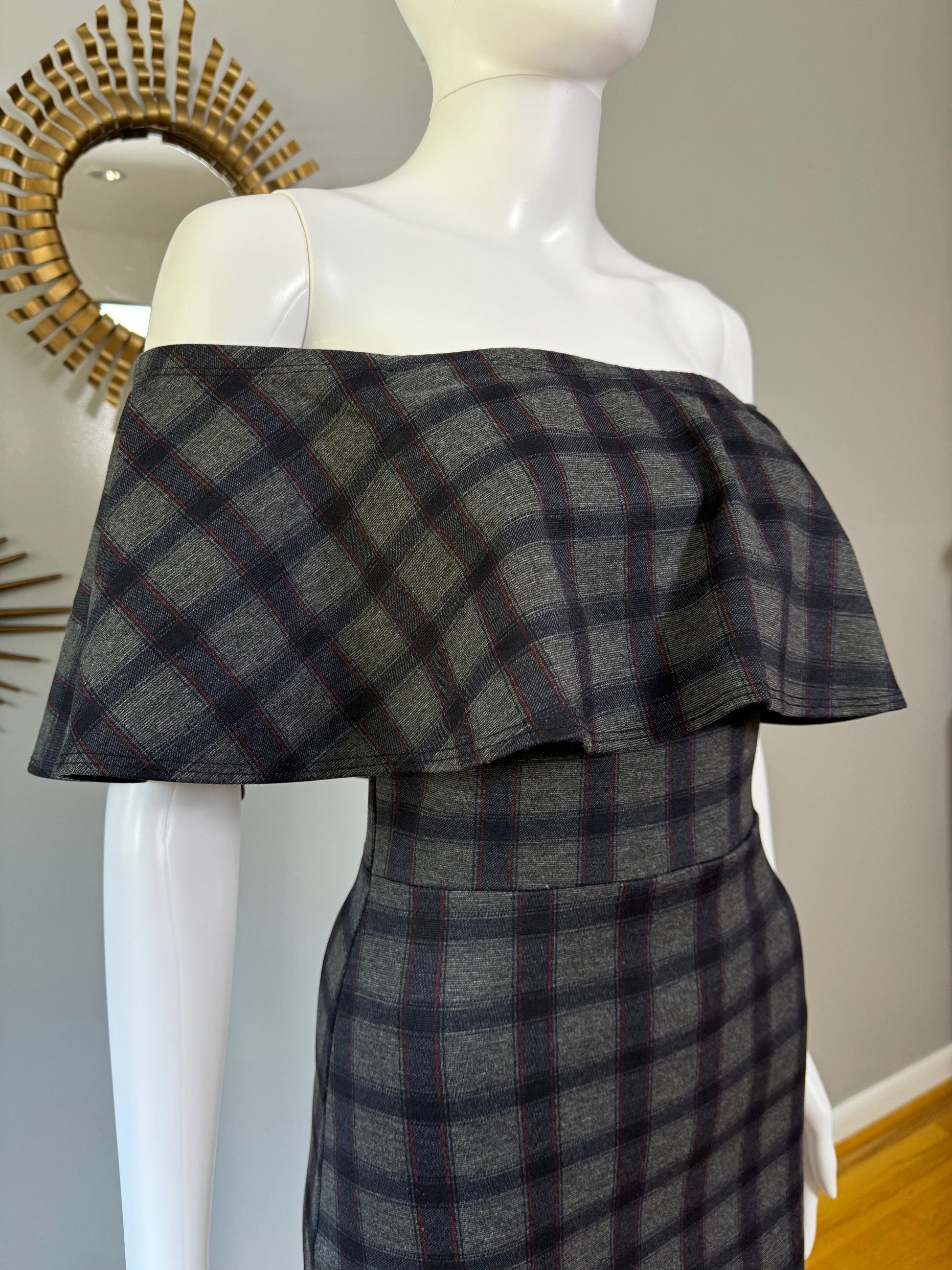 Lulu’s - Gray Plaid Off-Shoulder Dress