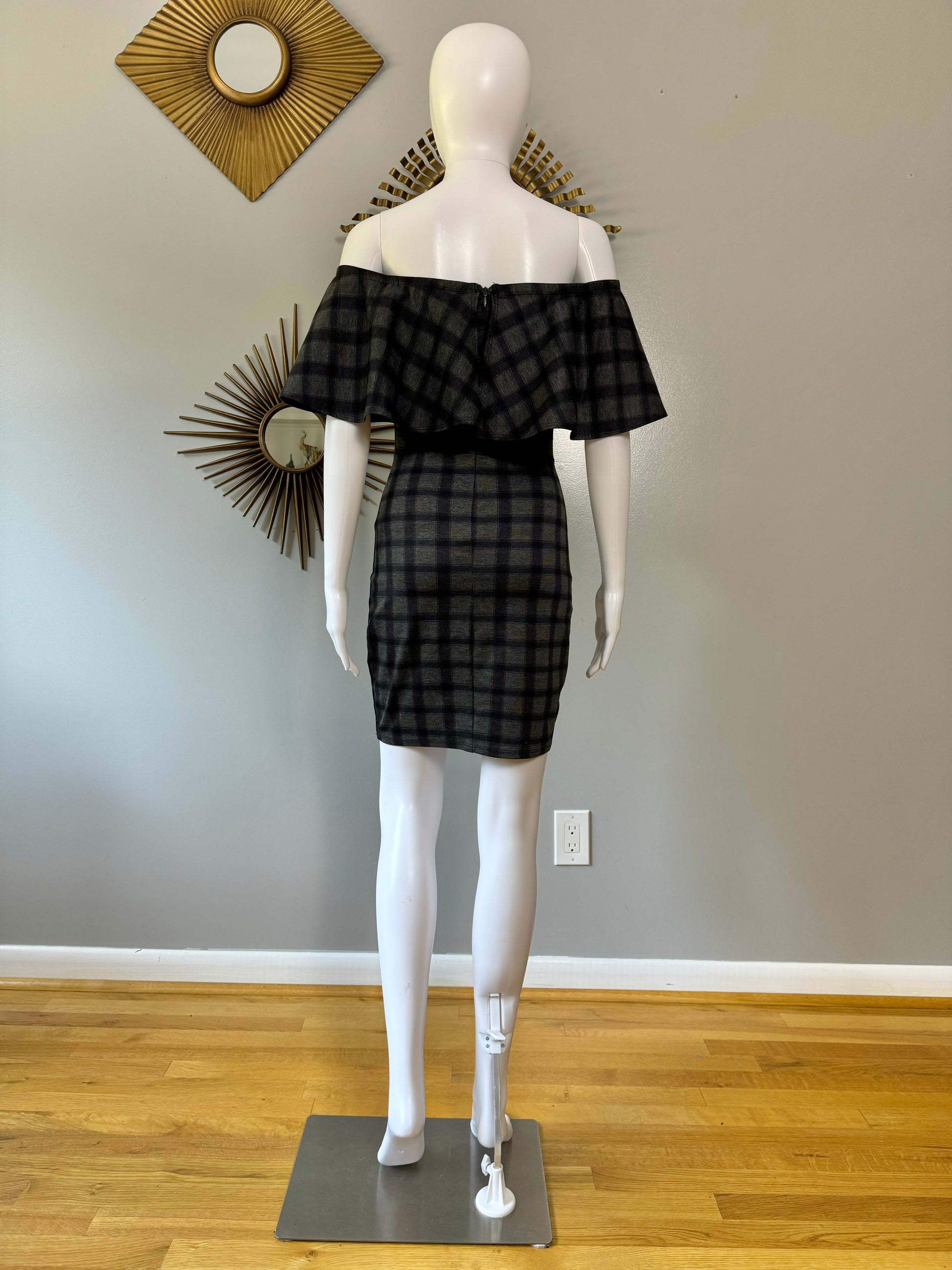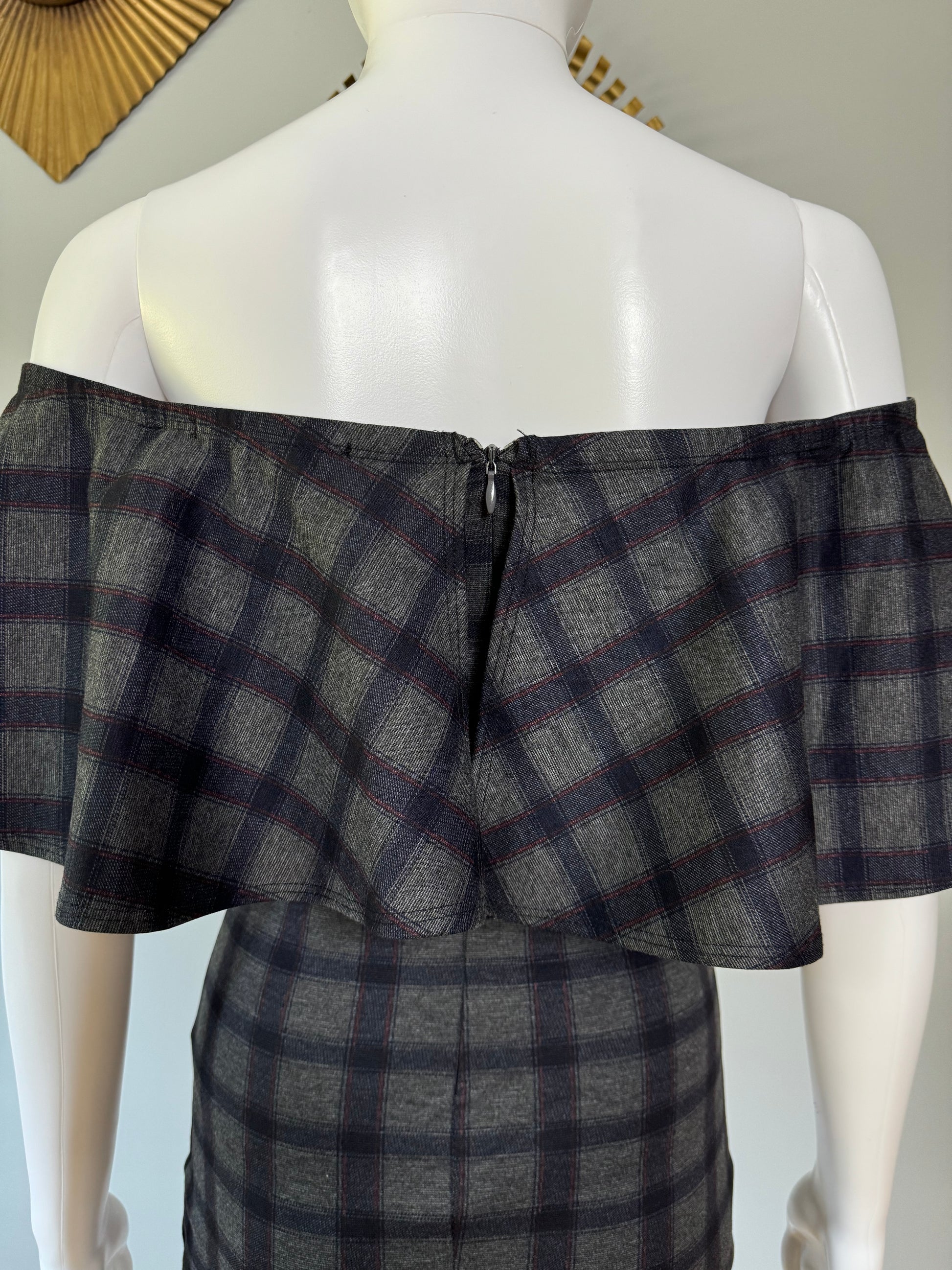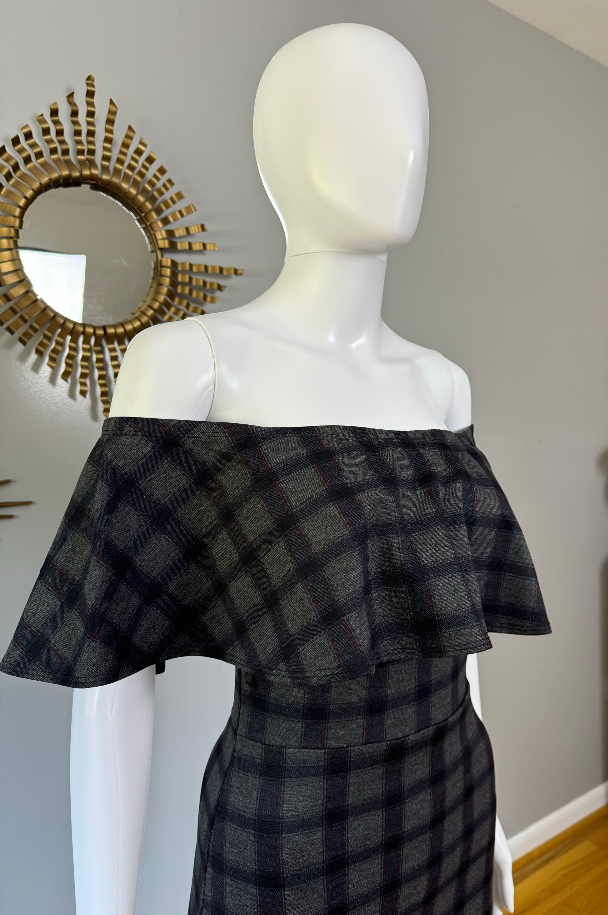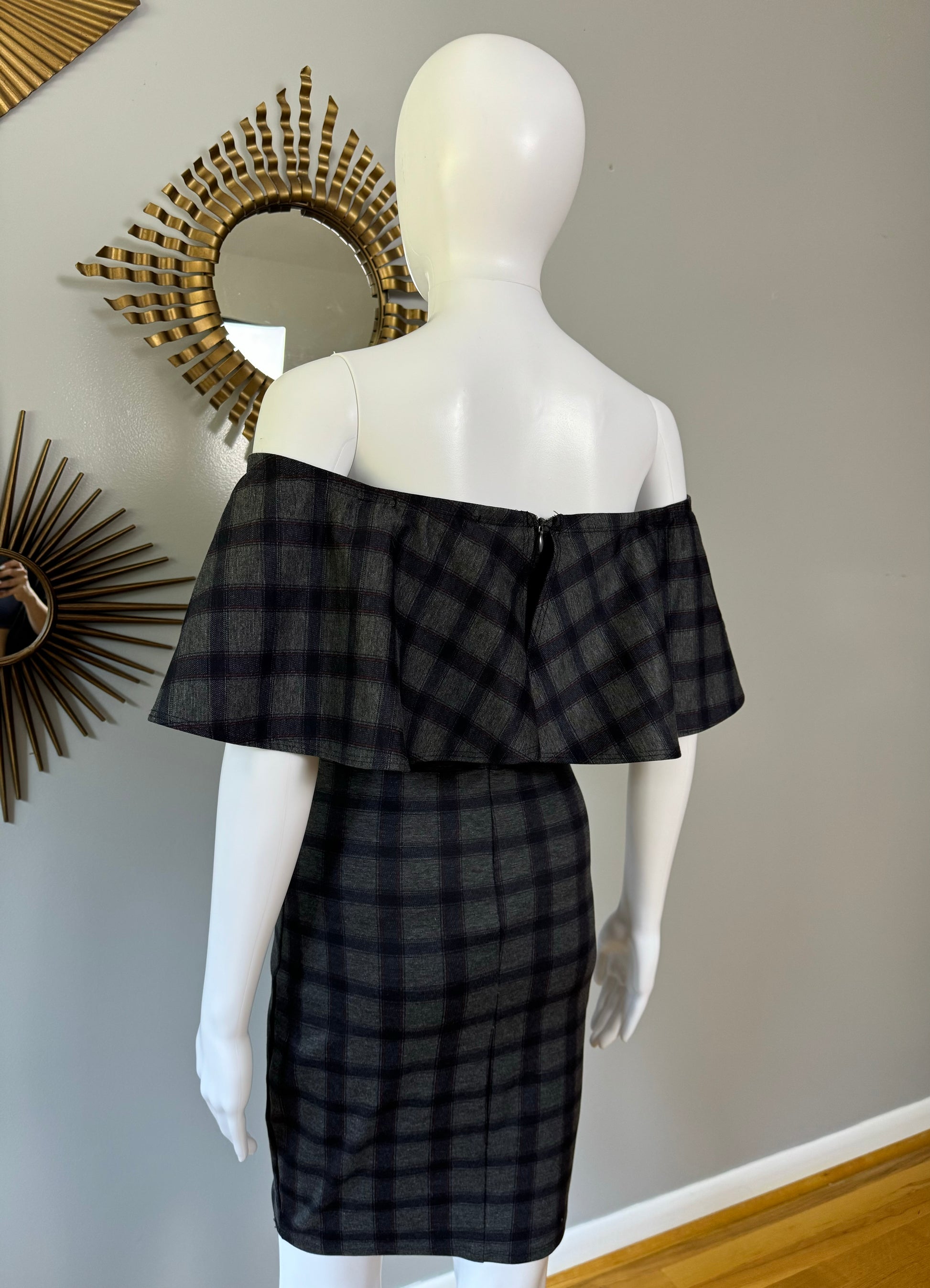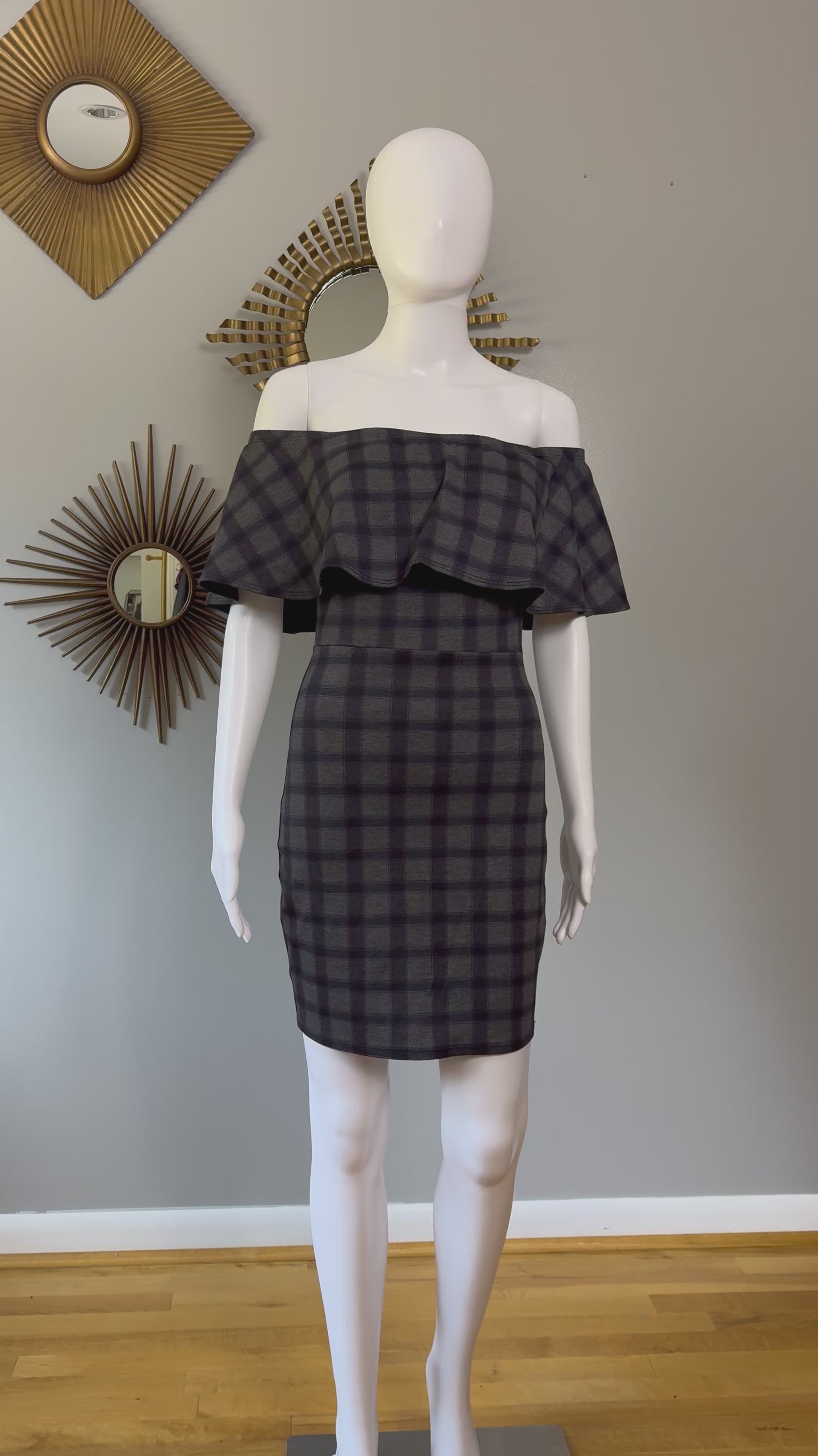 Lulu’s - Gray Plaid Off-Shoulder Dress