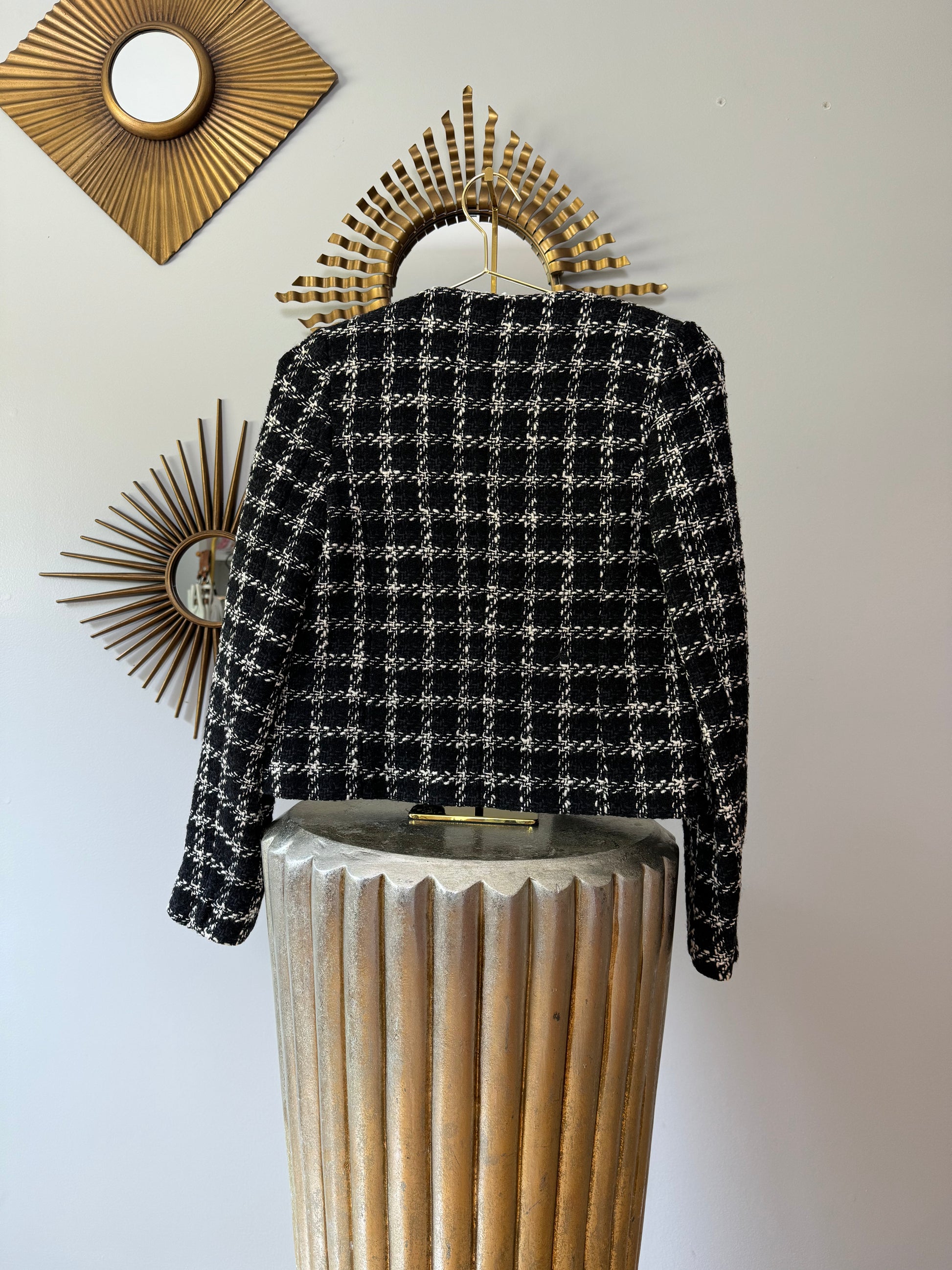 MANGO - Black & White Maxi Floral Tweed Blazer