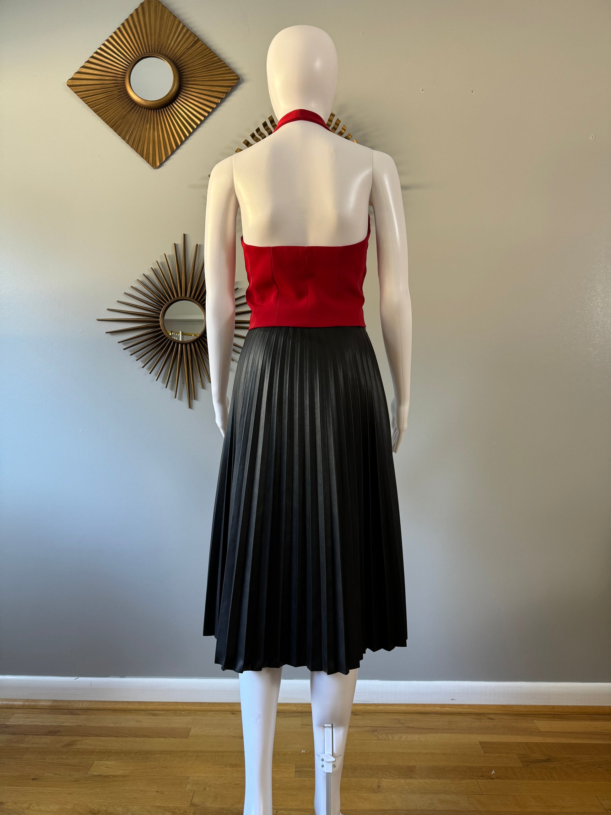 Vests are having a moment, and this halter version offers a flirty spin with its open-back design and charming rosette detail.