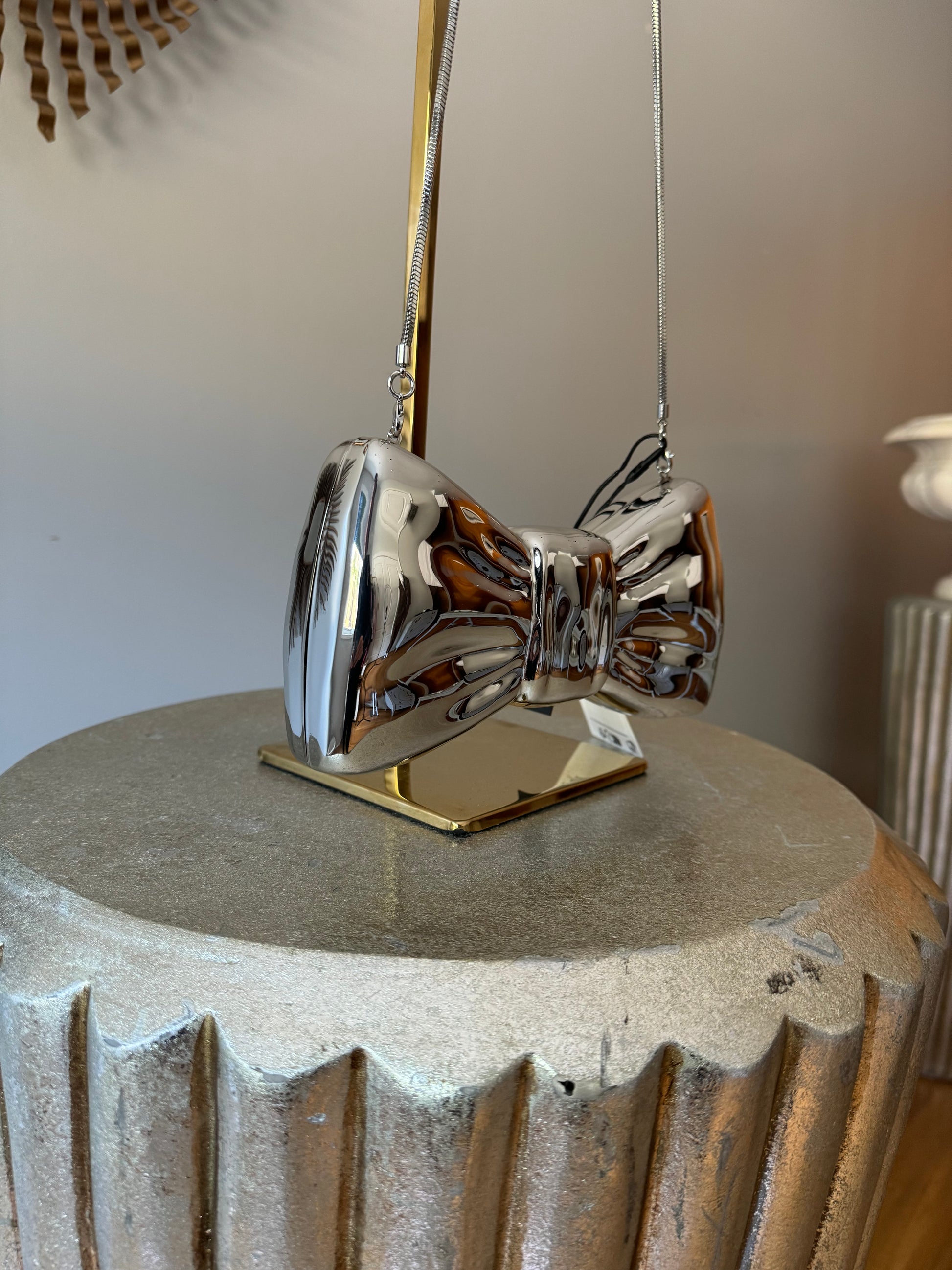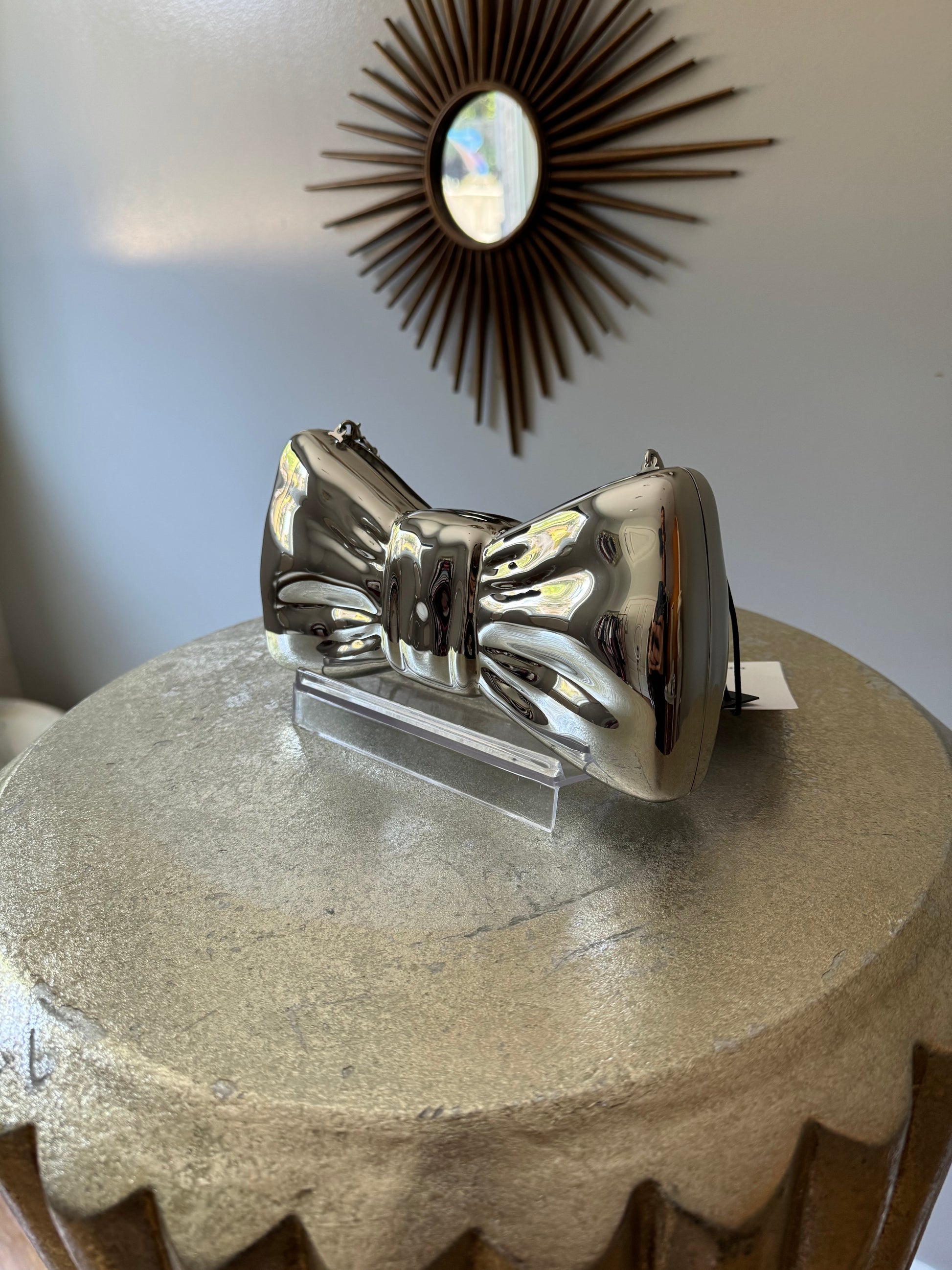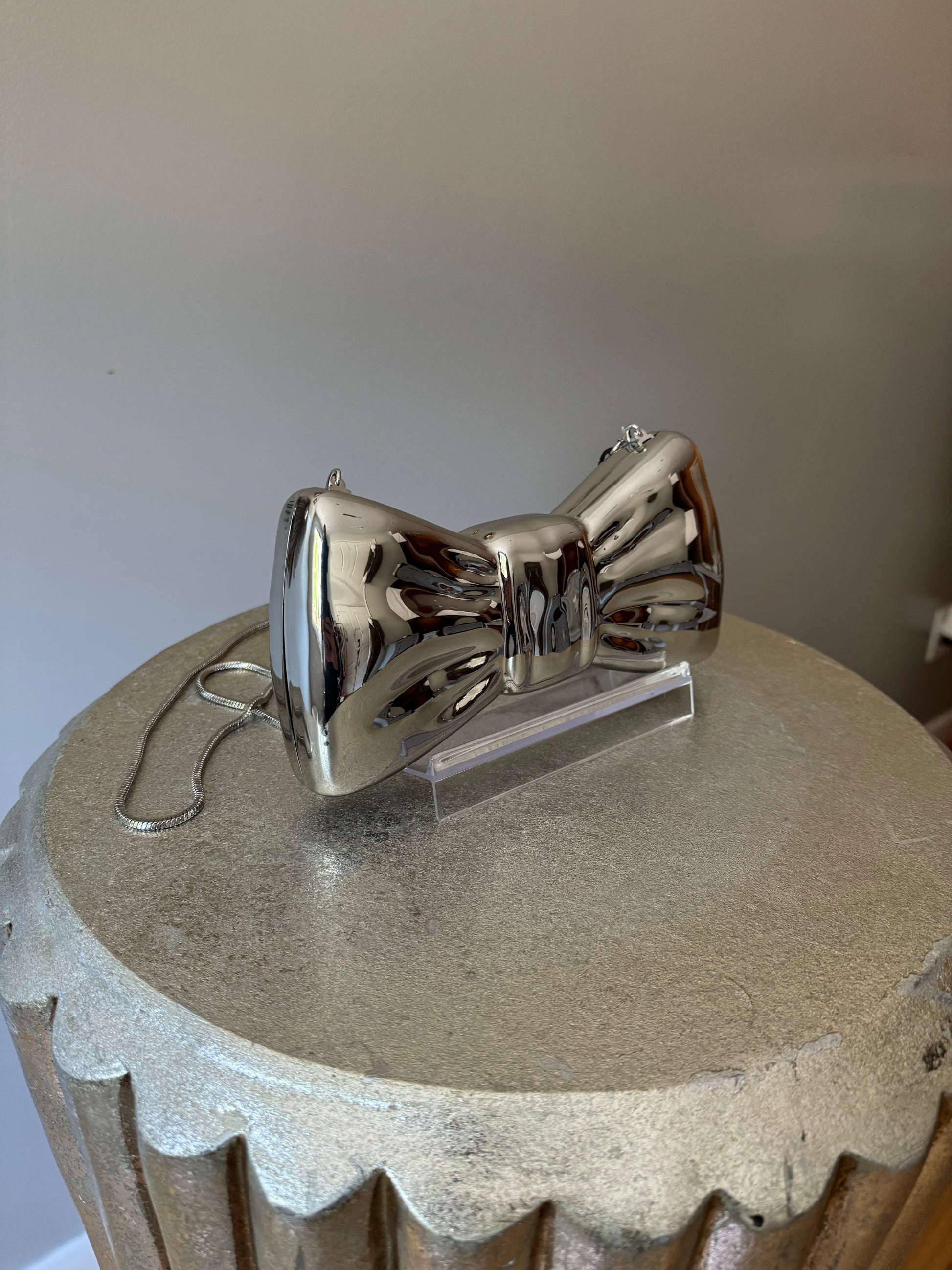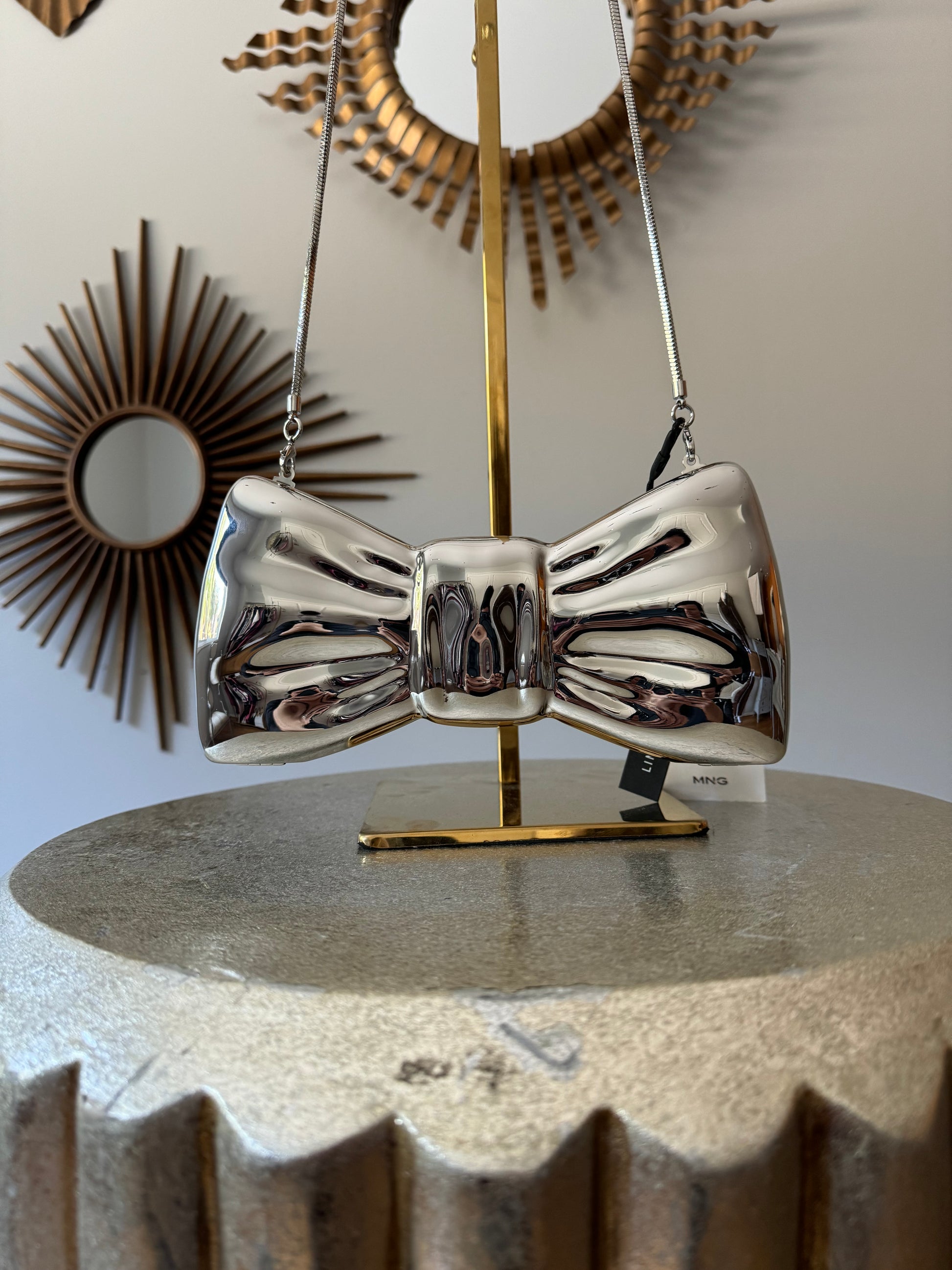 MANGO - Silver Bow Clutch Bag