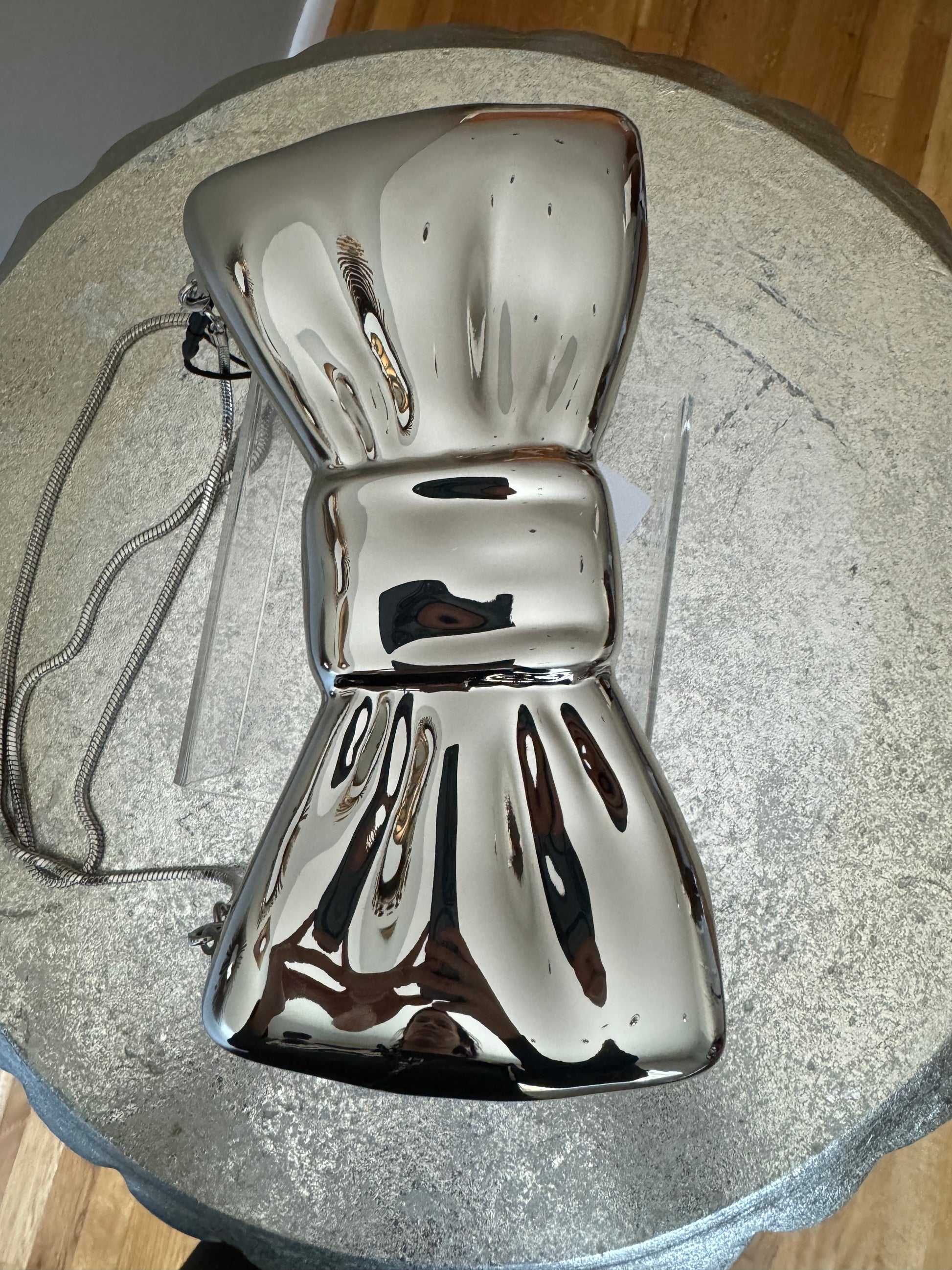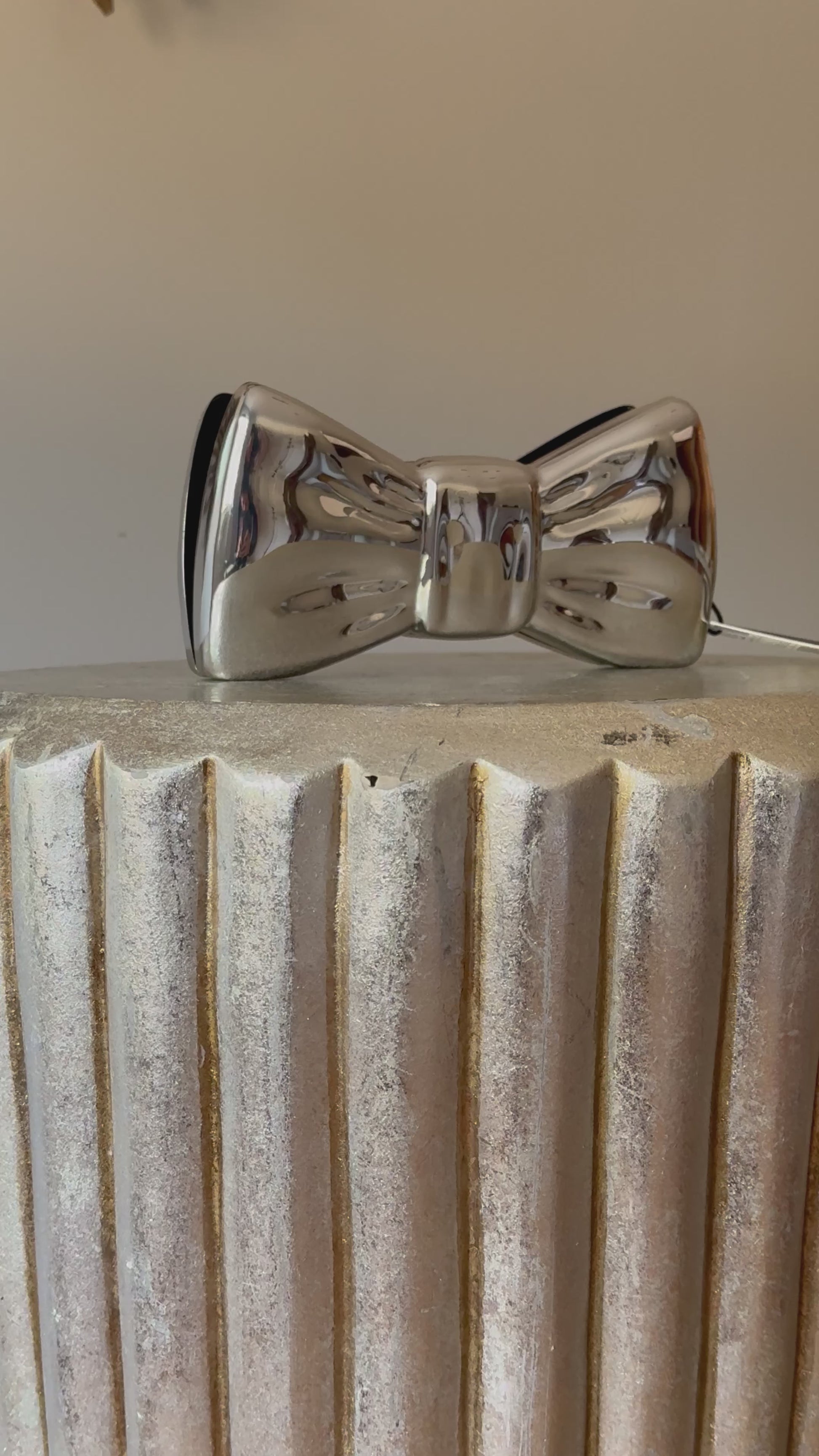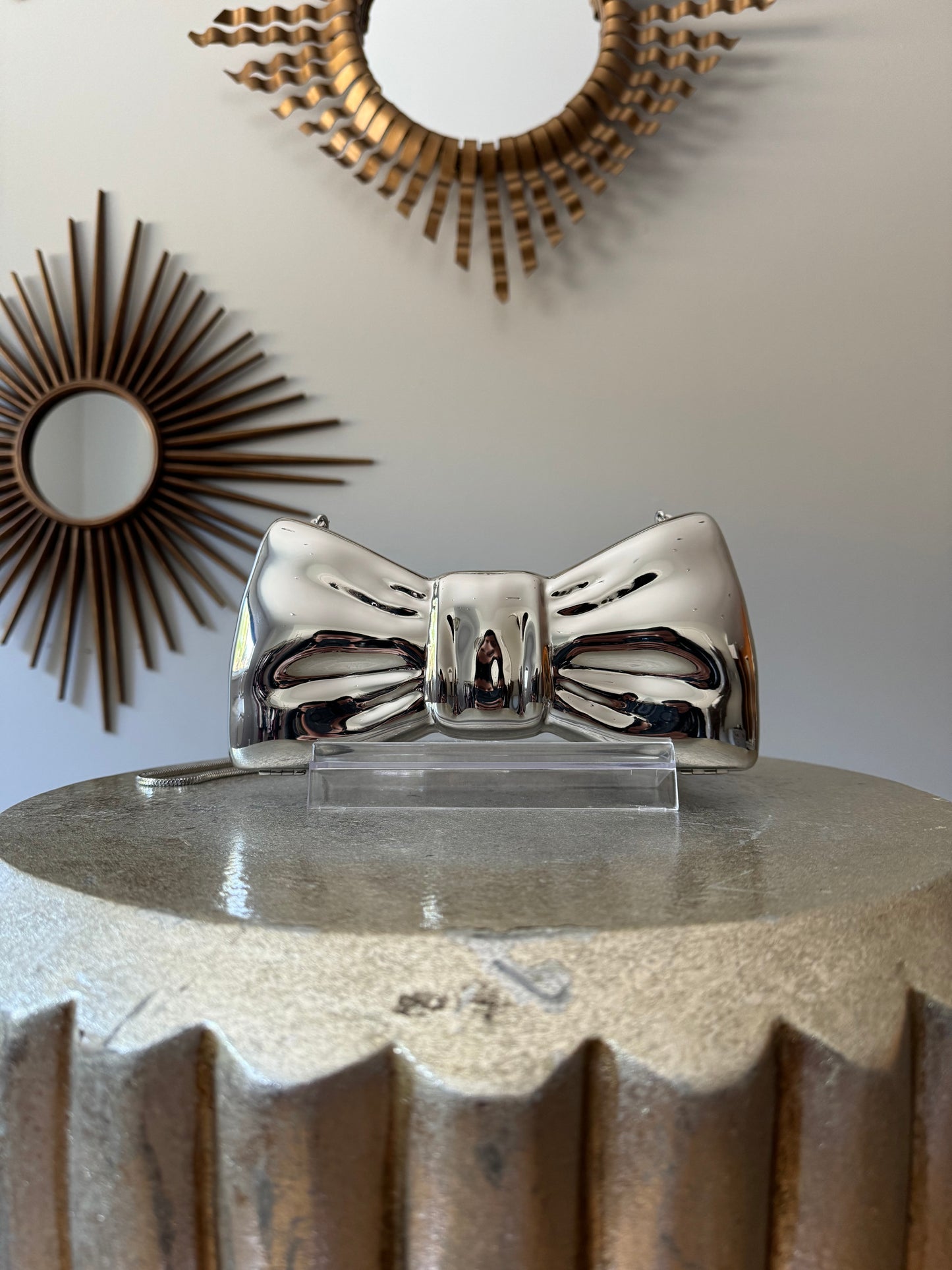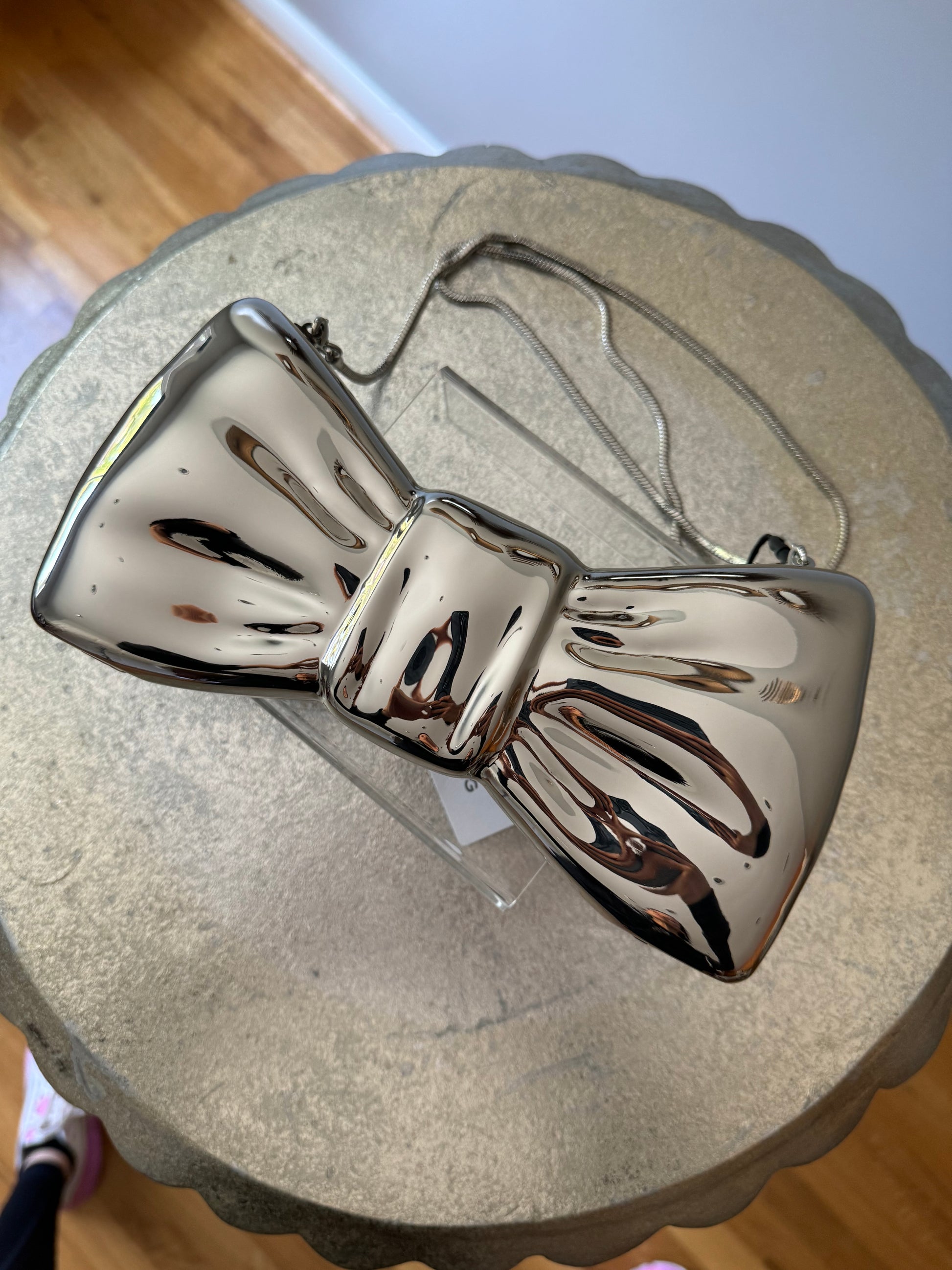 MANGO - Silver Bow Clutch Bag