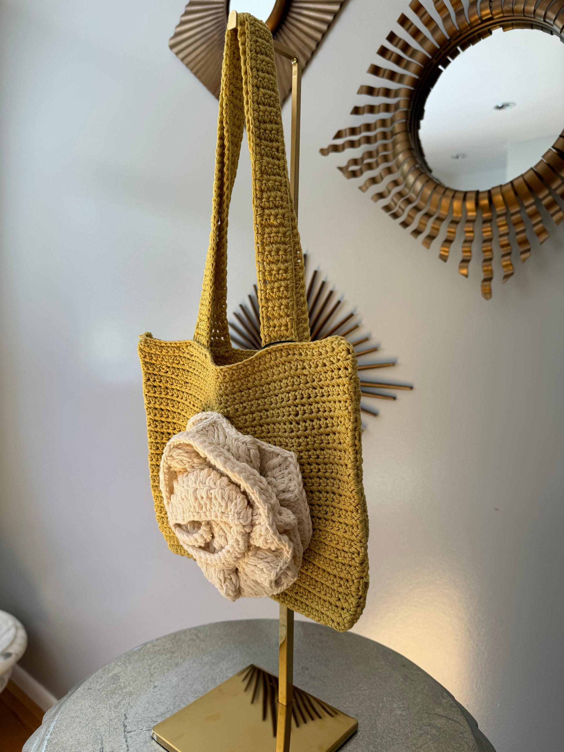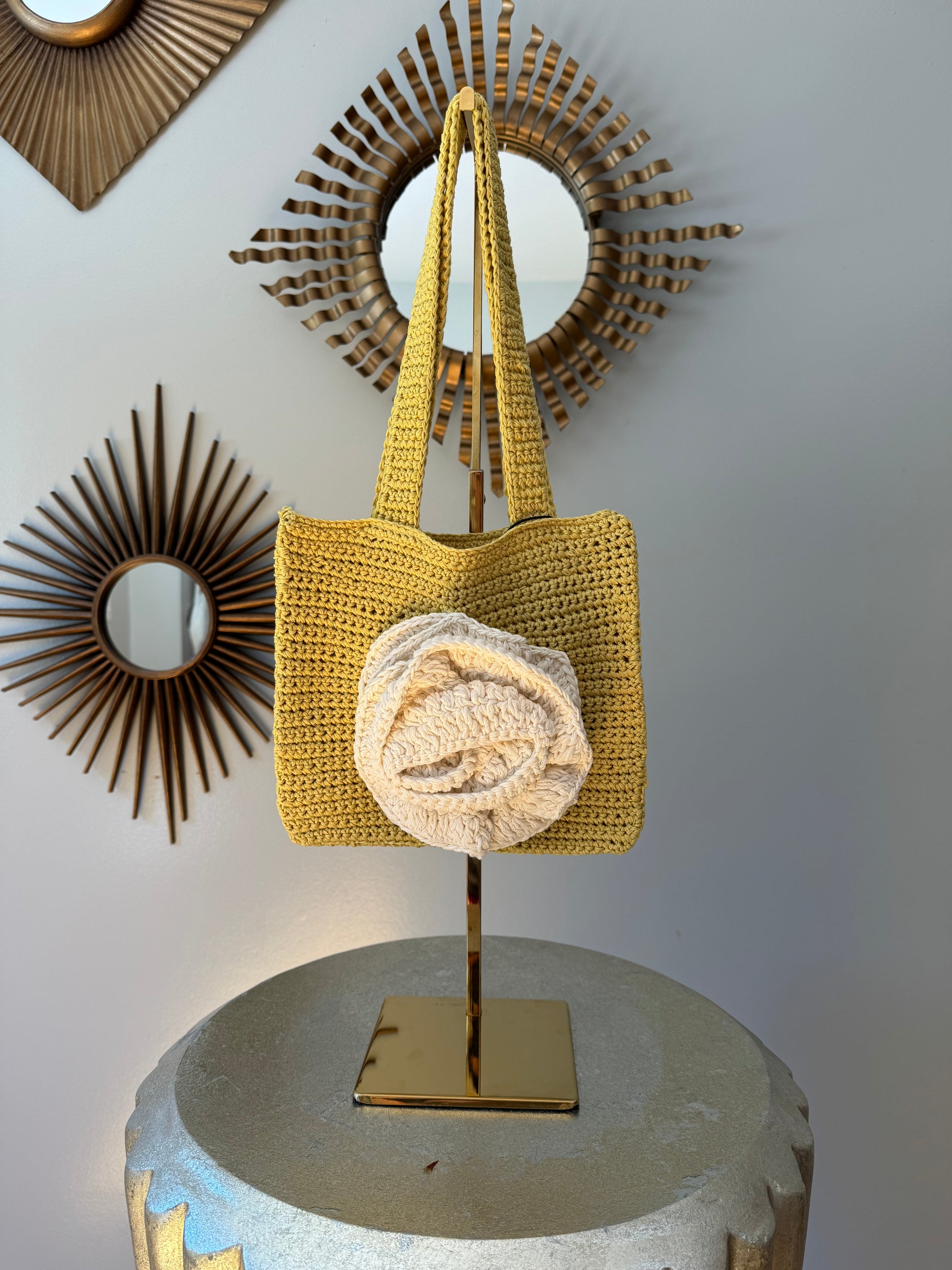 MANGO - Yellow Crochet Flower Bag