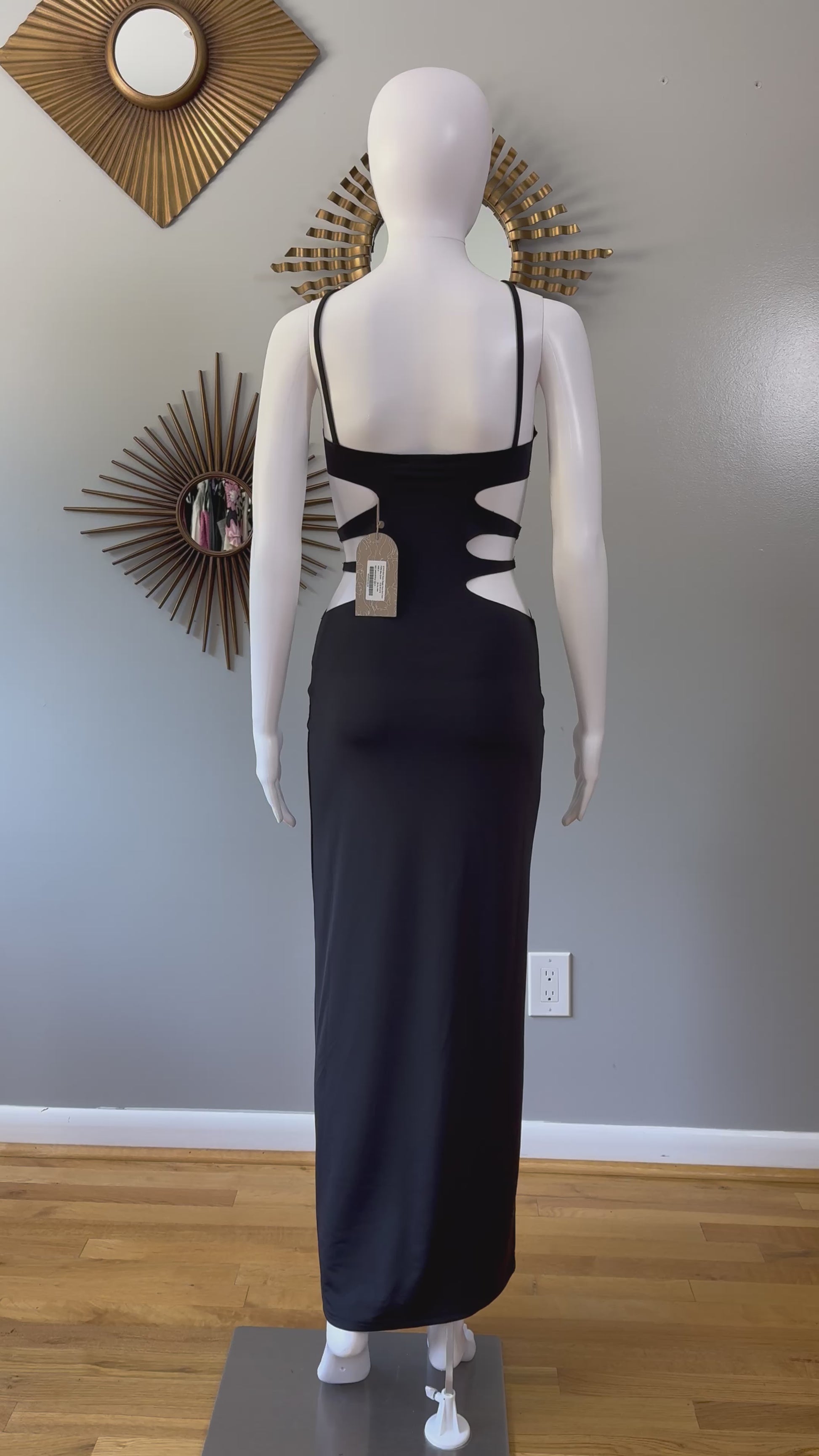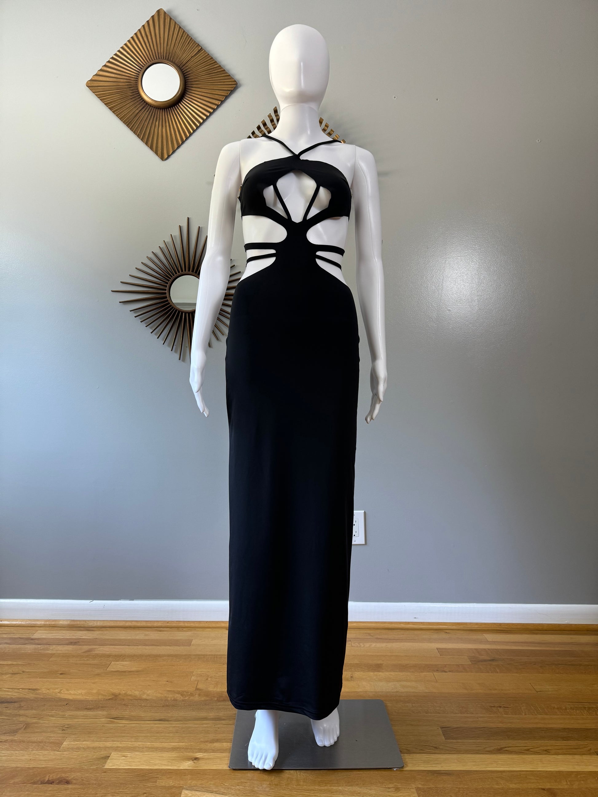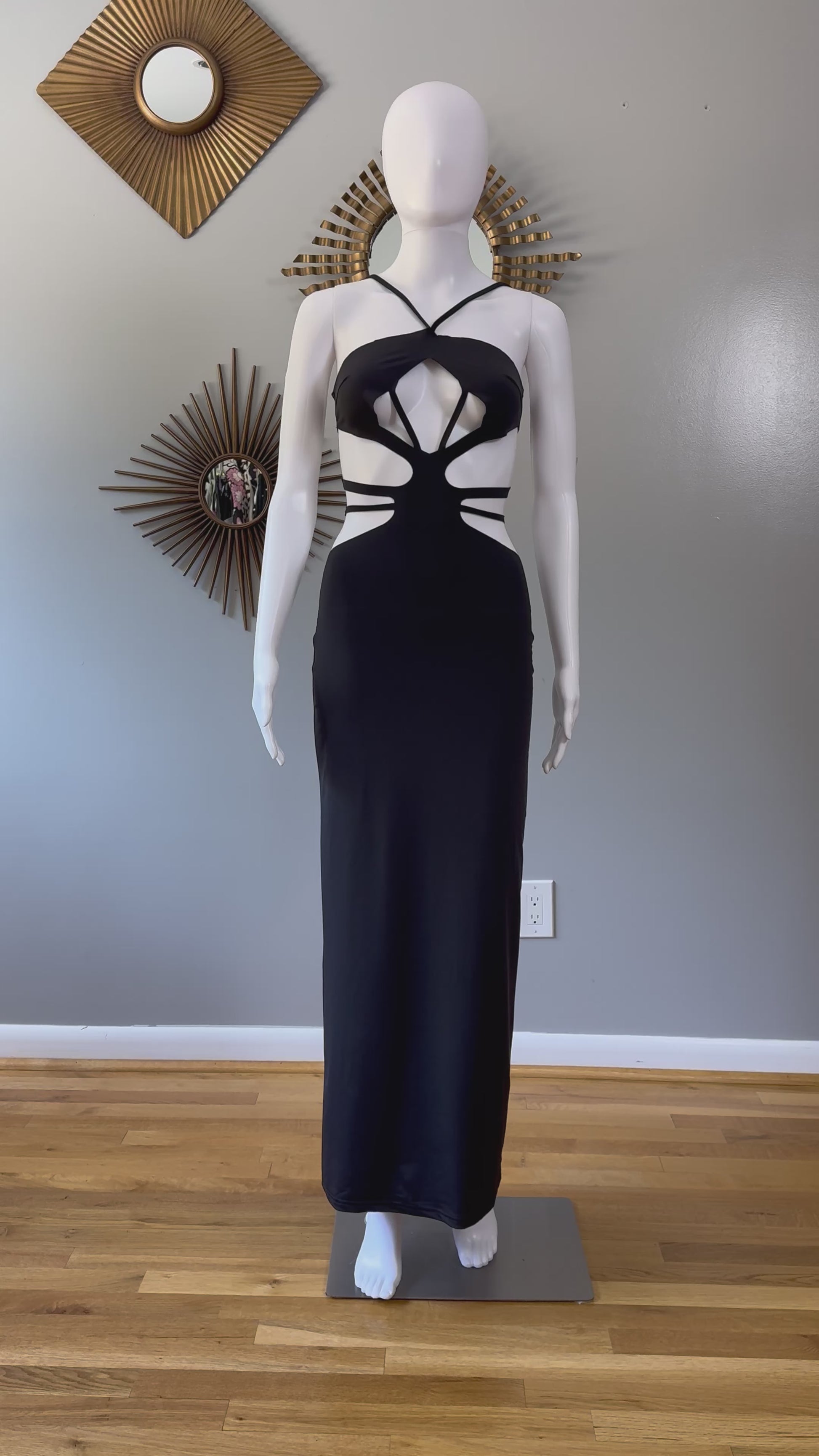 MESHKI - Black Eden Cutout Halter Maxi Dress