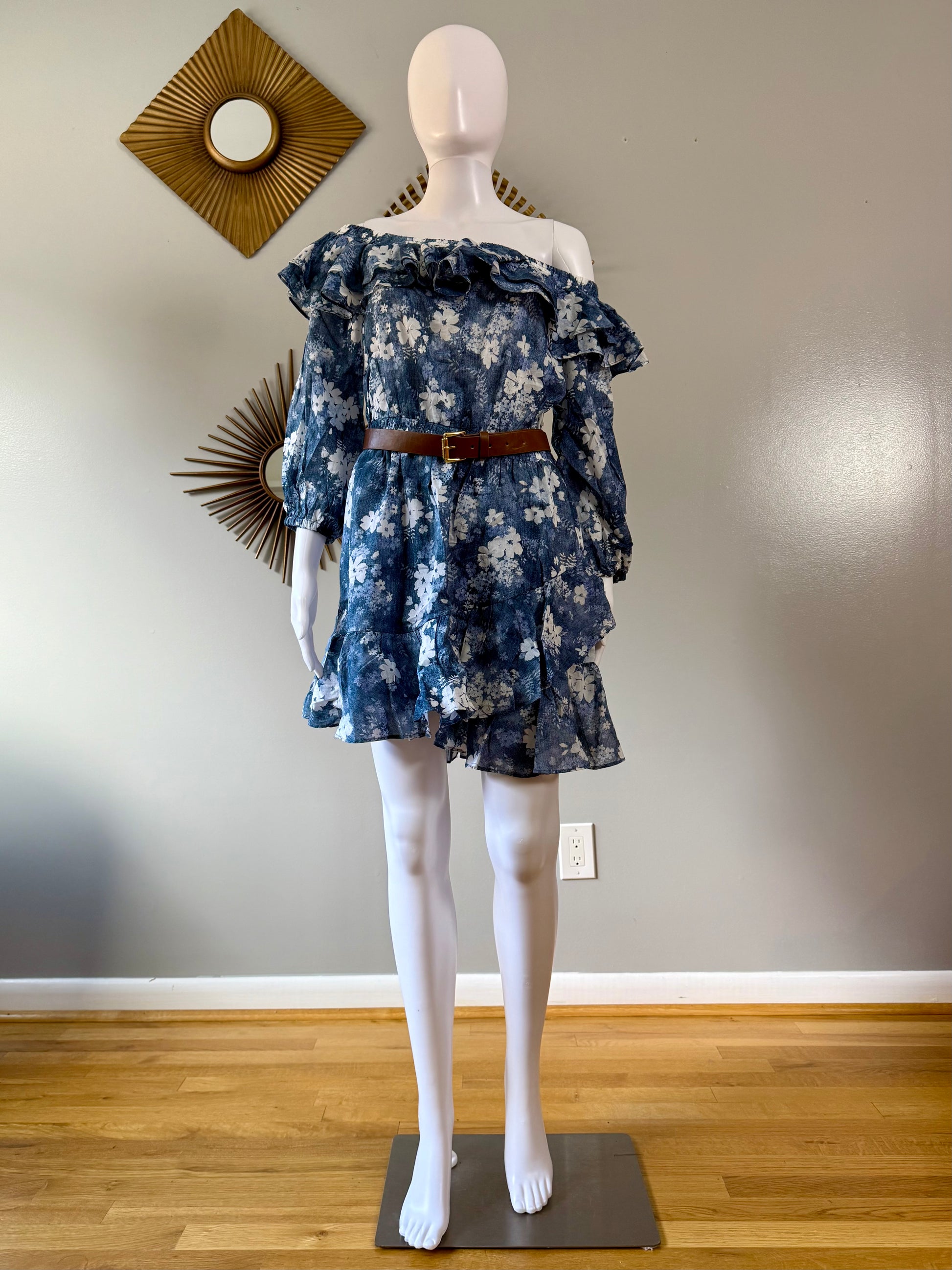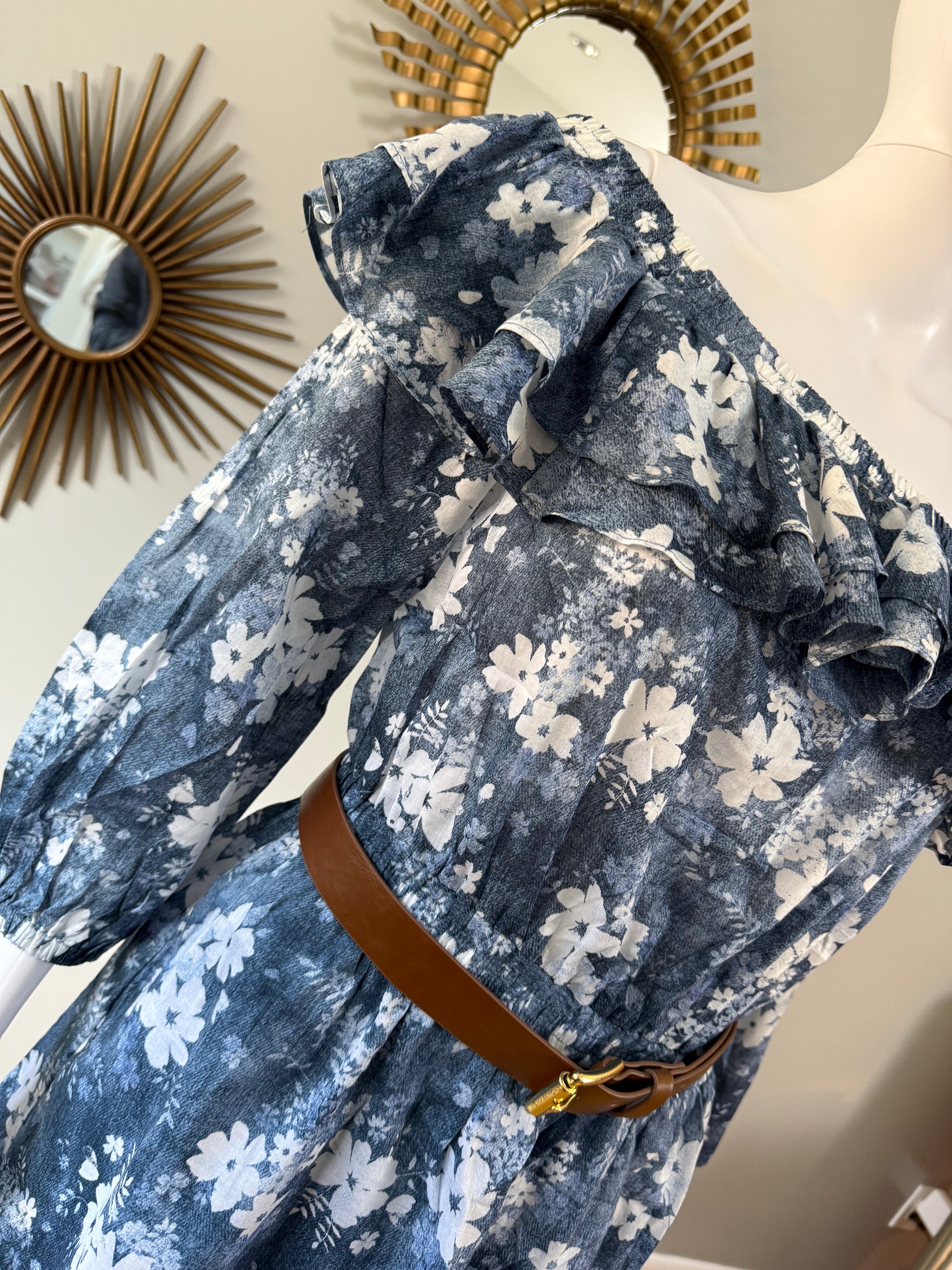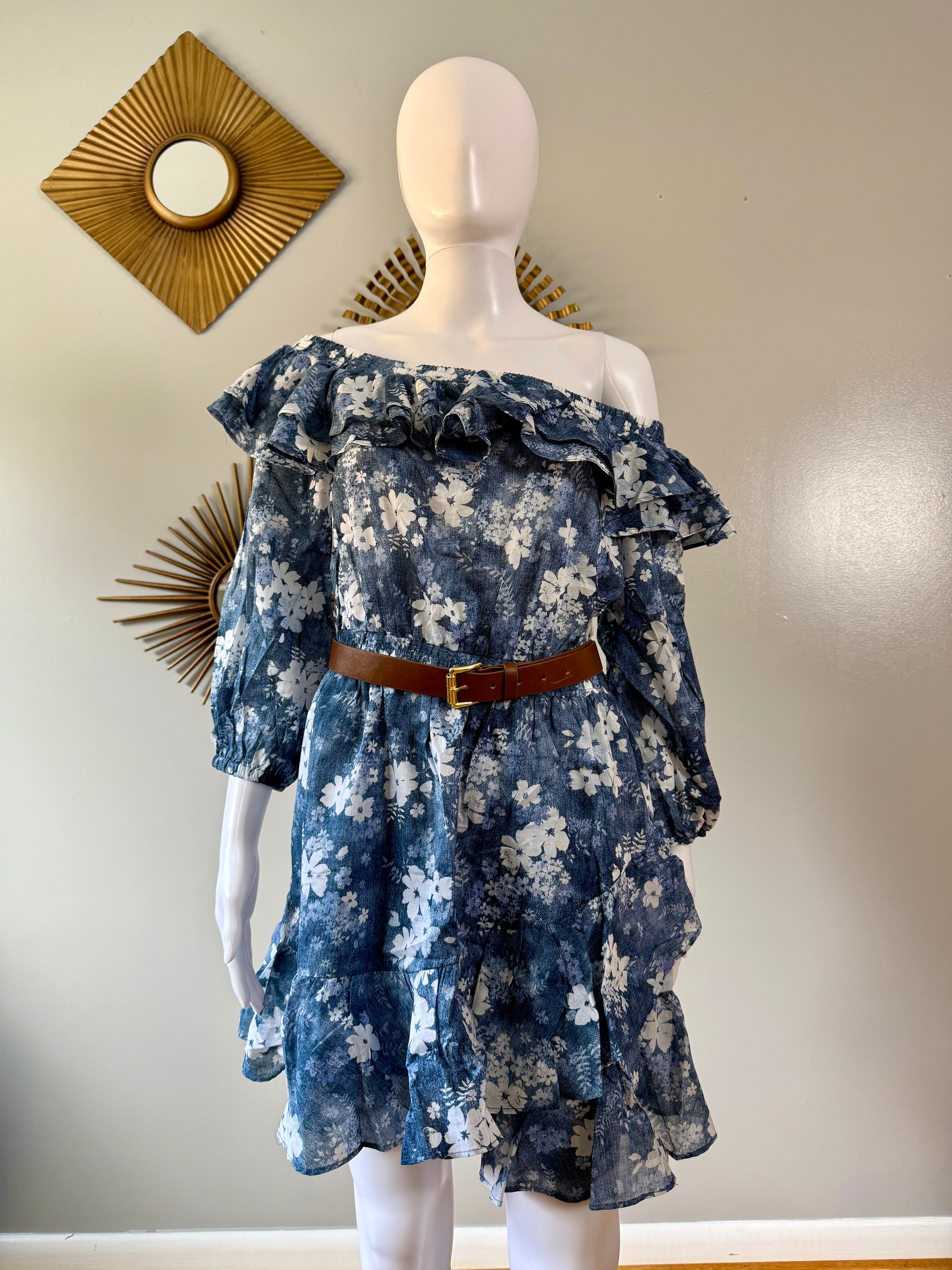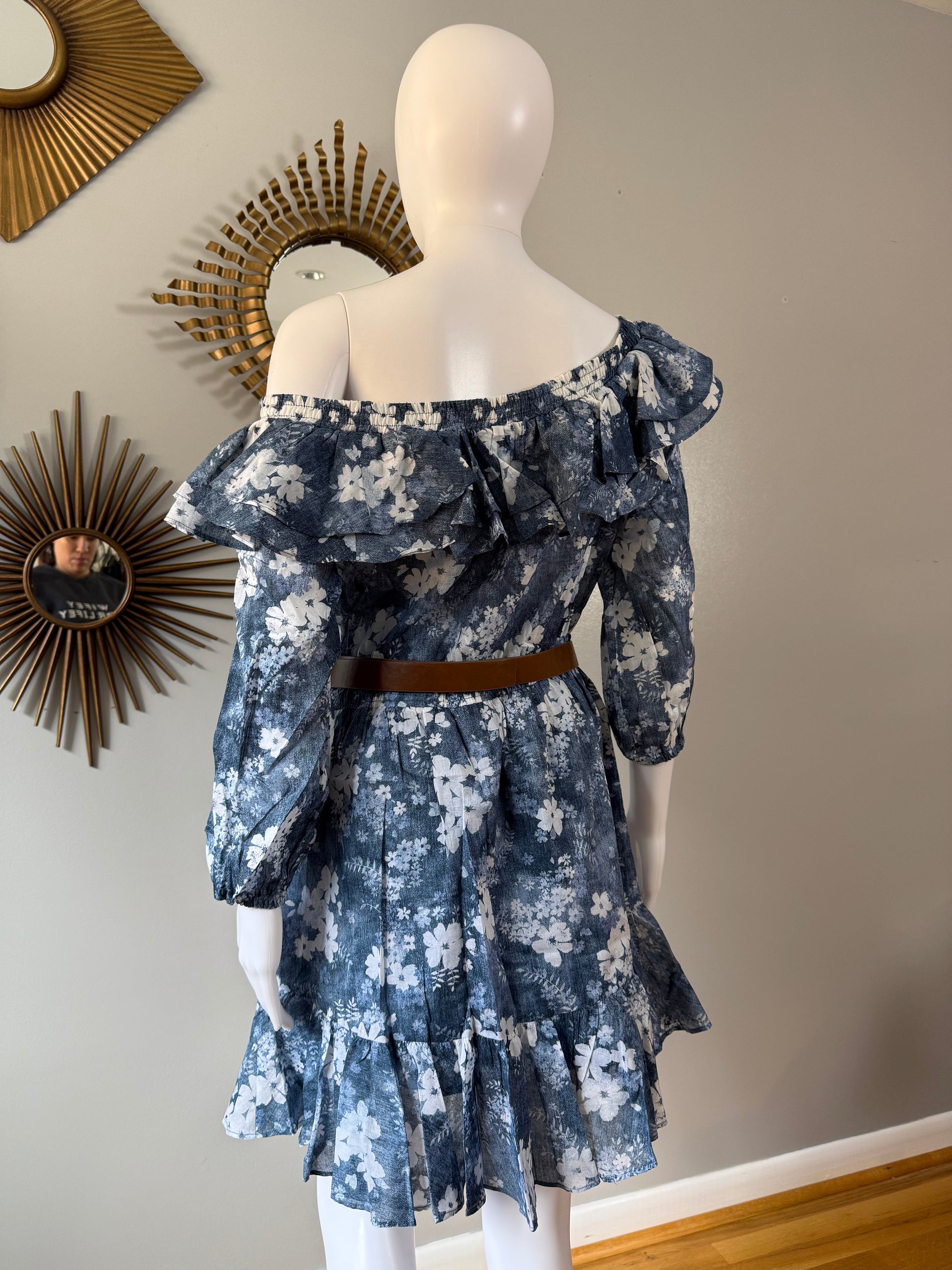 Michael Kors - Blue Off Shoulder Ruffle Dress