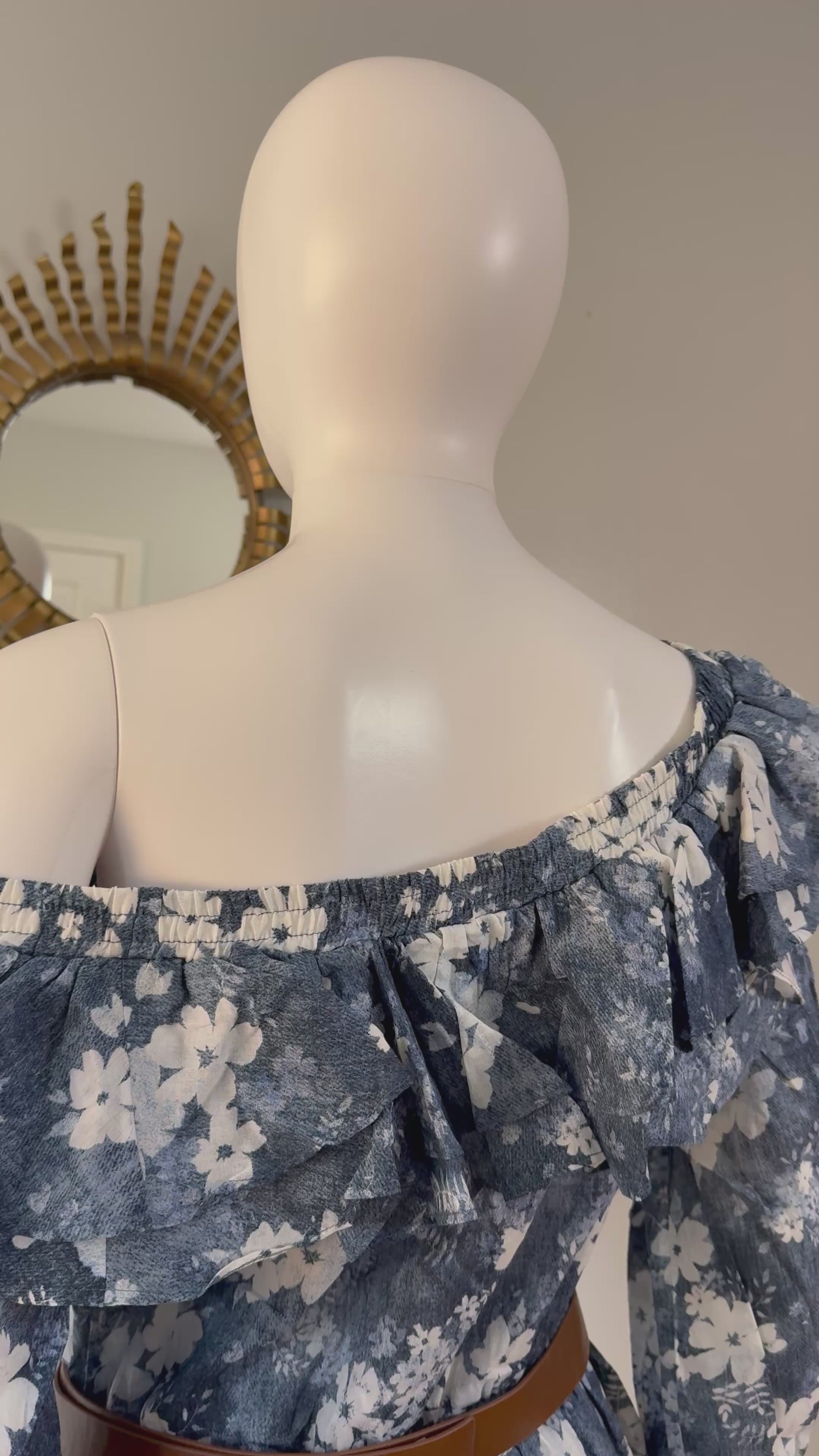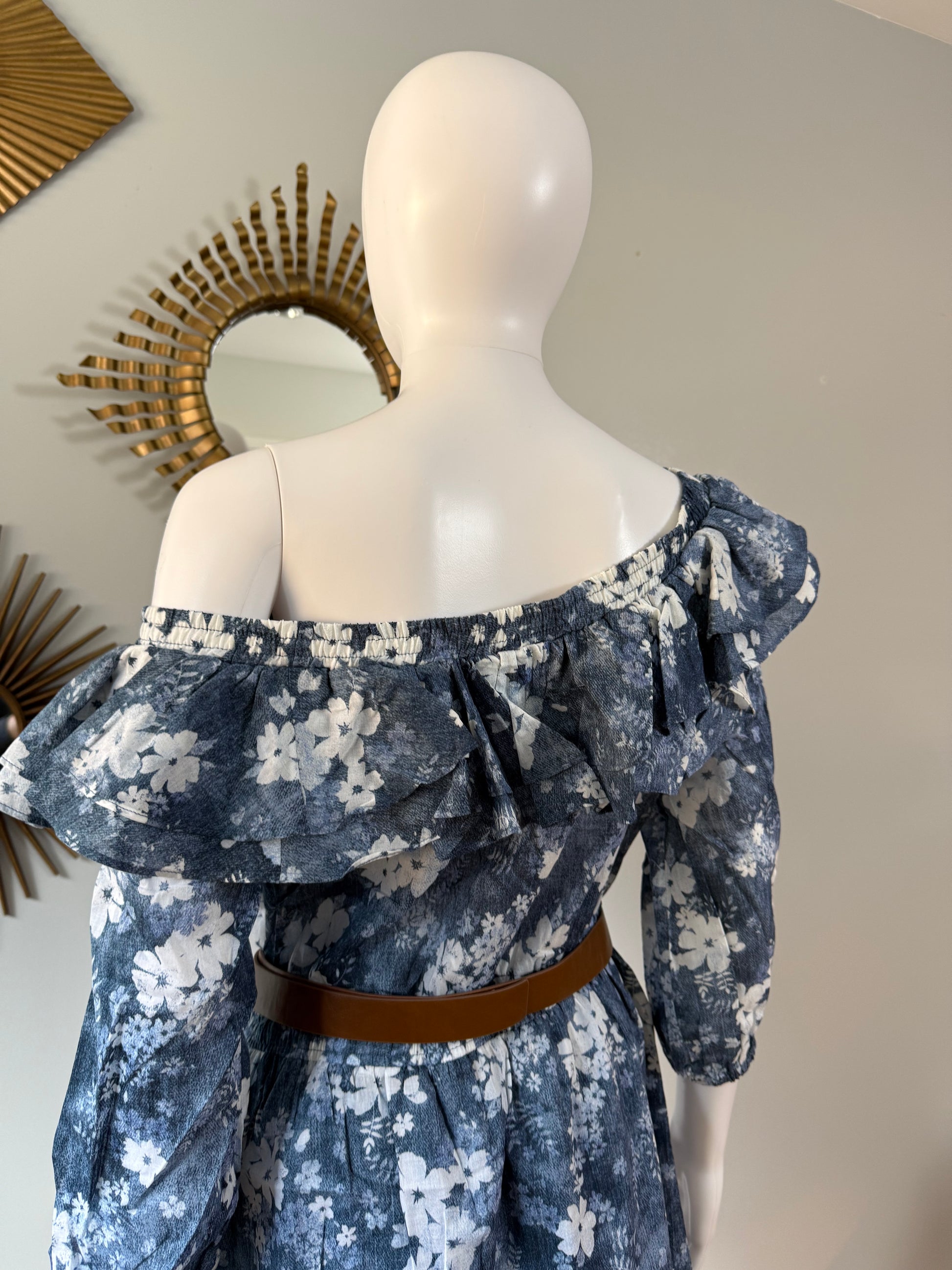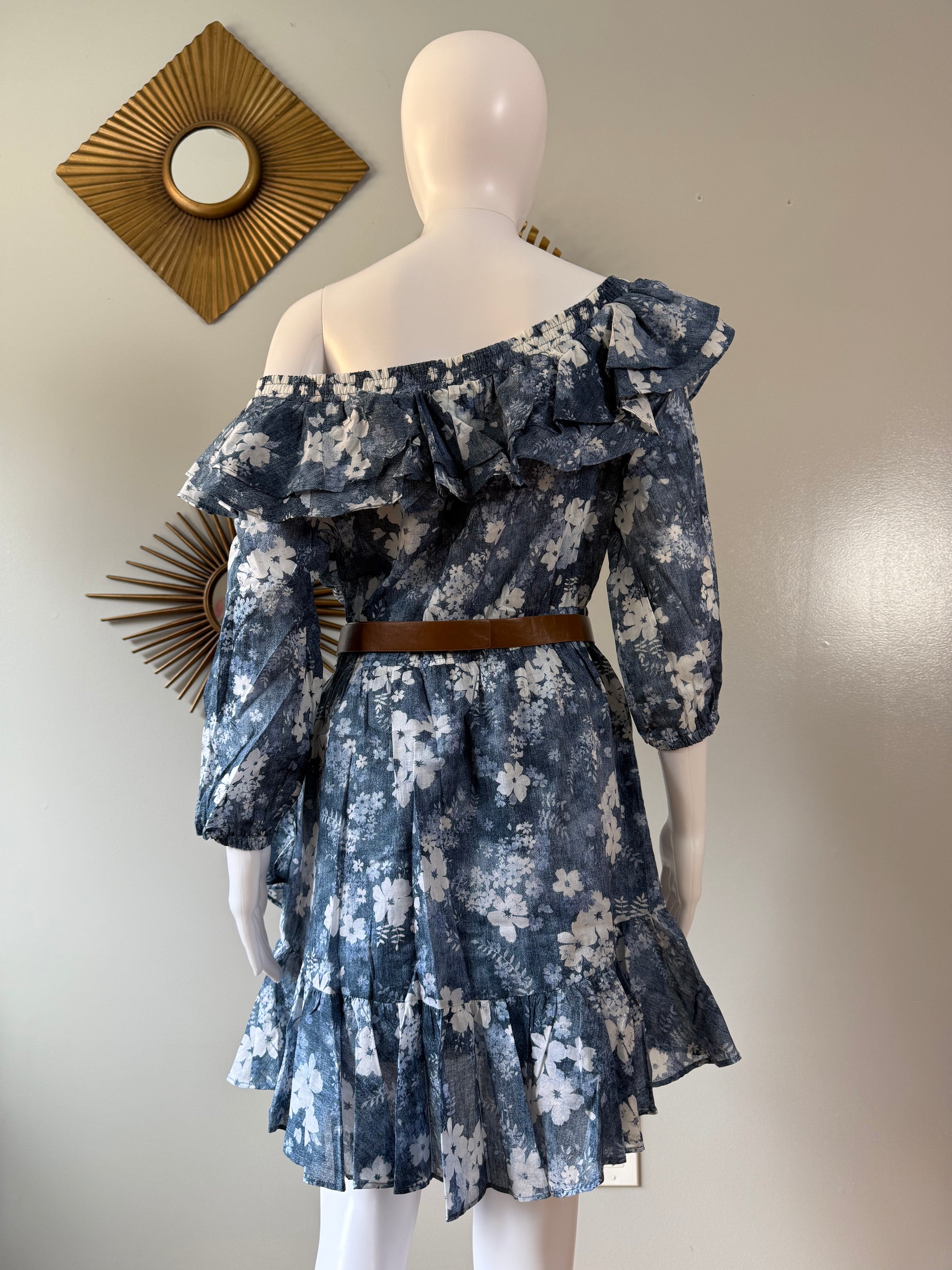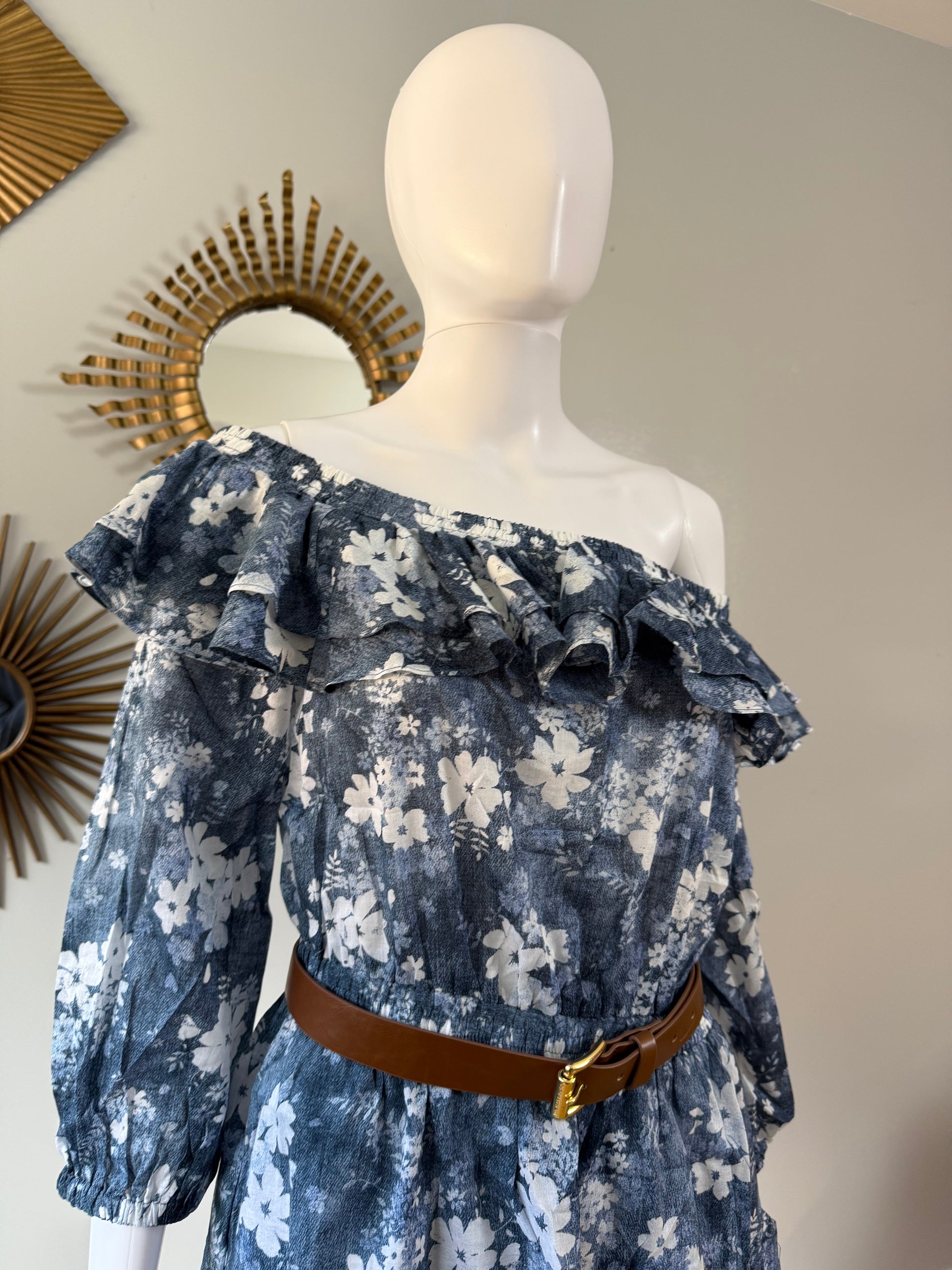 Michael Kors - Blue Off Shoulder Ruffle Dress