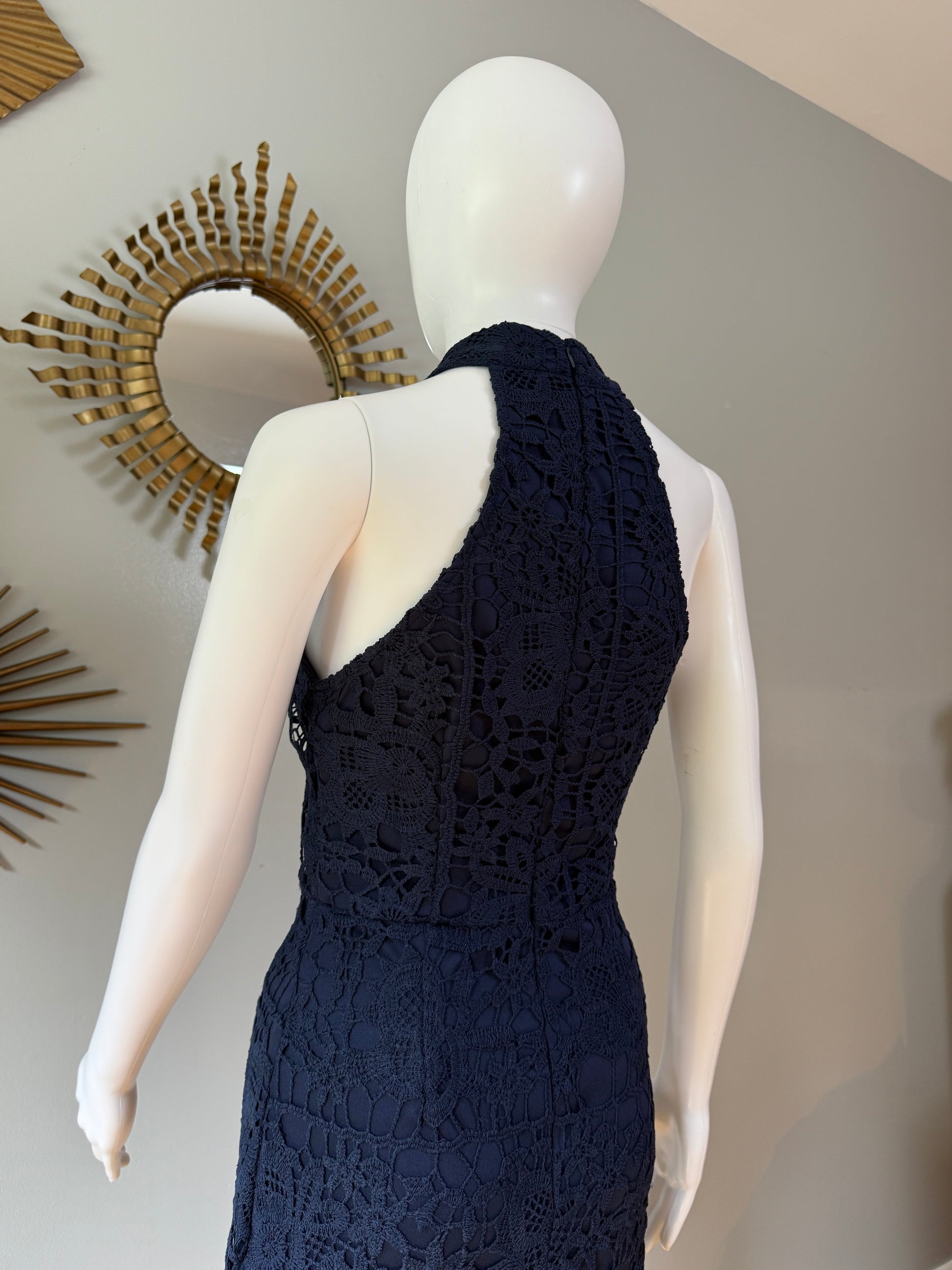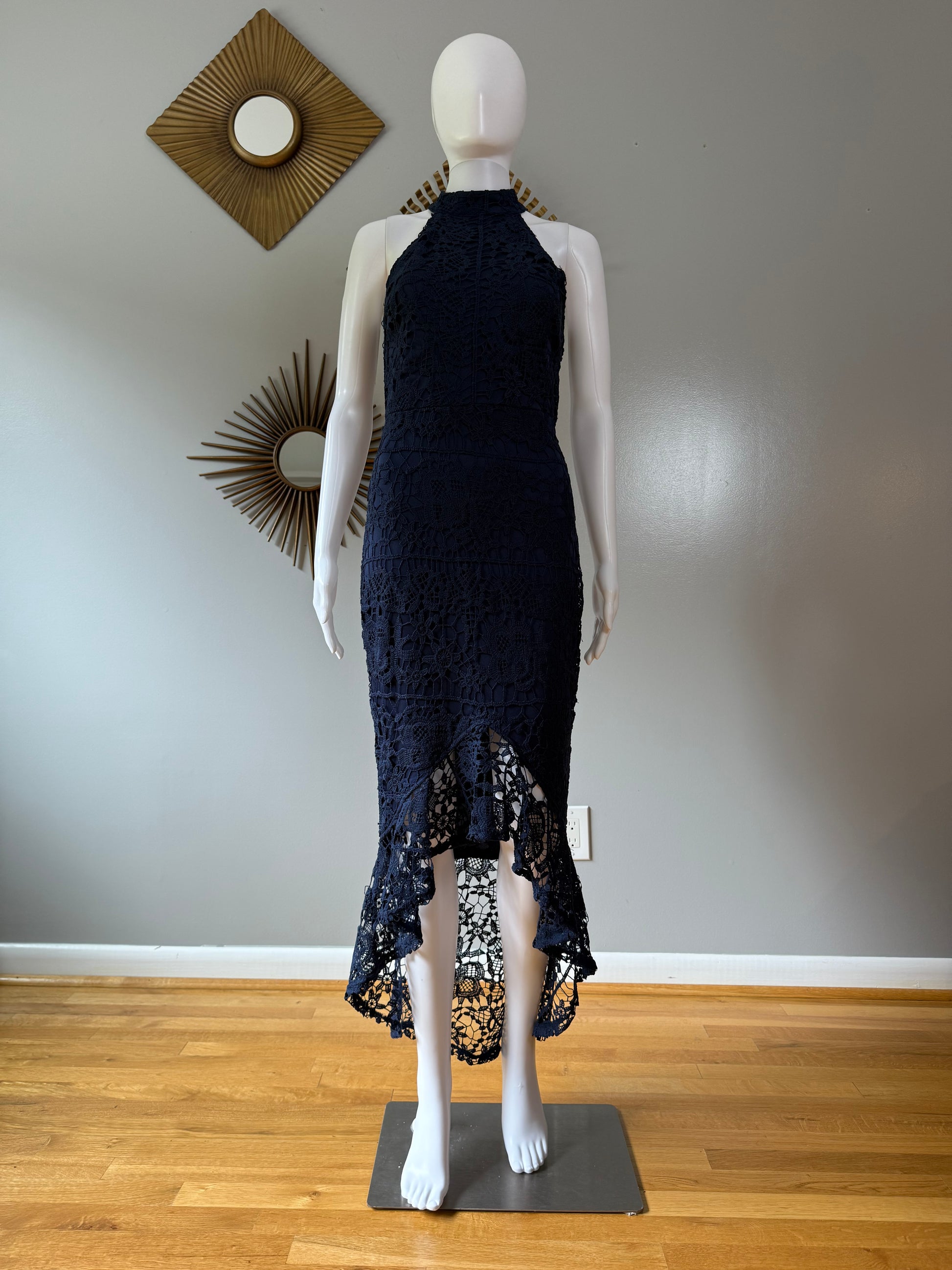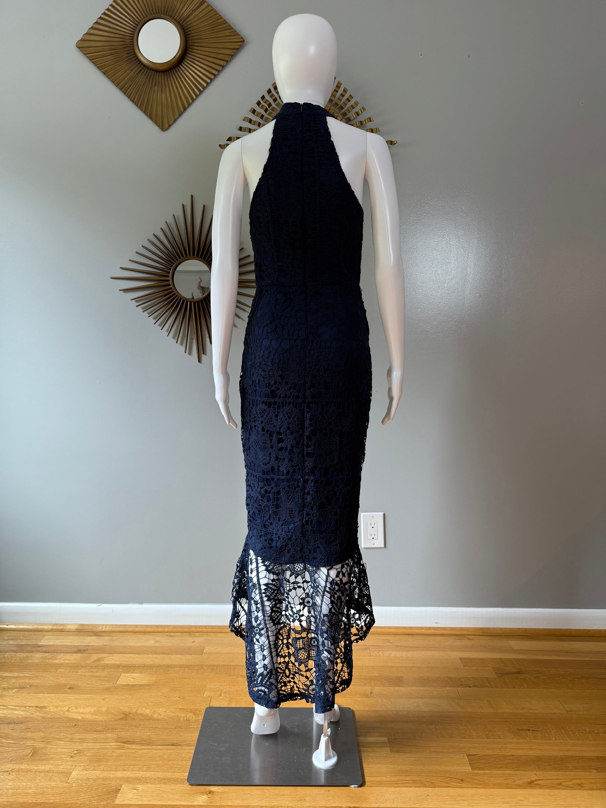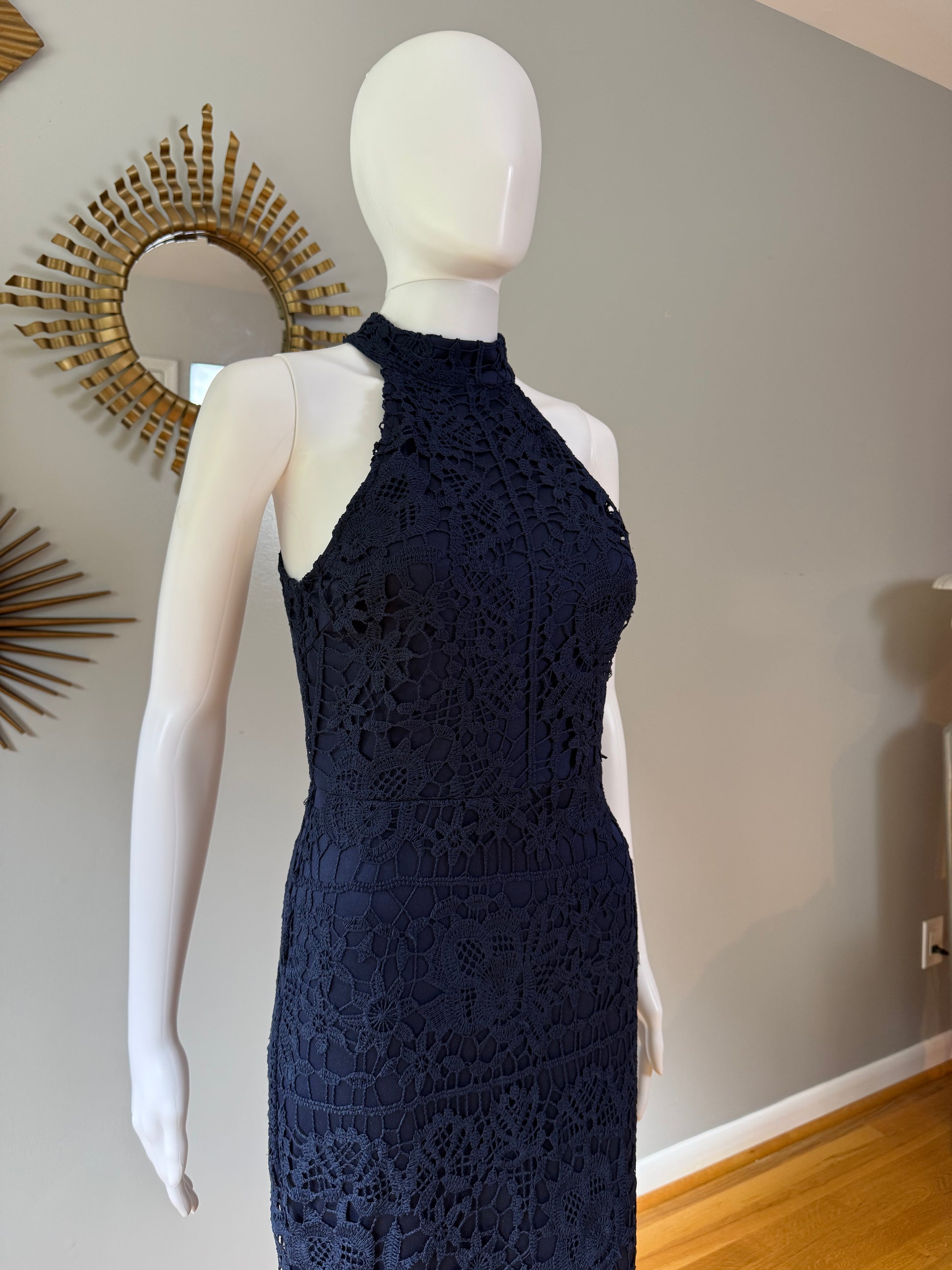 Missguided - Blue Lace High Neck Fishtail Dress