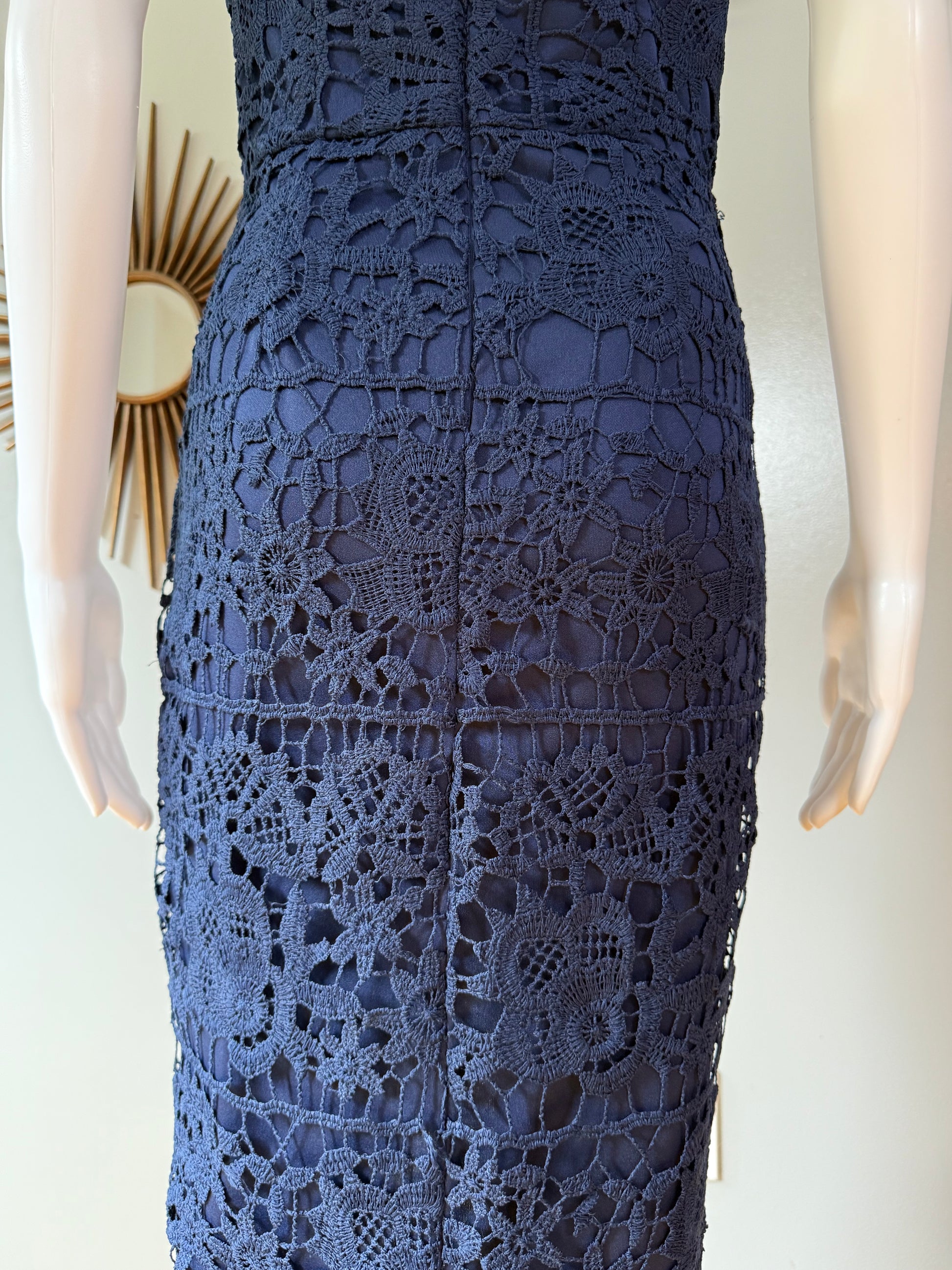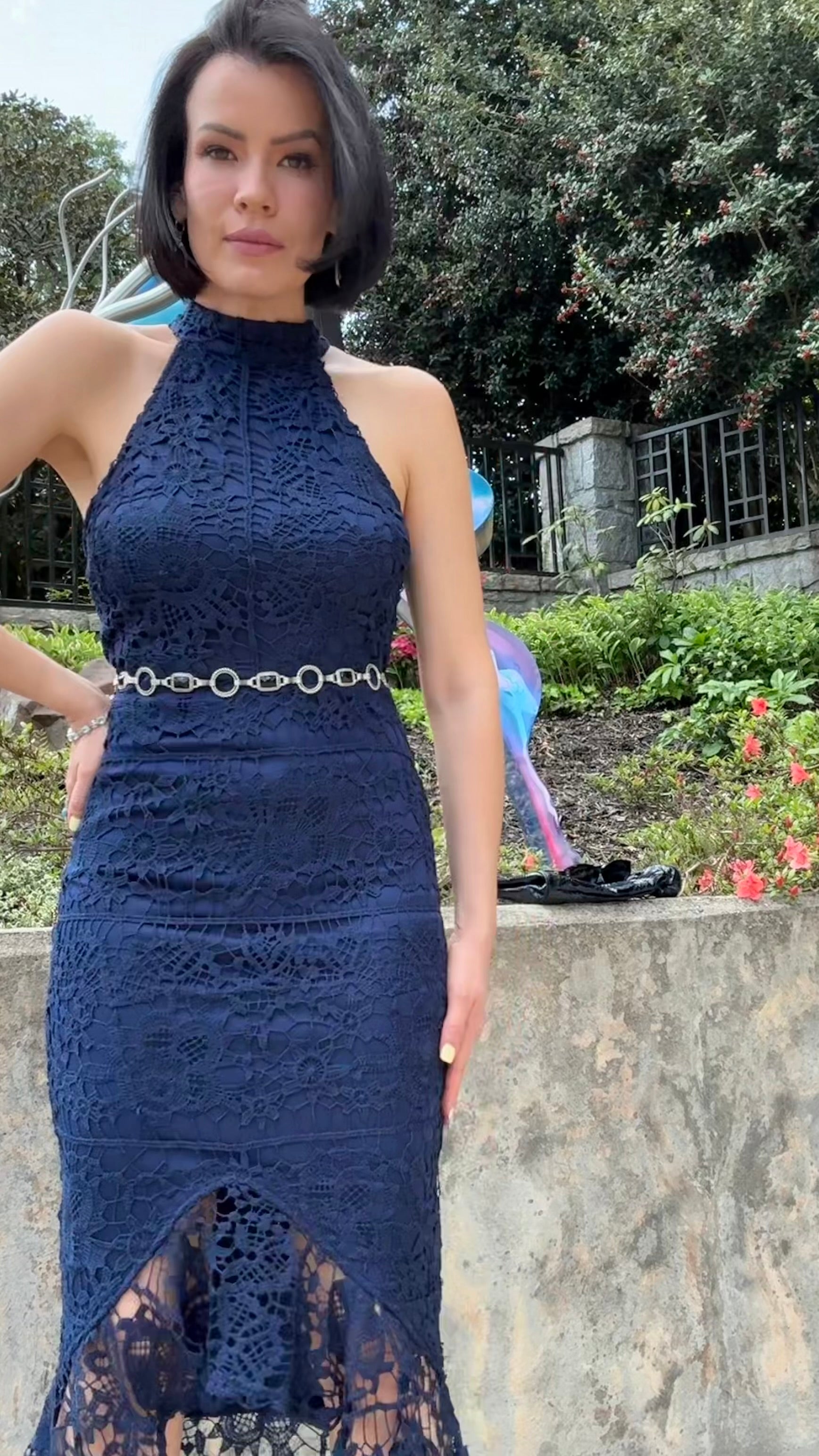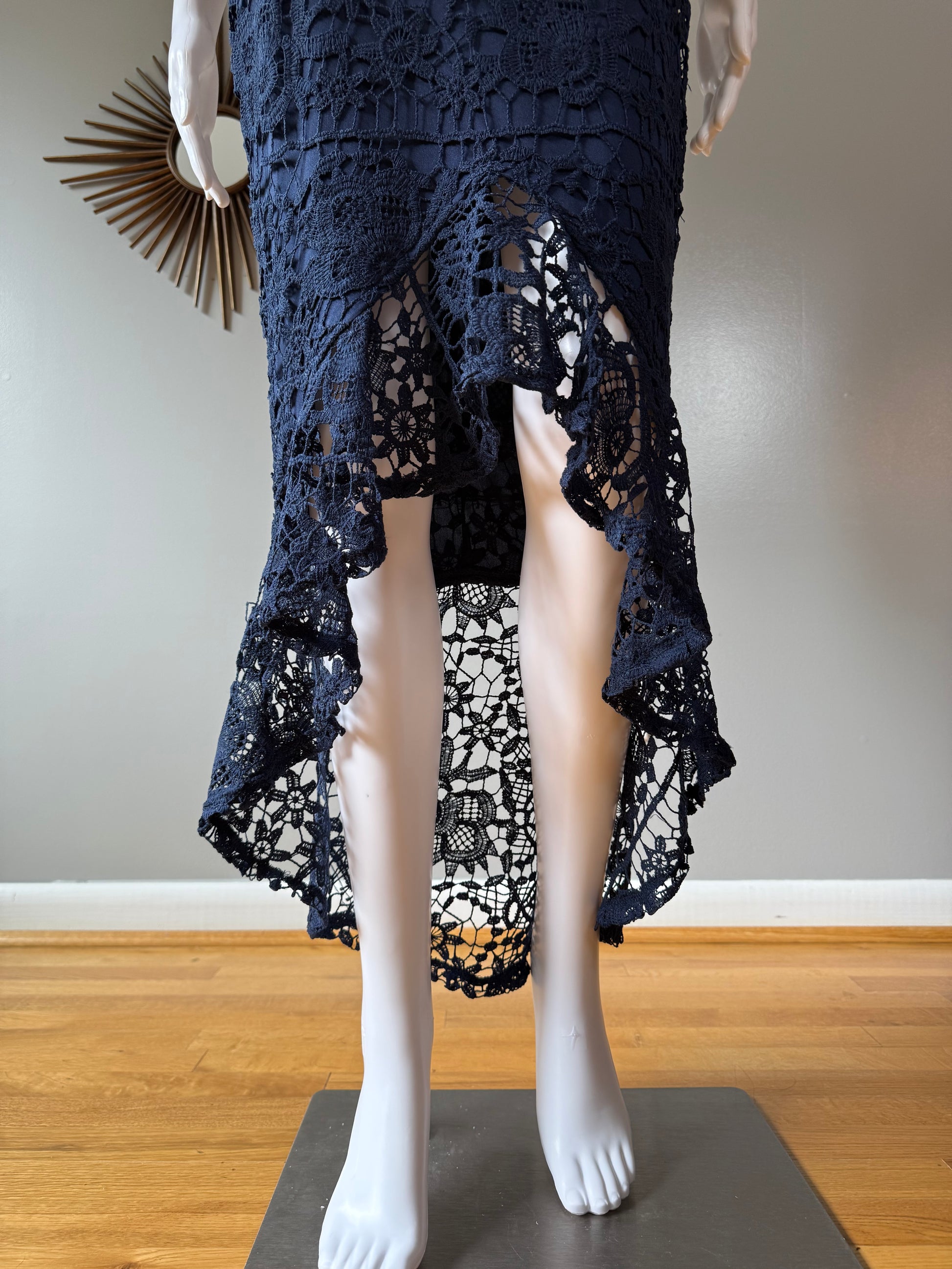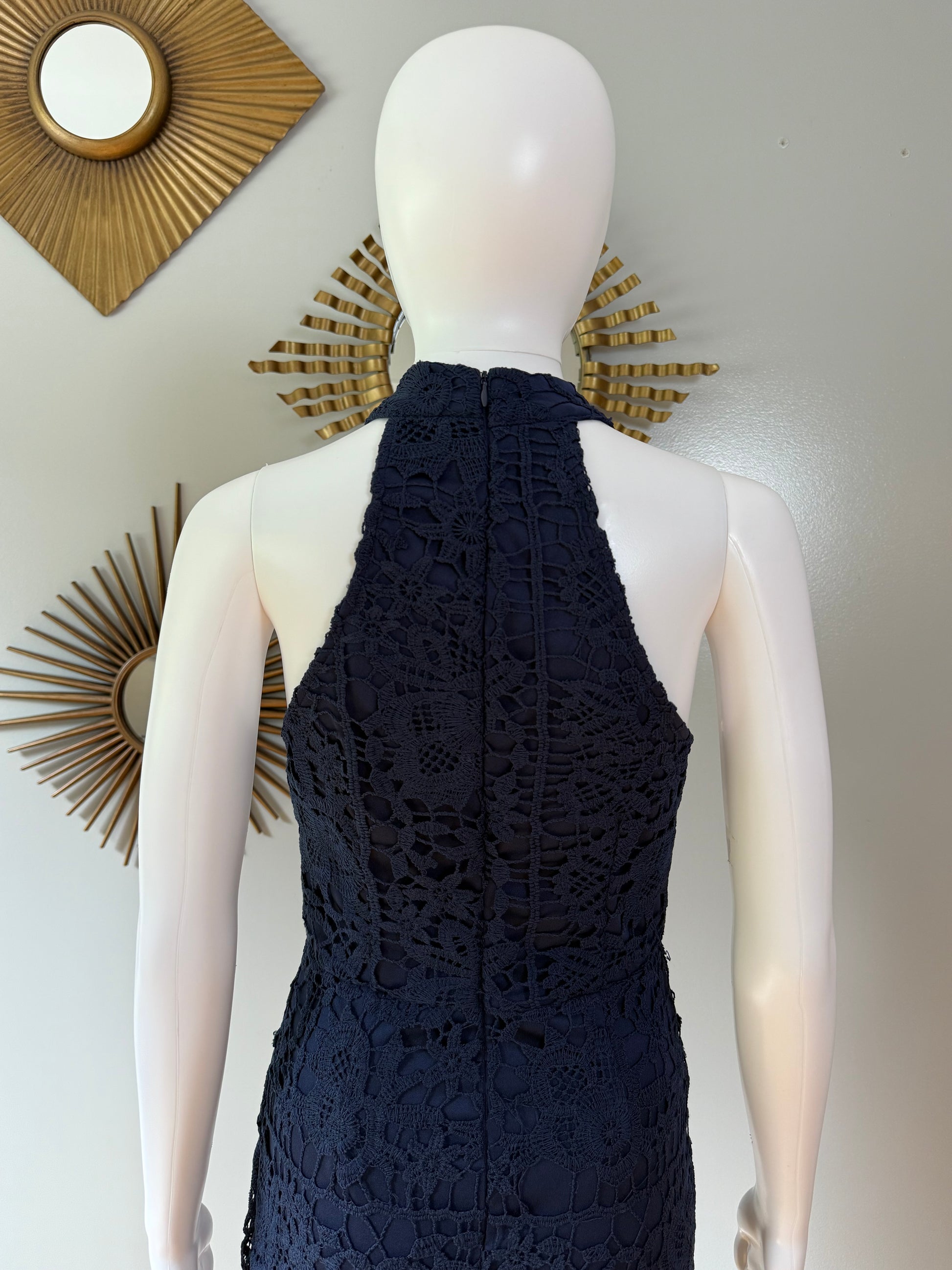 Missguided - Blue Lace High Neck Fishtail Dress