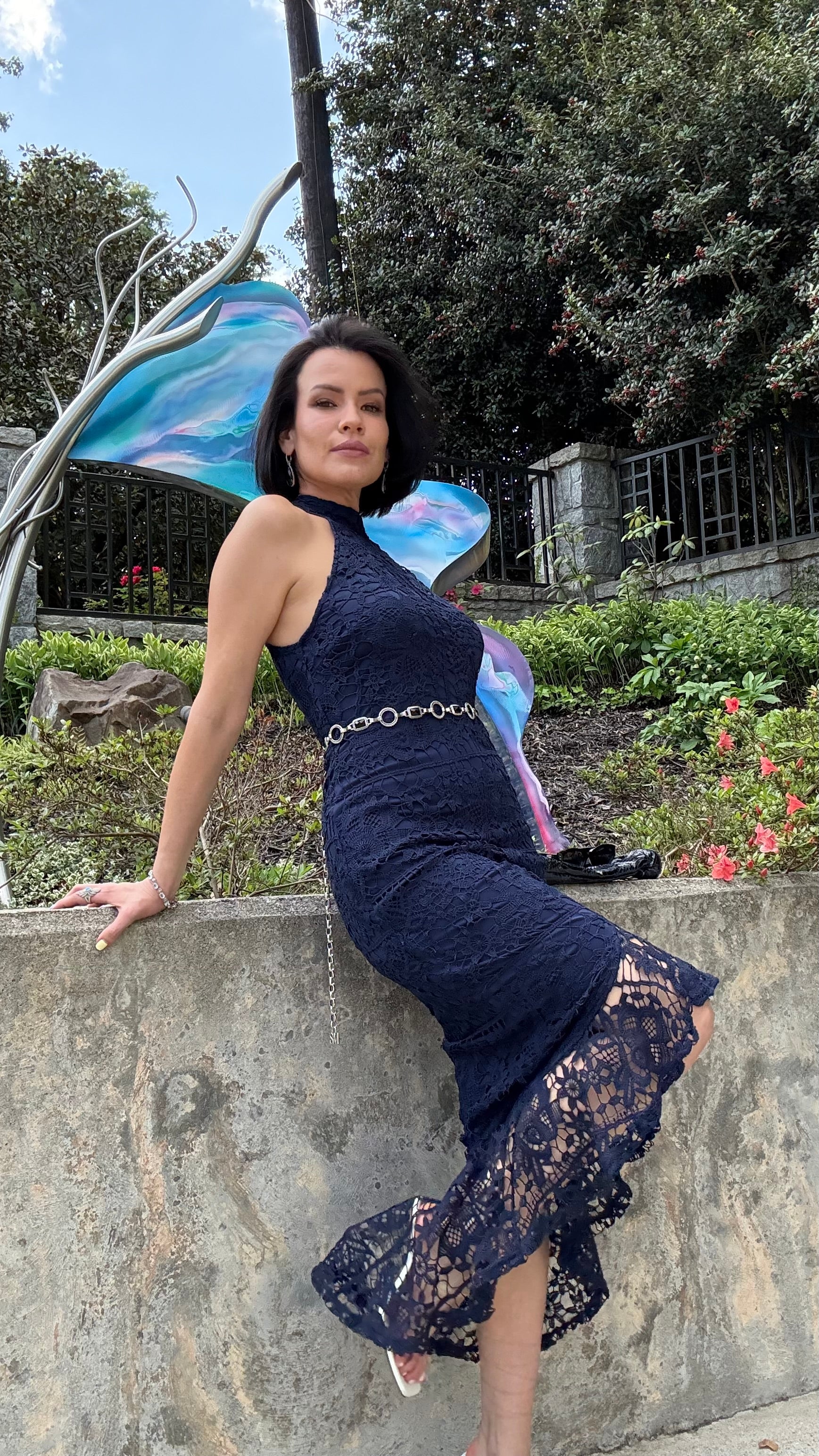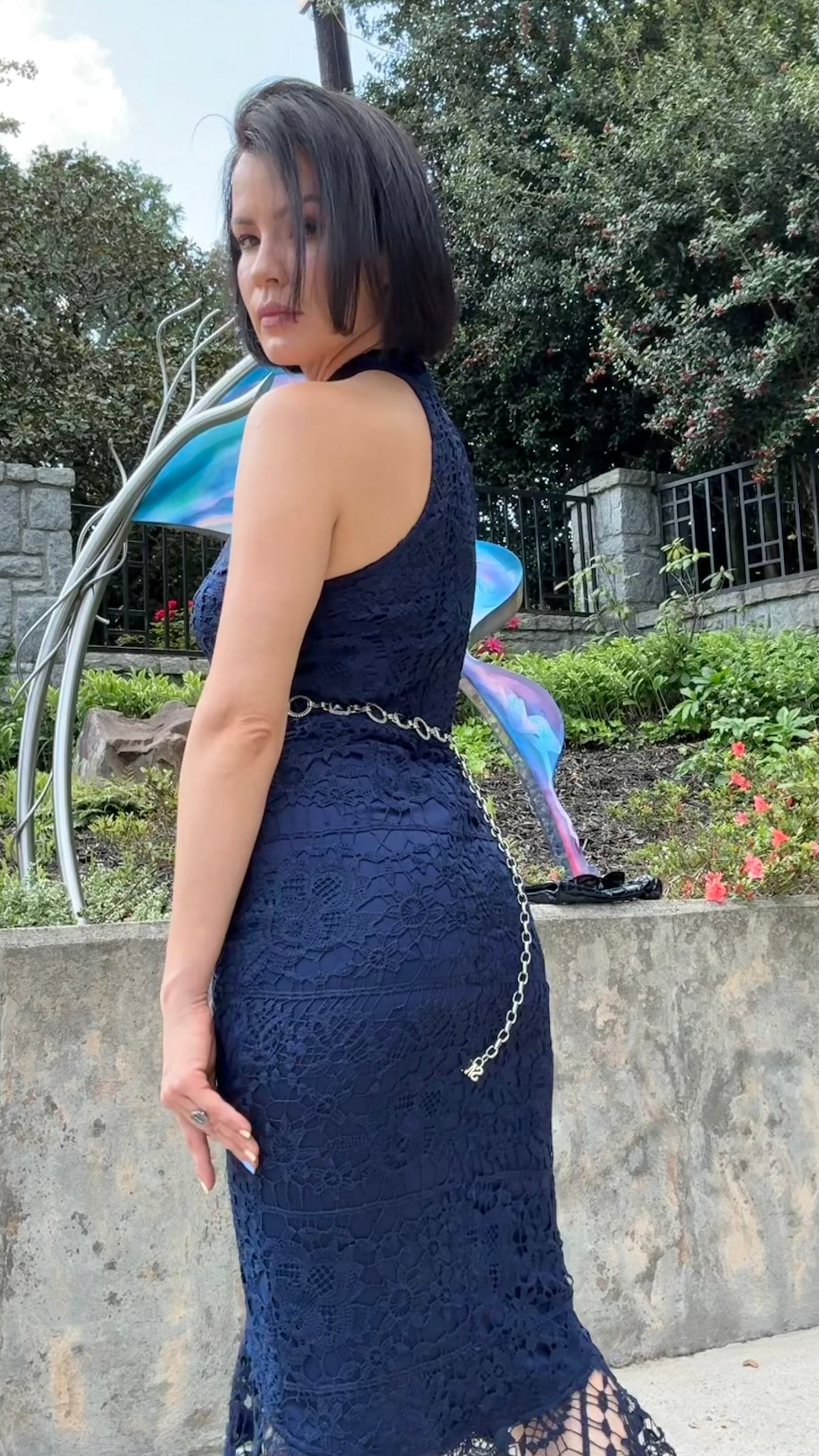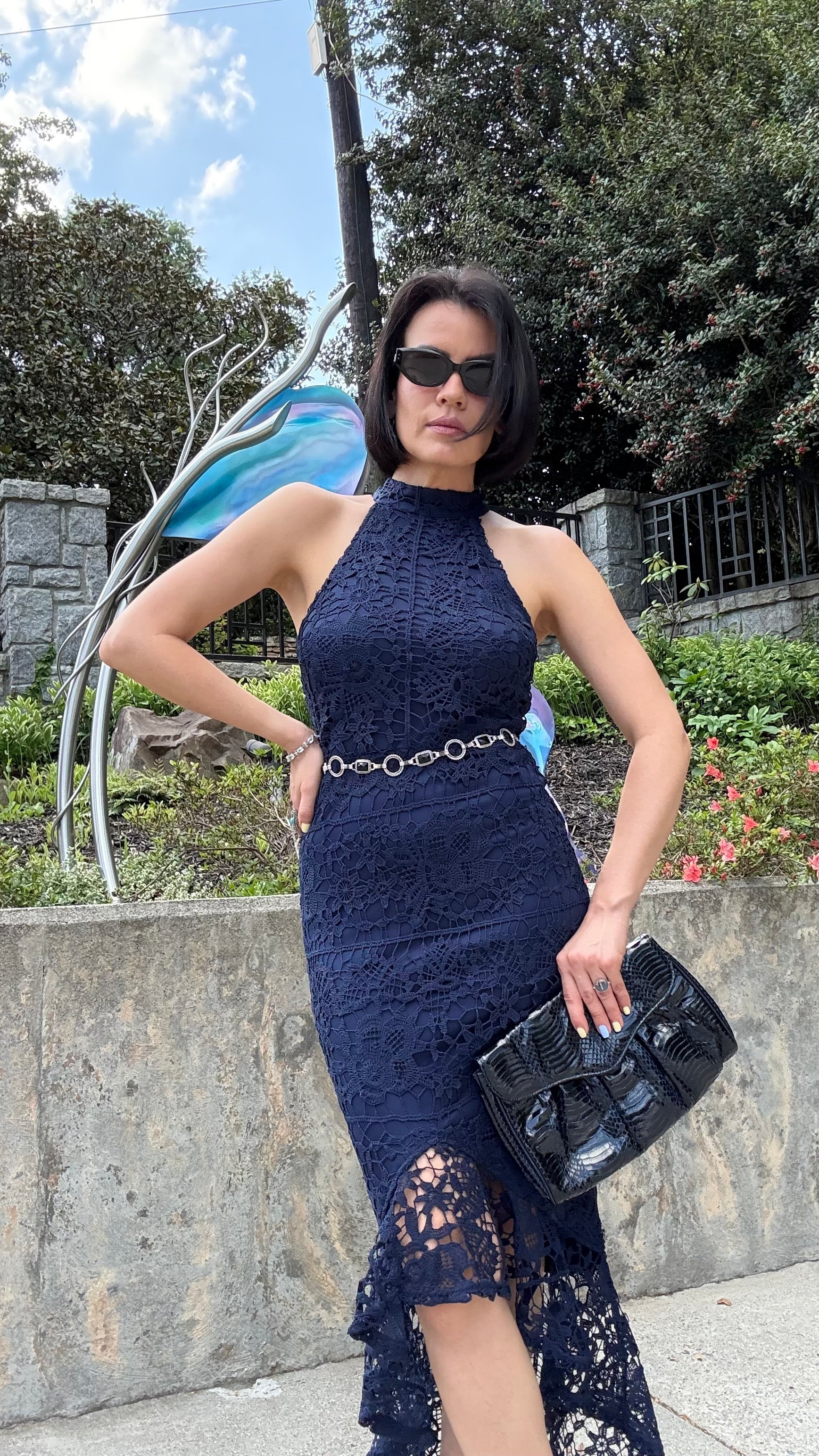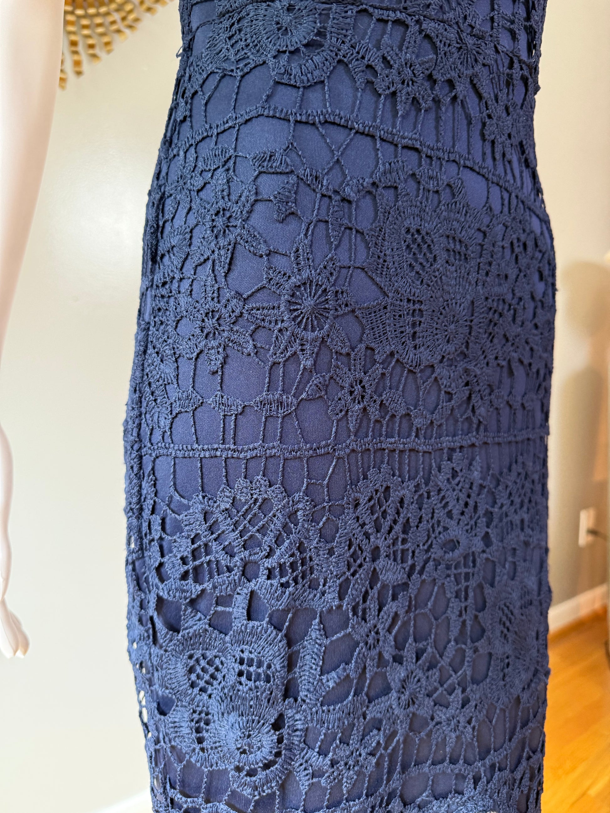 Missguided - Blue Lace High Neck Fishtail Dress