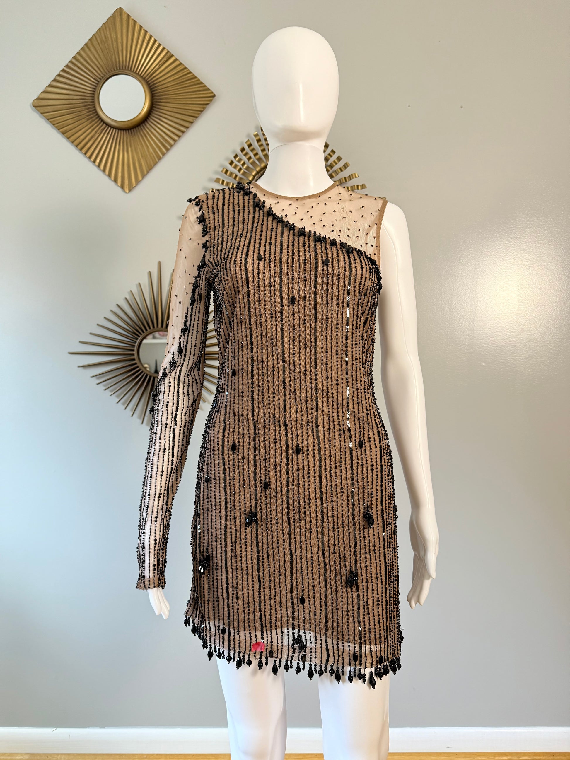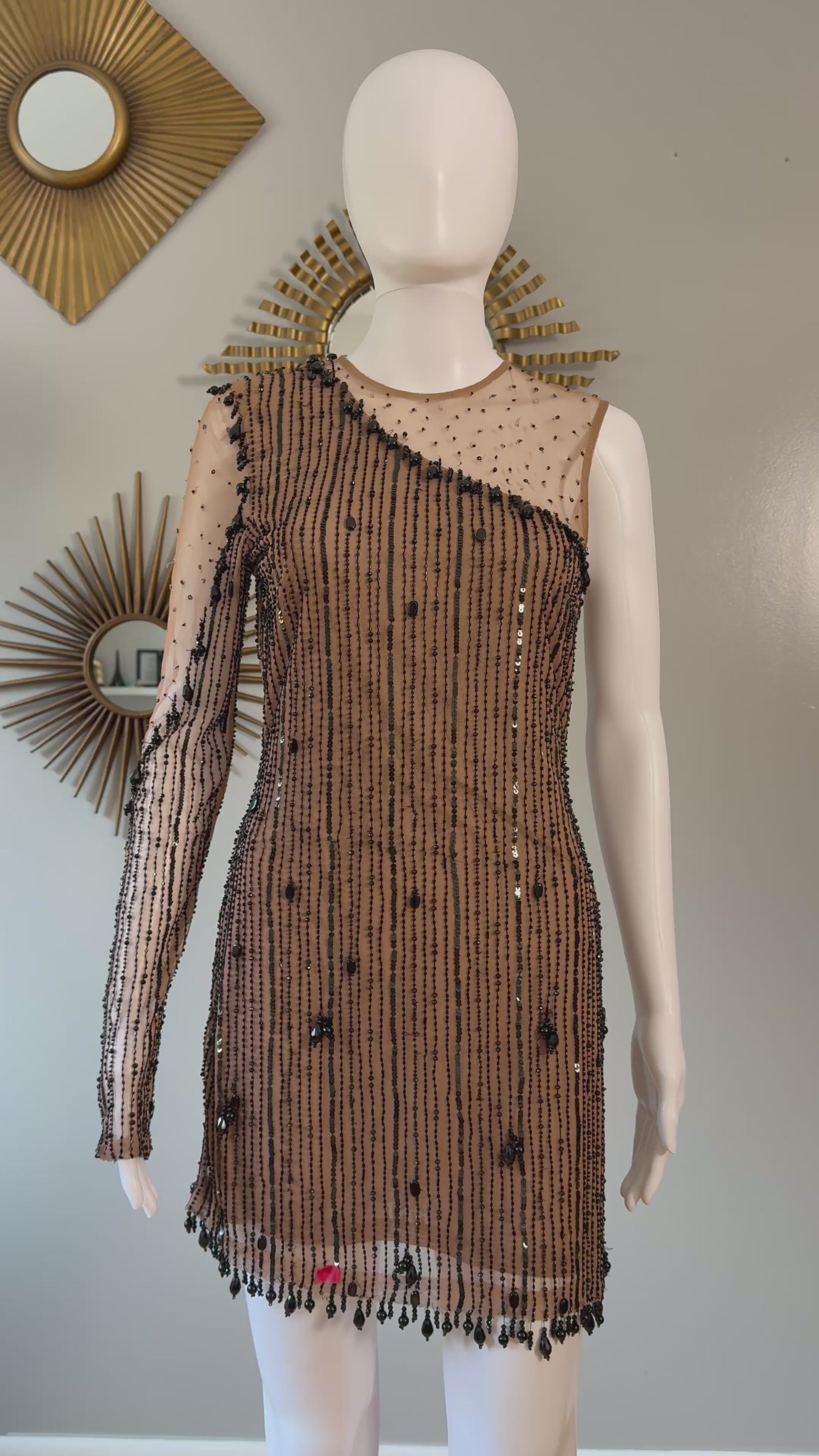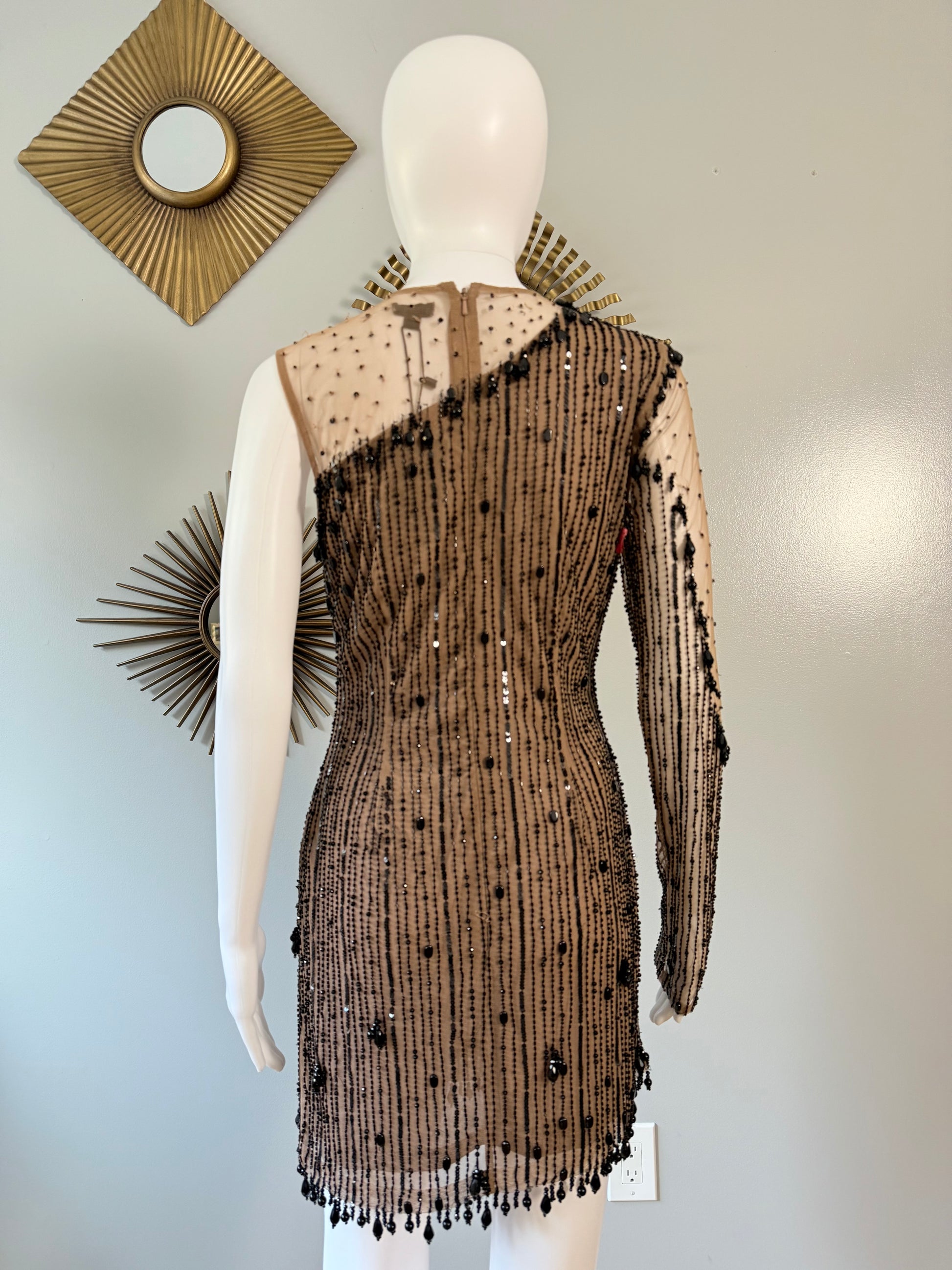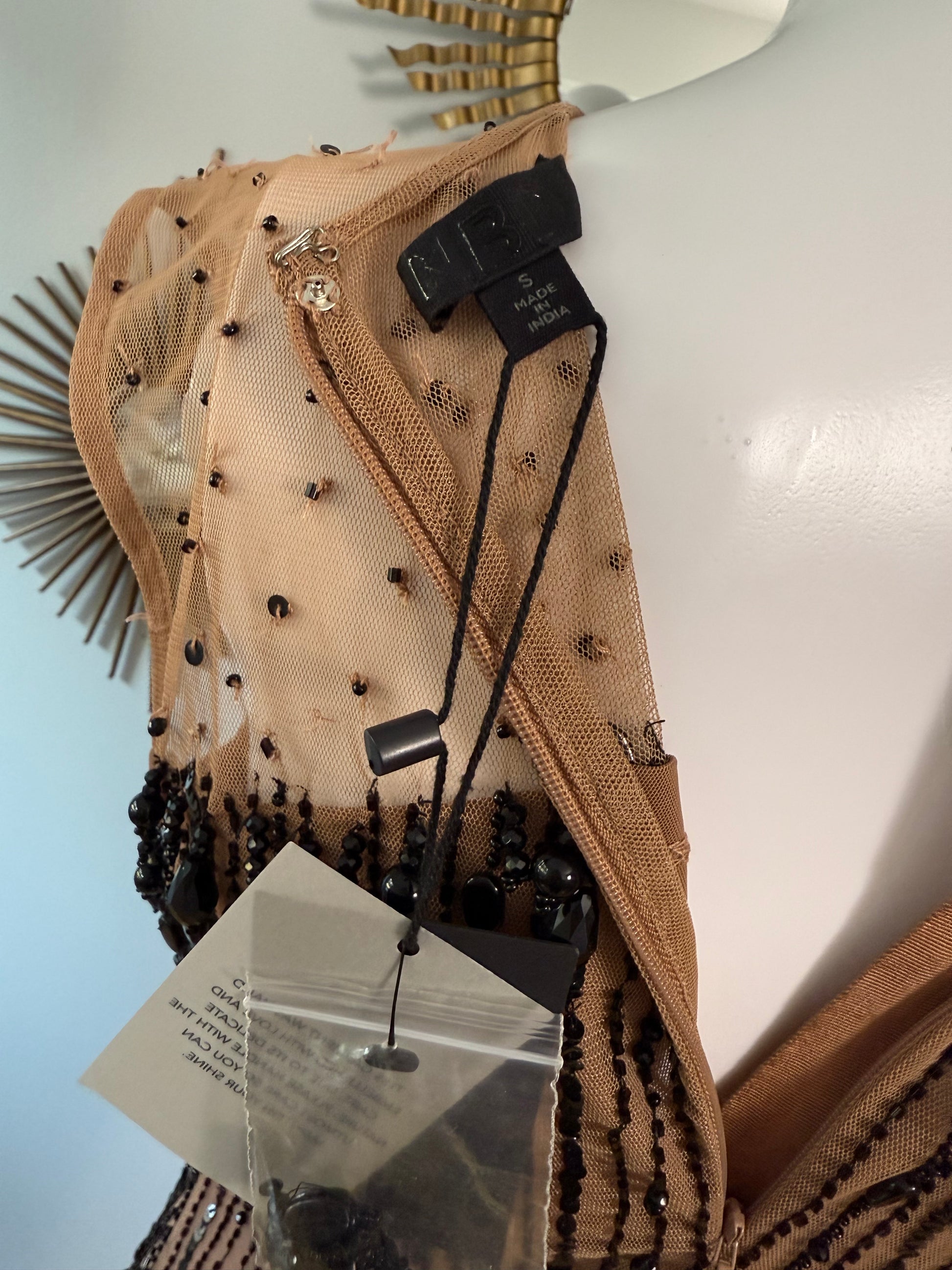 New with tags, with defects. Due to the delicate nature of the design, there are some beads loose or missing. Dress comes with extra beads for an easy fix.
