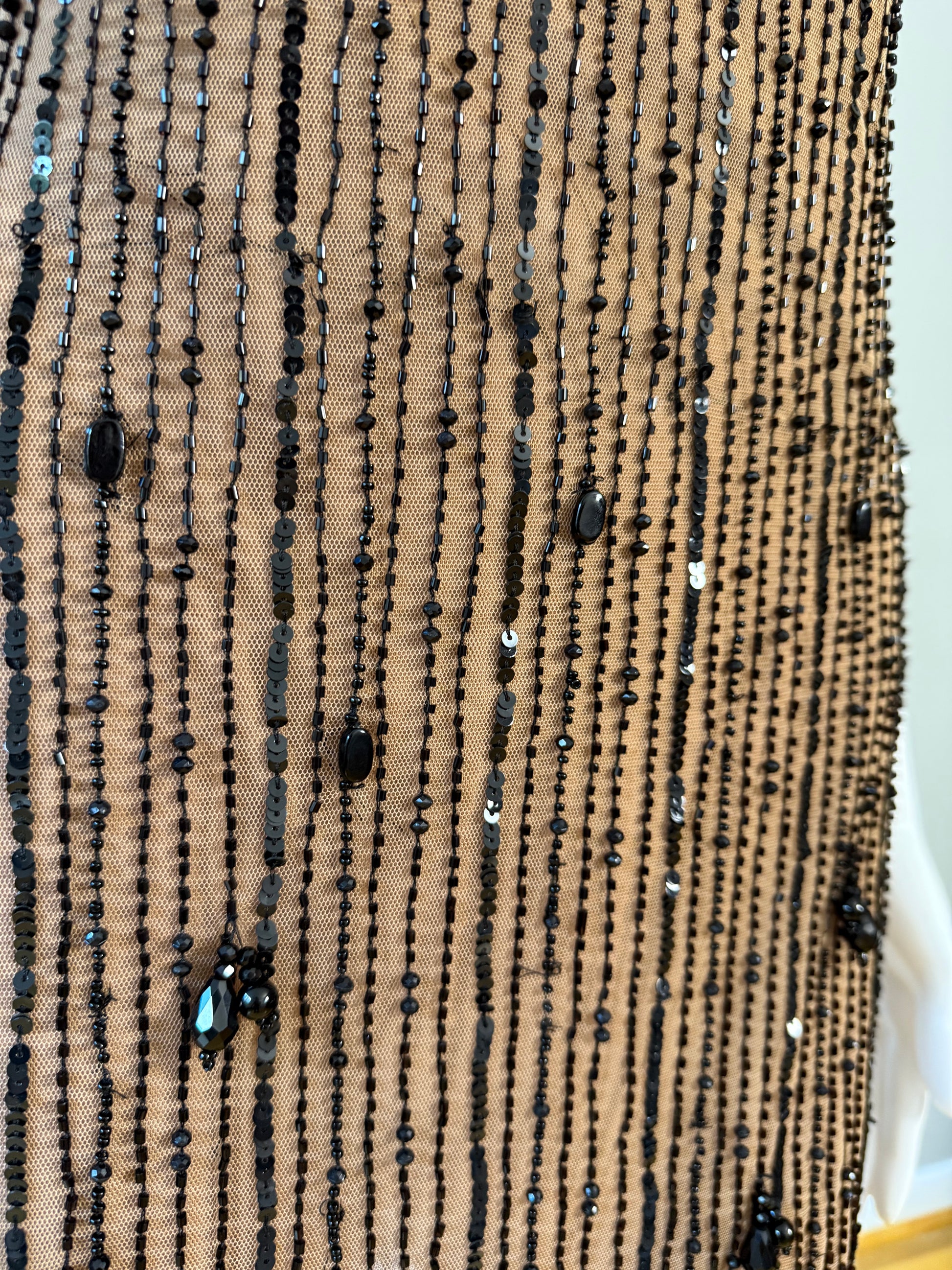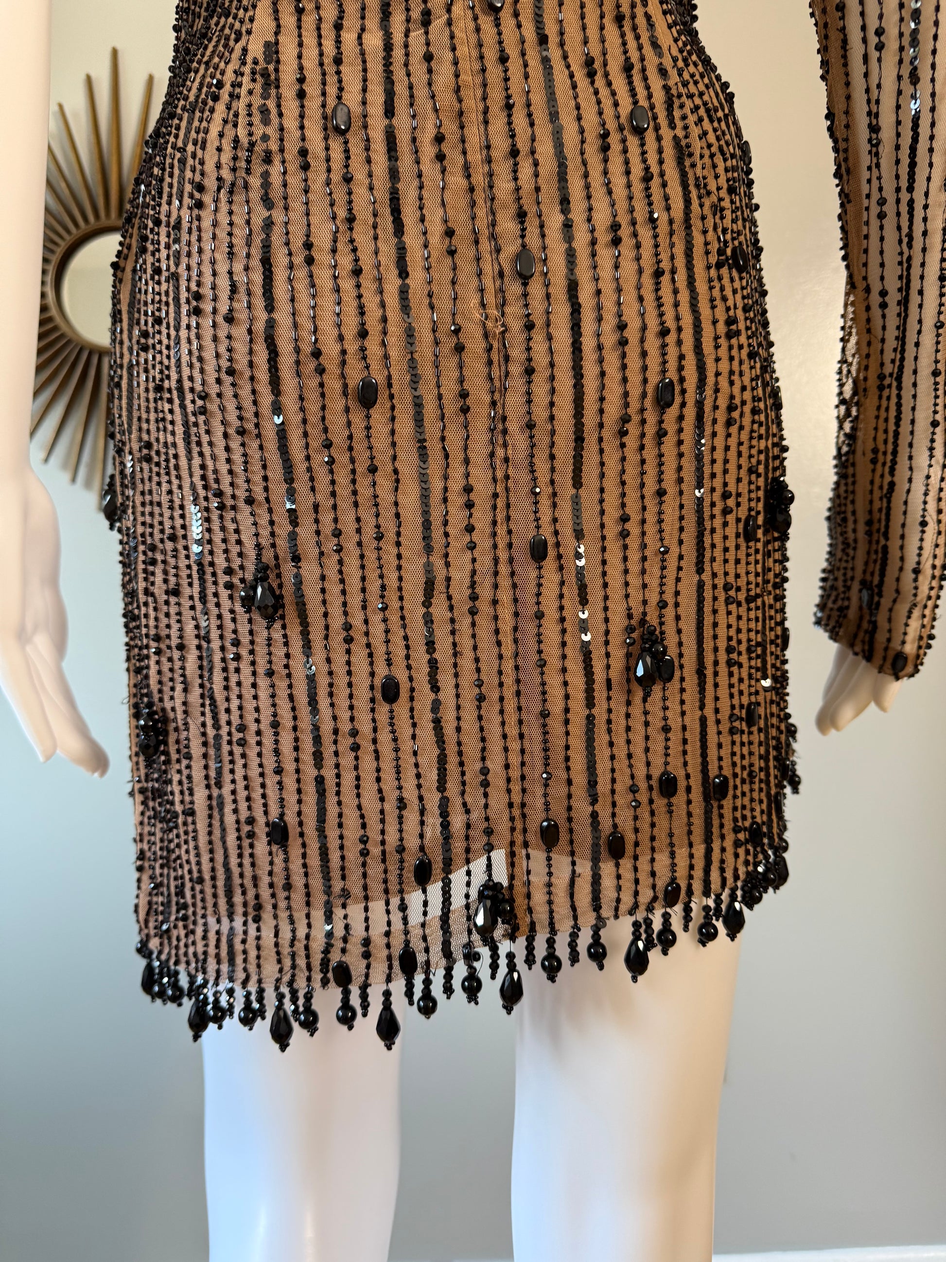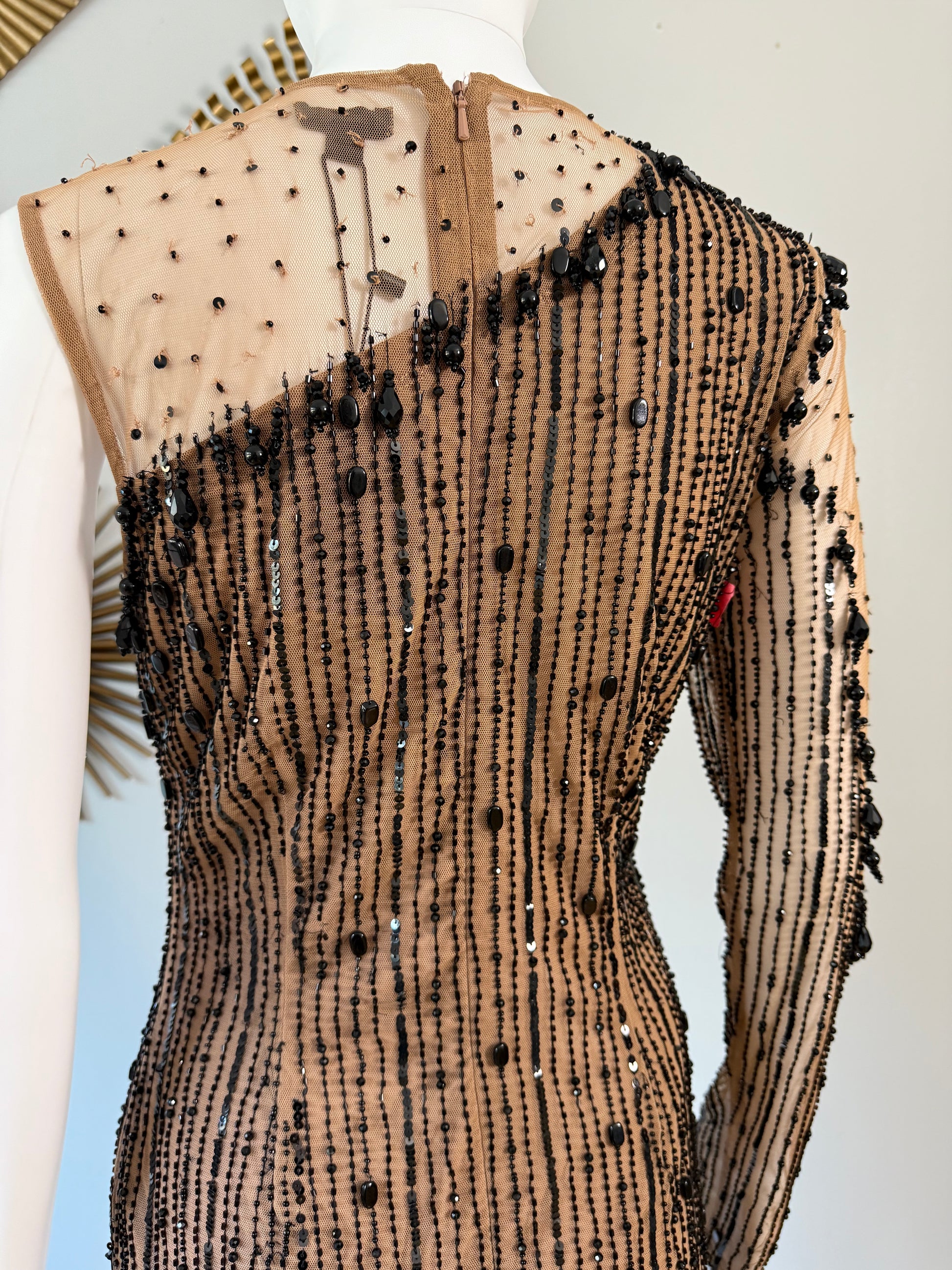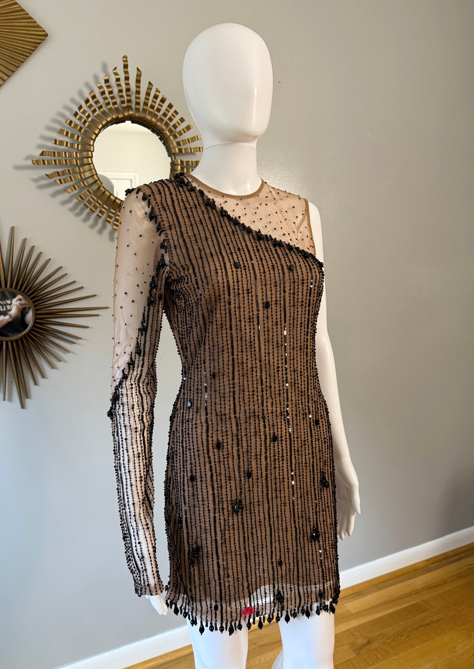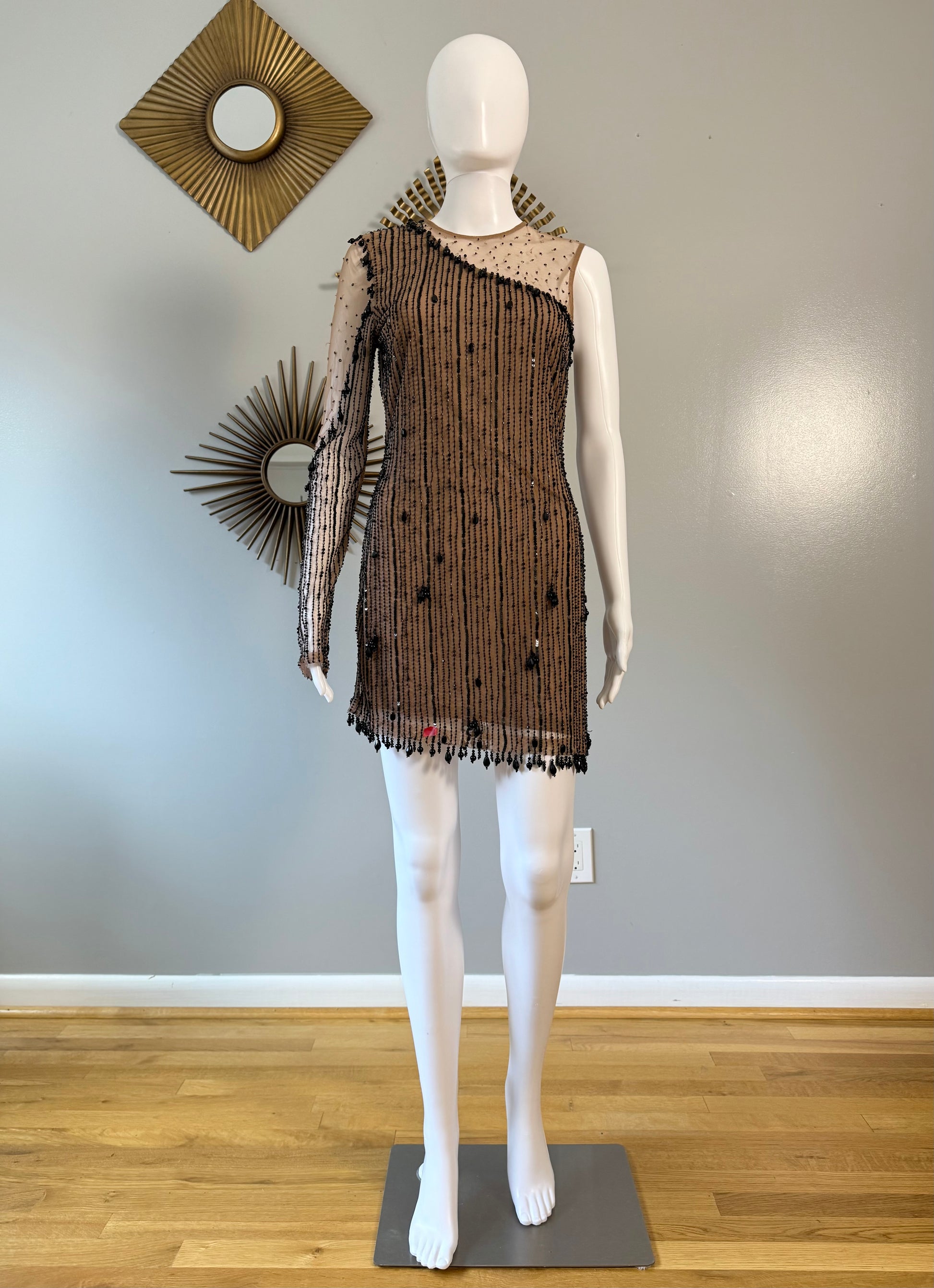 New with tags, with defects. Due to the delicate nature of the design, there are some beads loose or missing. Dress comes with extra beads for an easy fix.