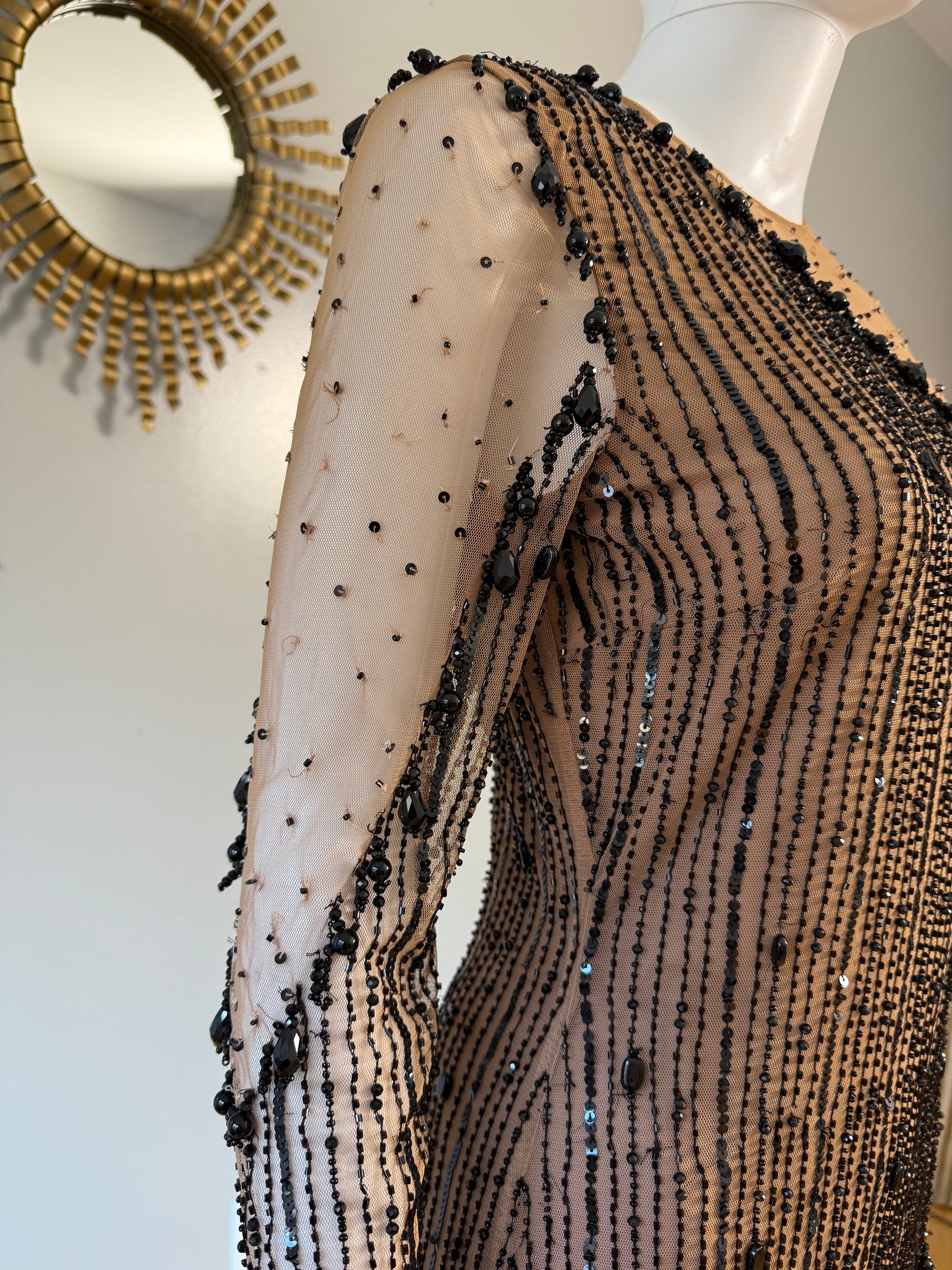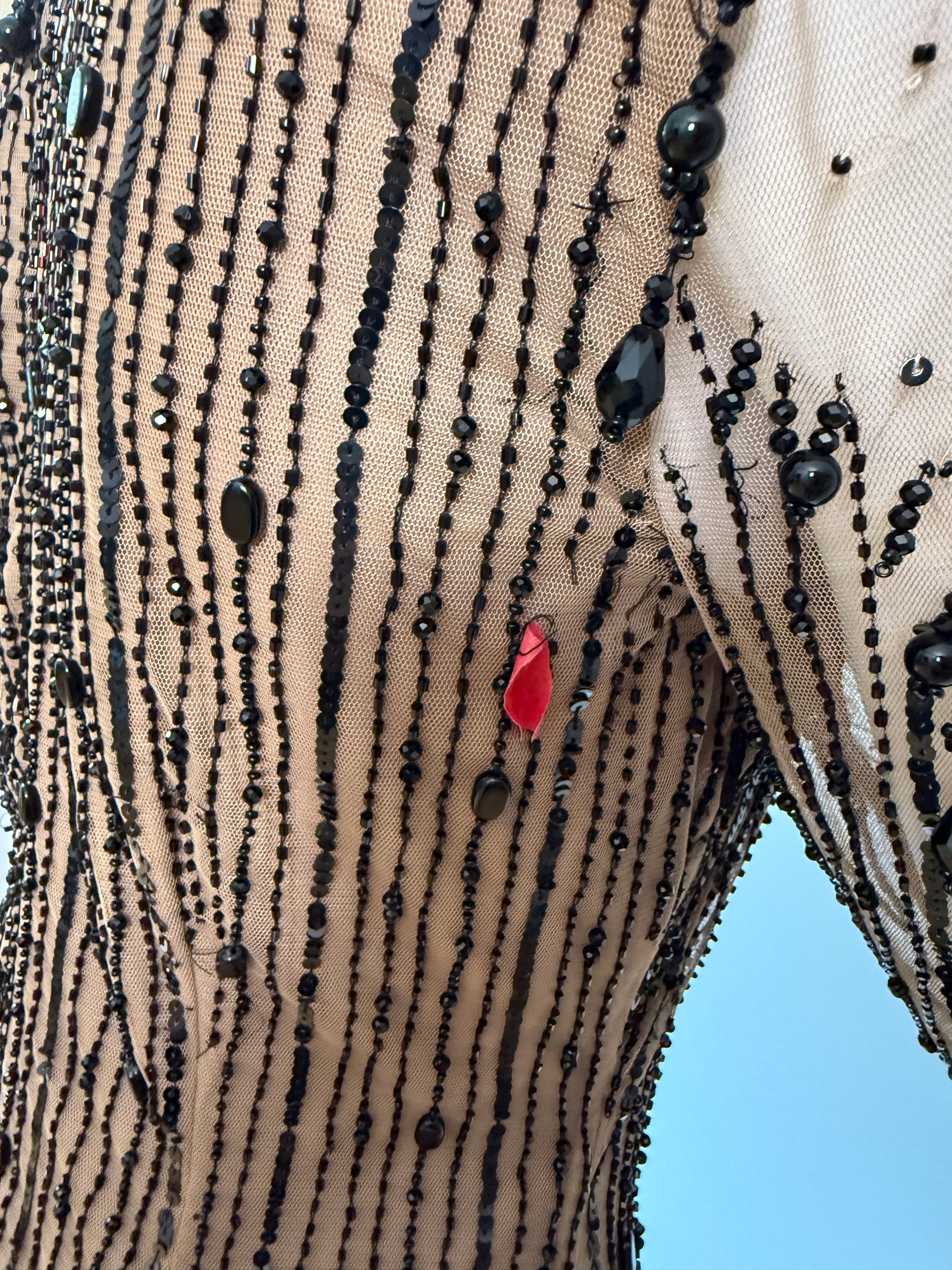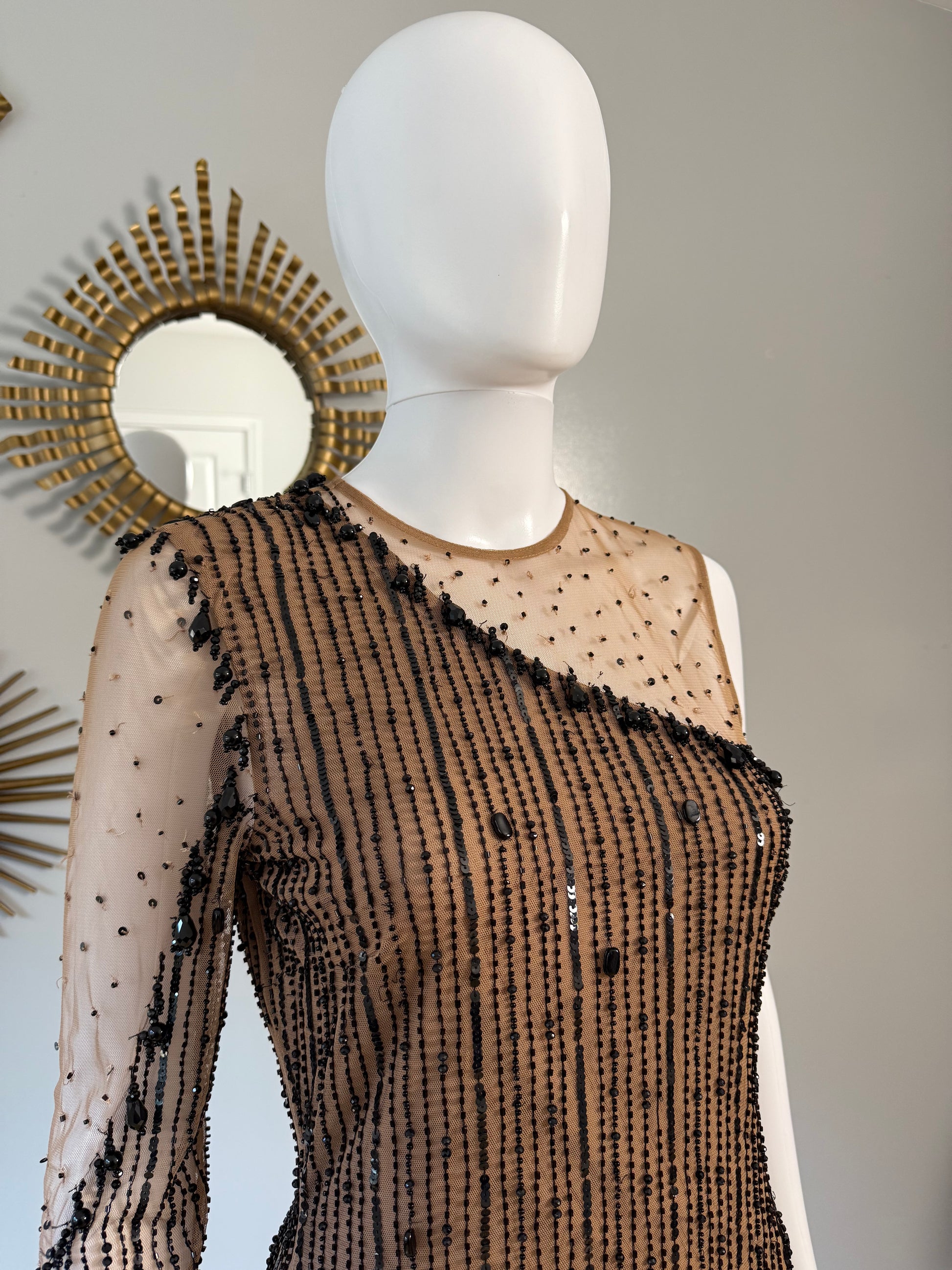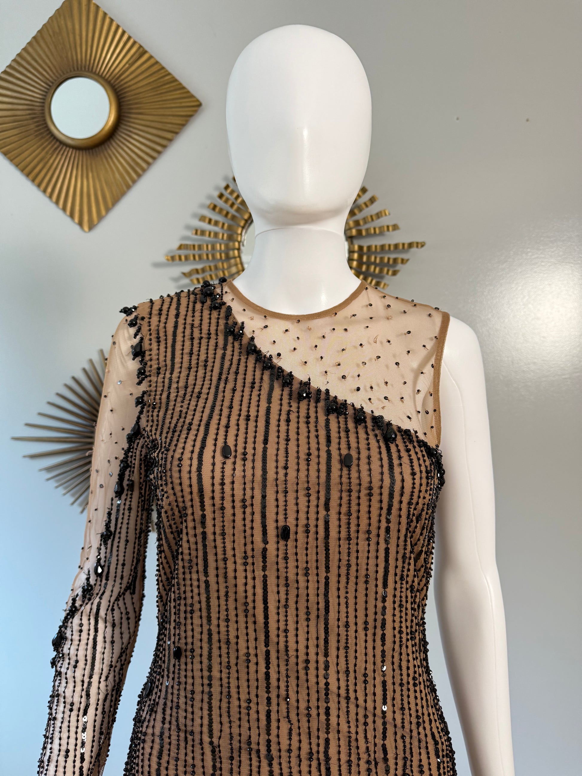 New with tags, with defects. Due to the delicate nature of the design, there are some beads loose or missing. Dress comes with extra beads for an easy fix.