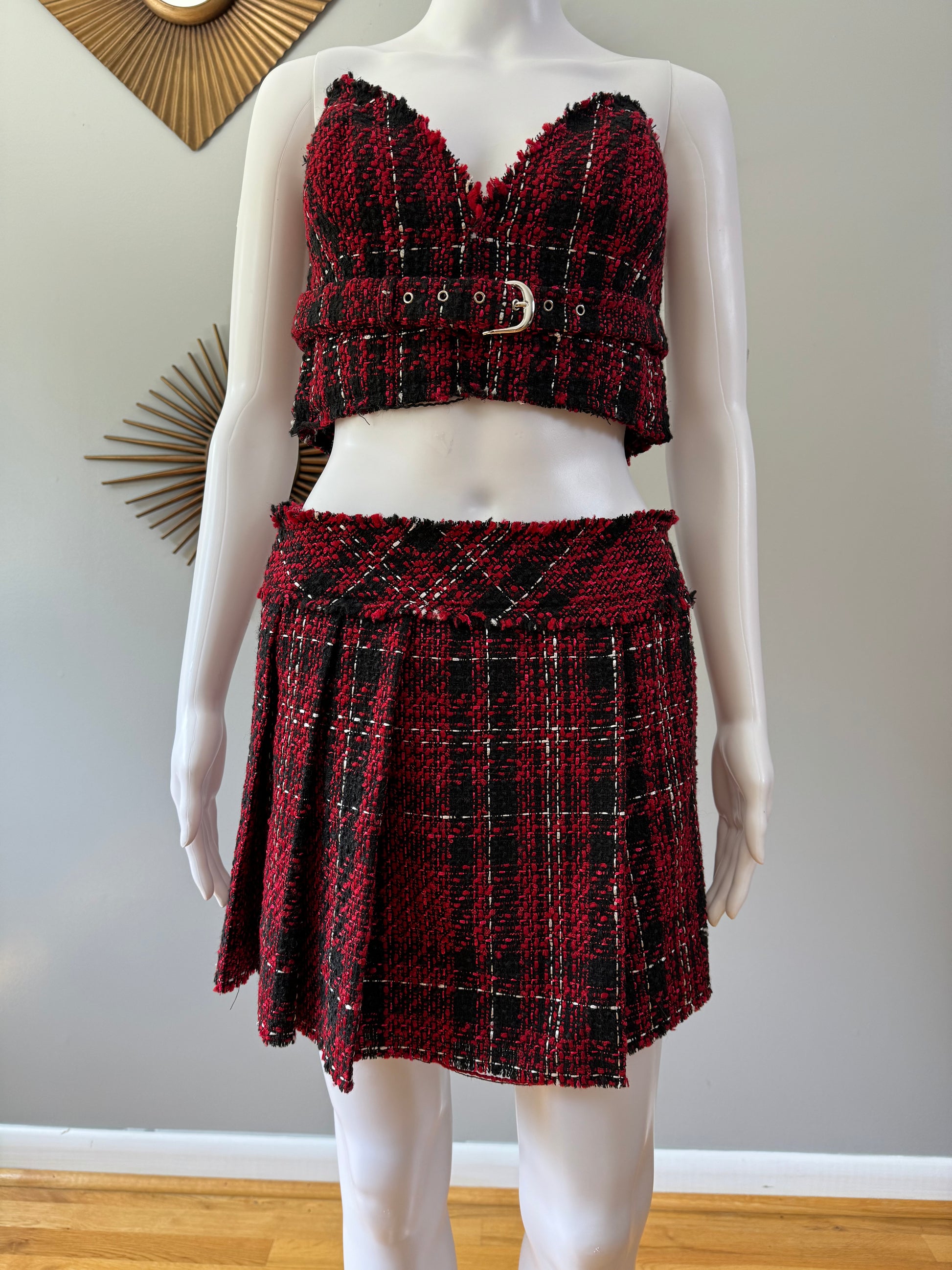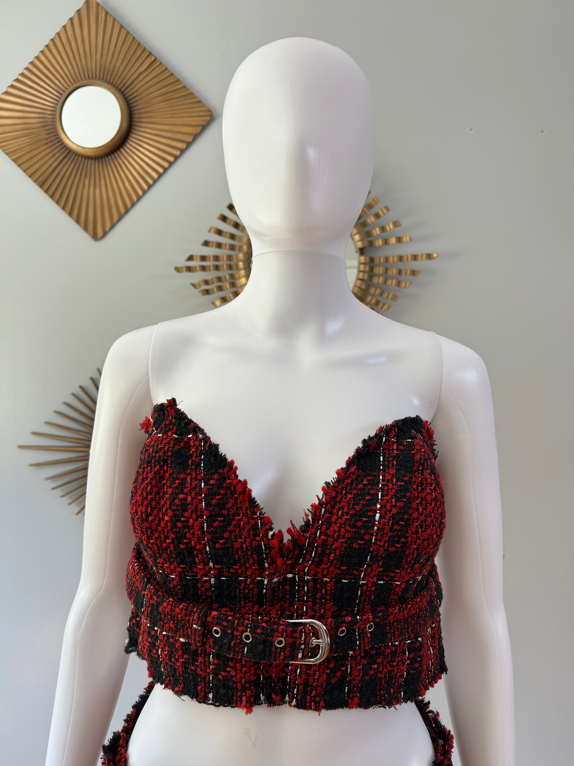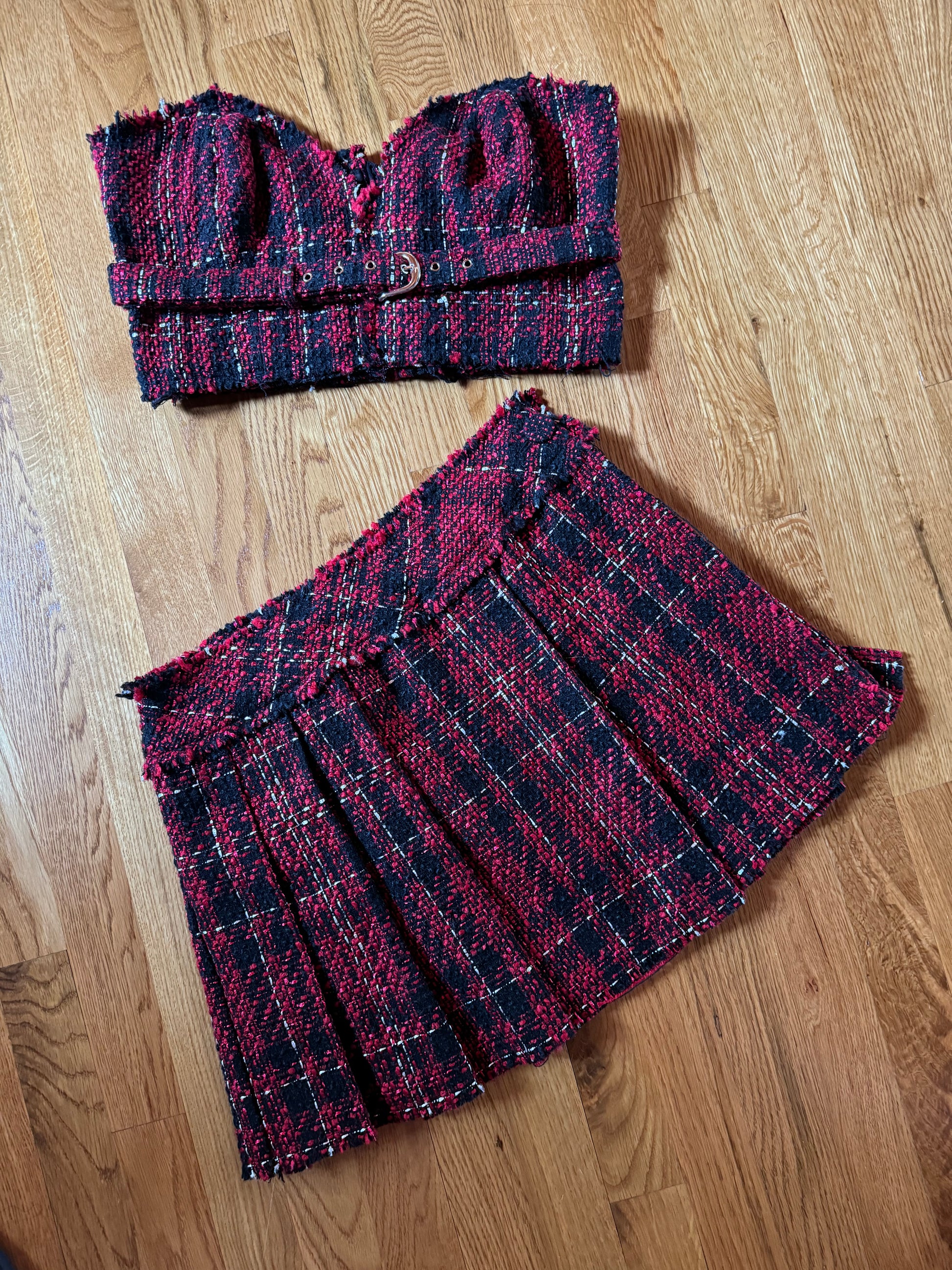 NBD - Red/Black Saffi Bustier & Mini Skirt Set