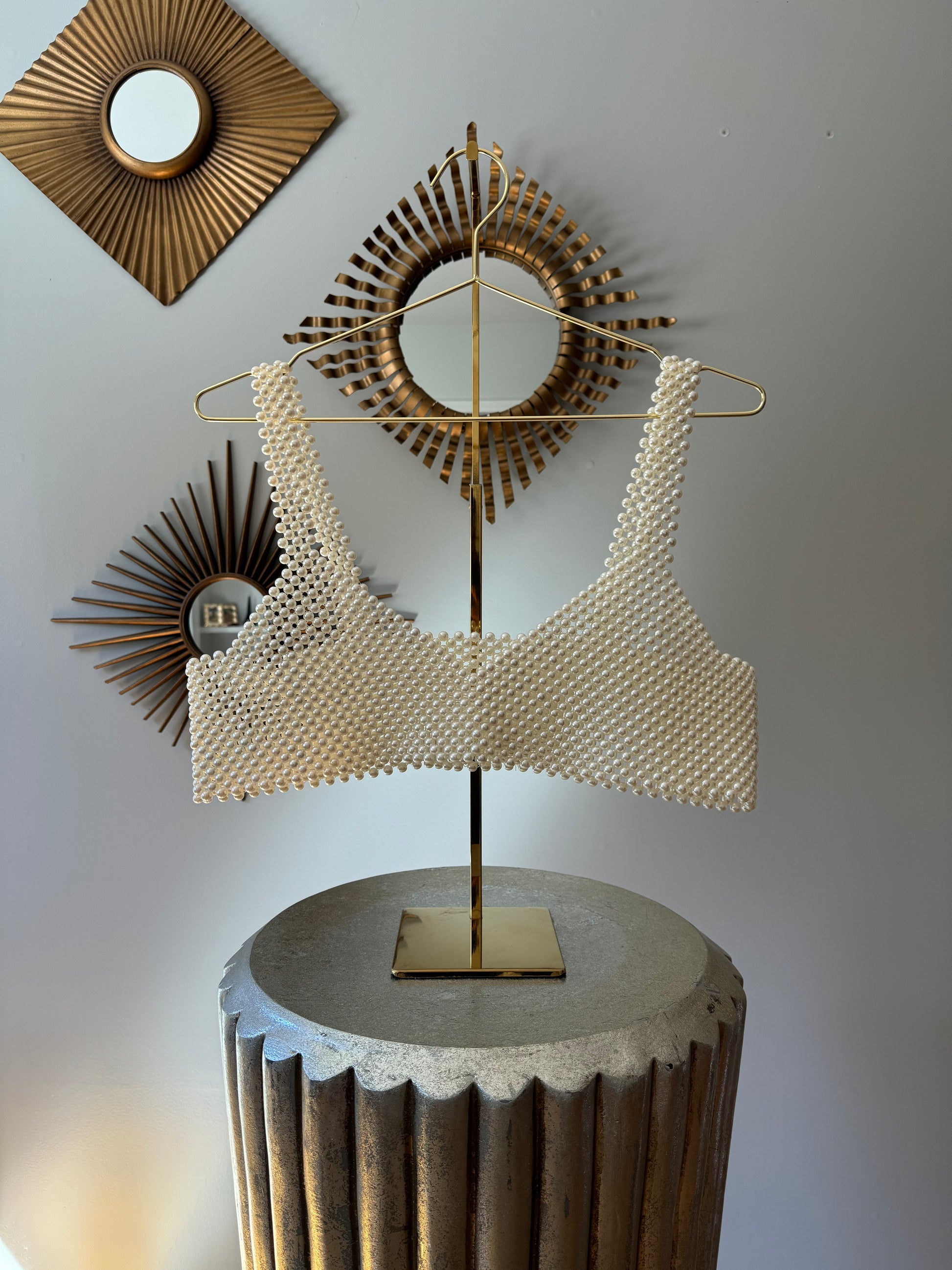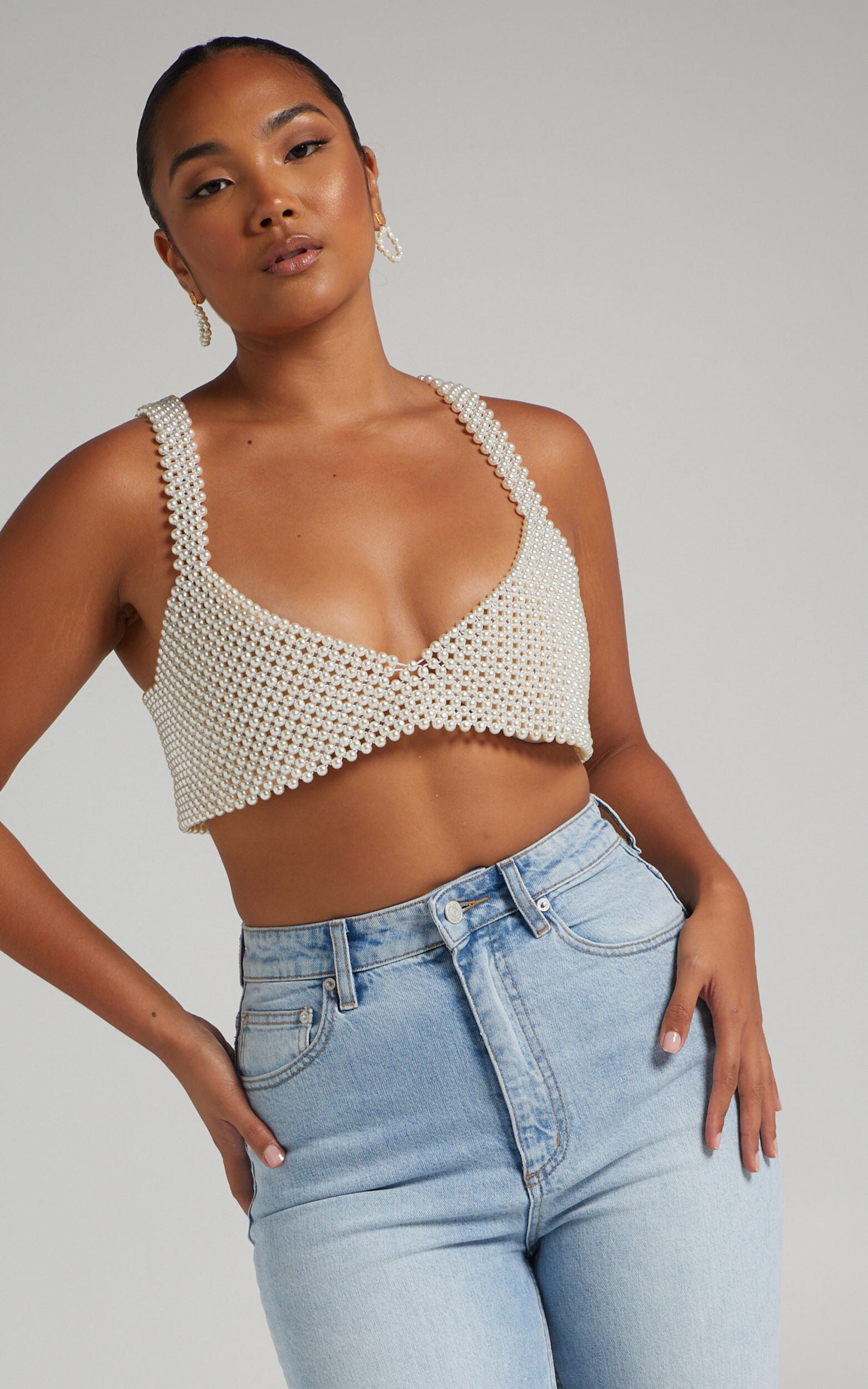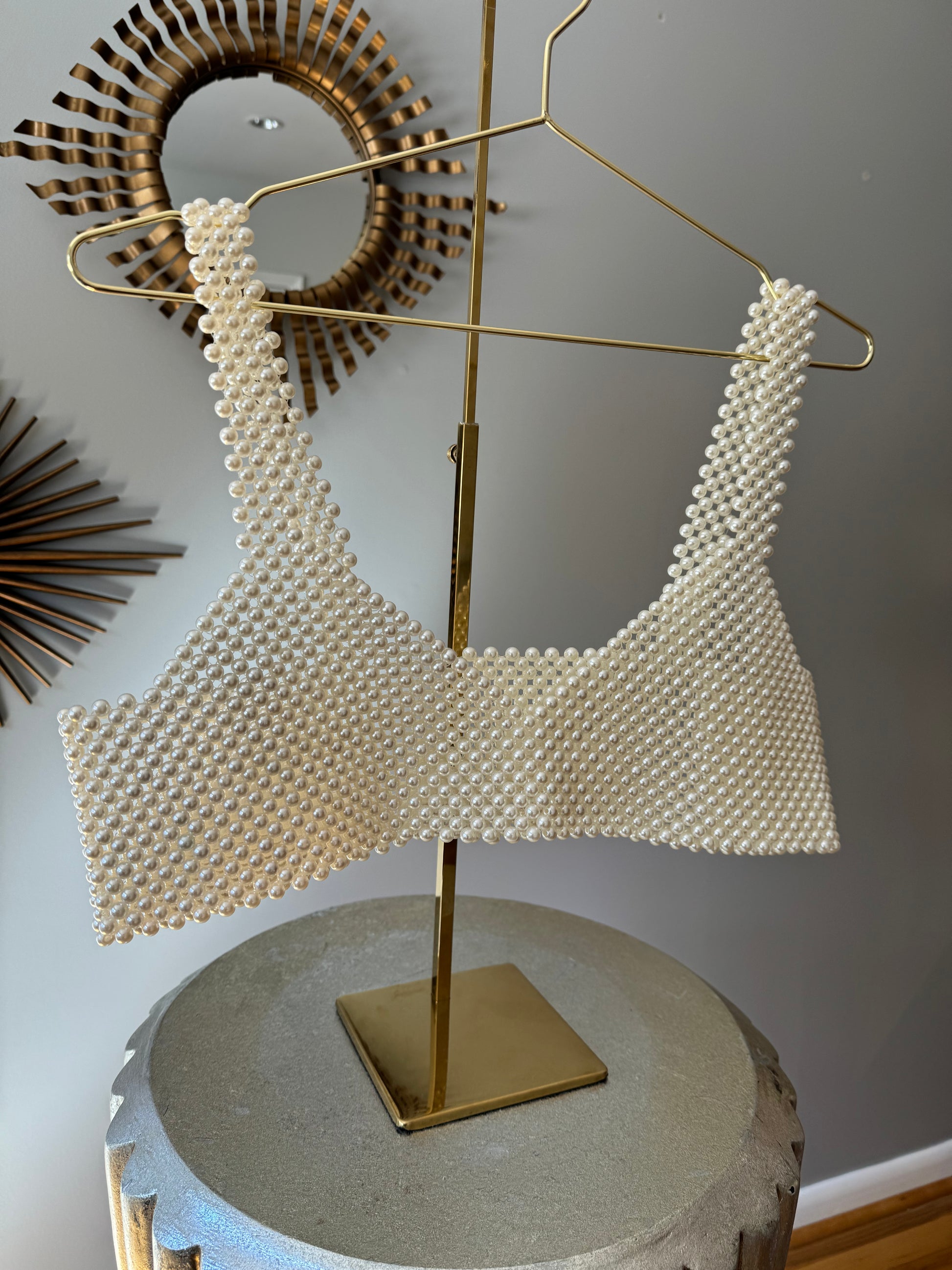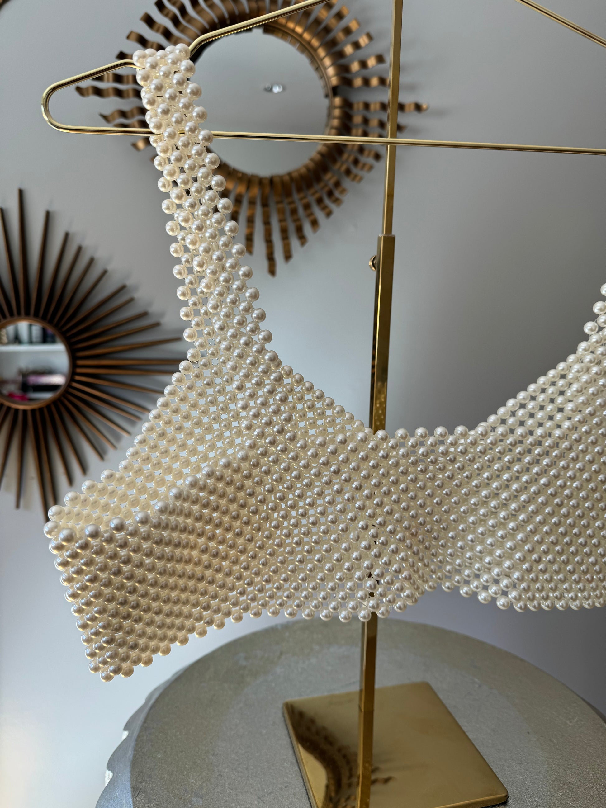 Eleva tu estilo con nuestro Crop Top Pearl. Confeccionado con impresionantes perlas artificiales, este top corto añade un toque de sofisticación a cualquier conjunto.