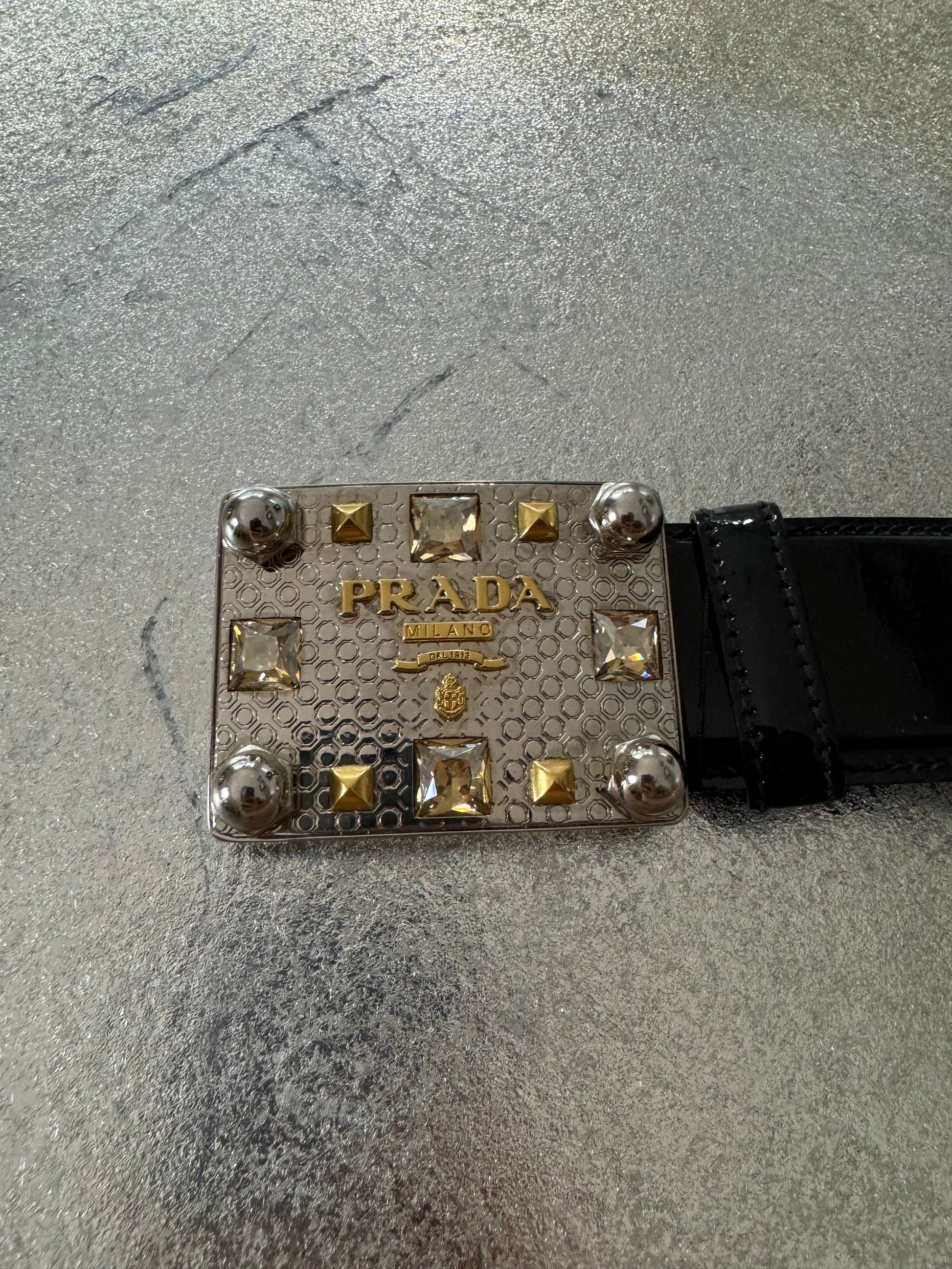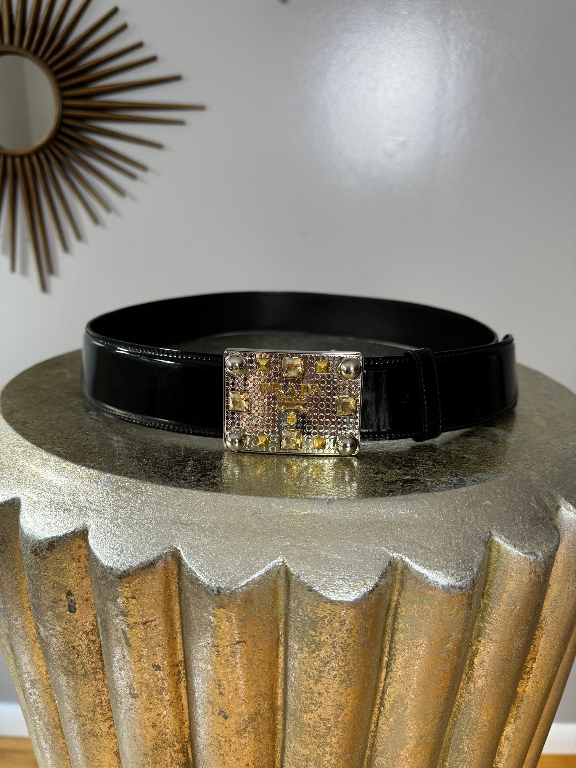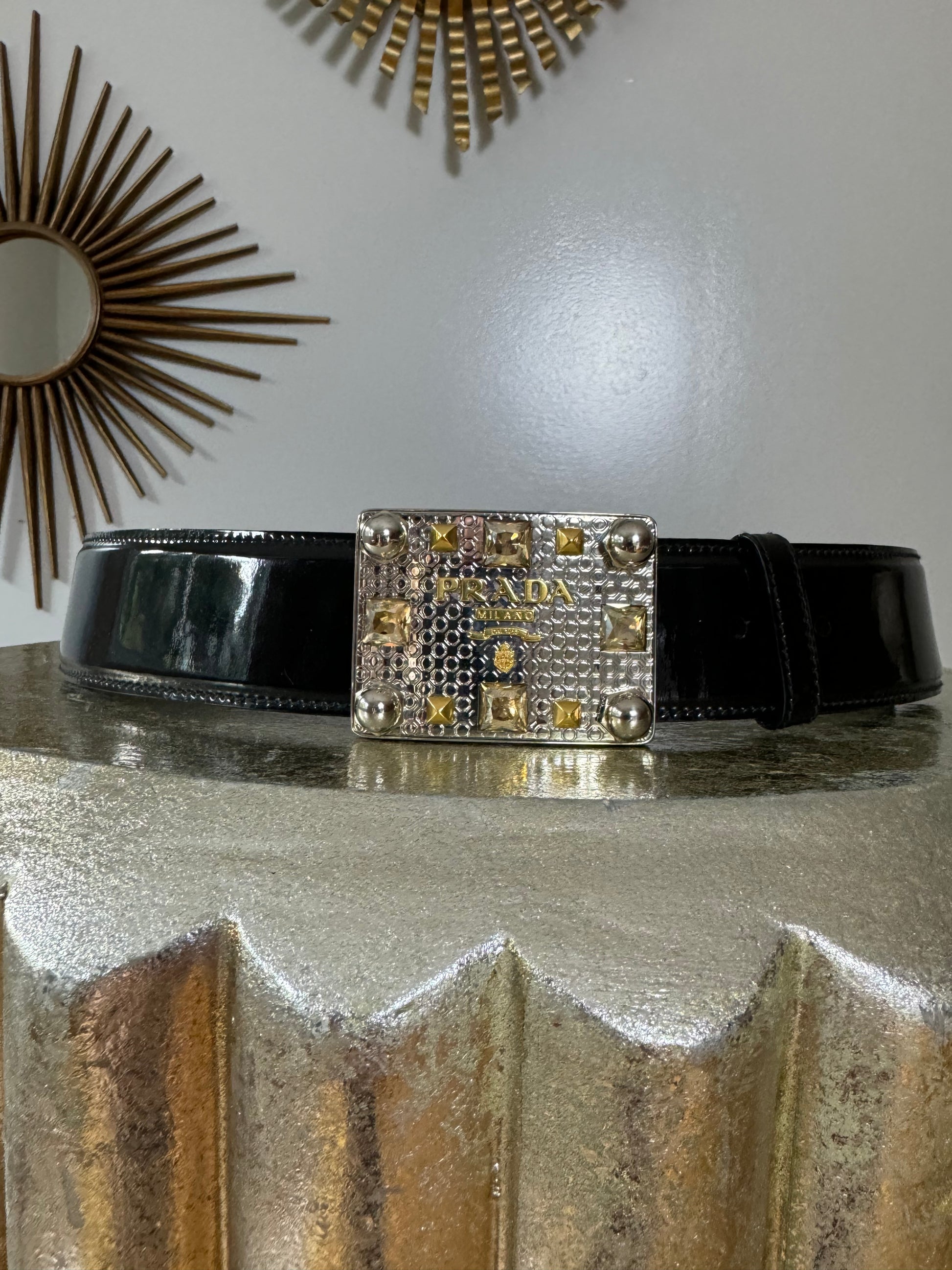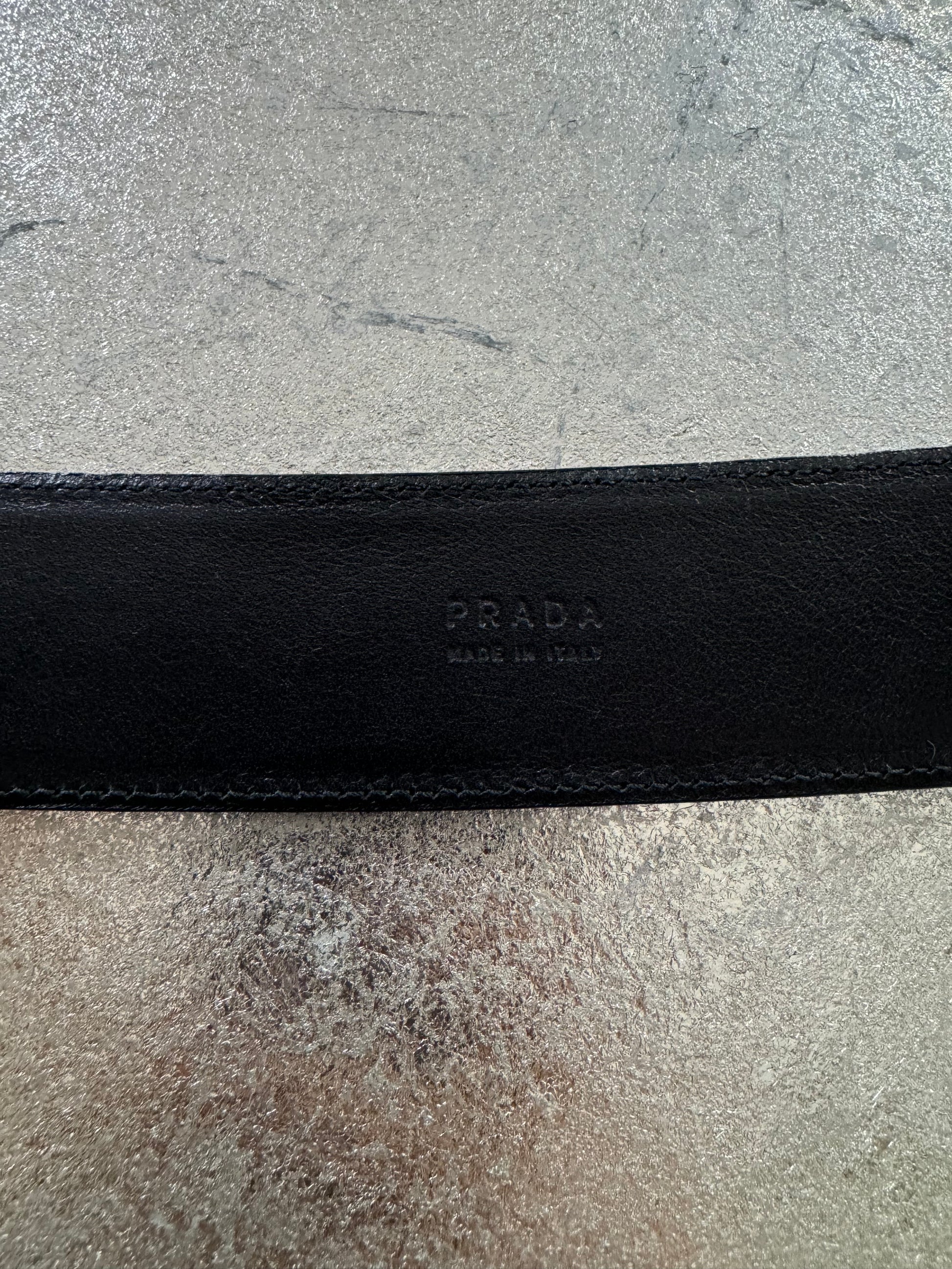 PRADA - Black Patent Leather Belt w/ Silver Square Buckle