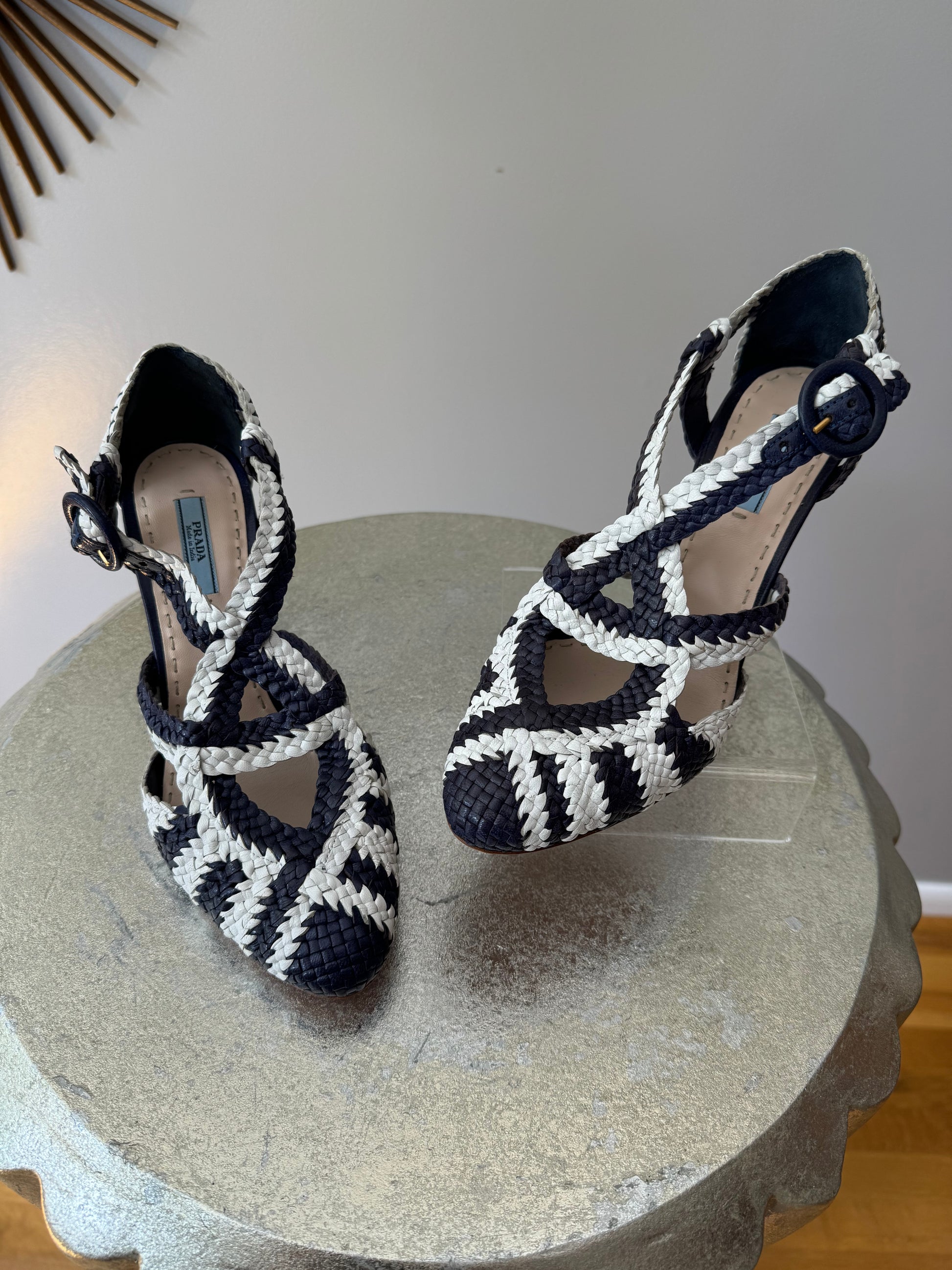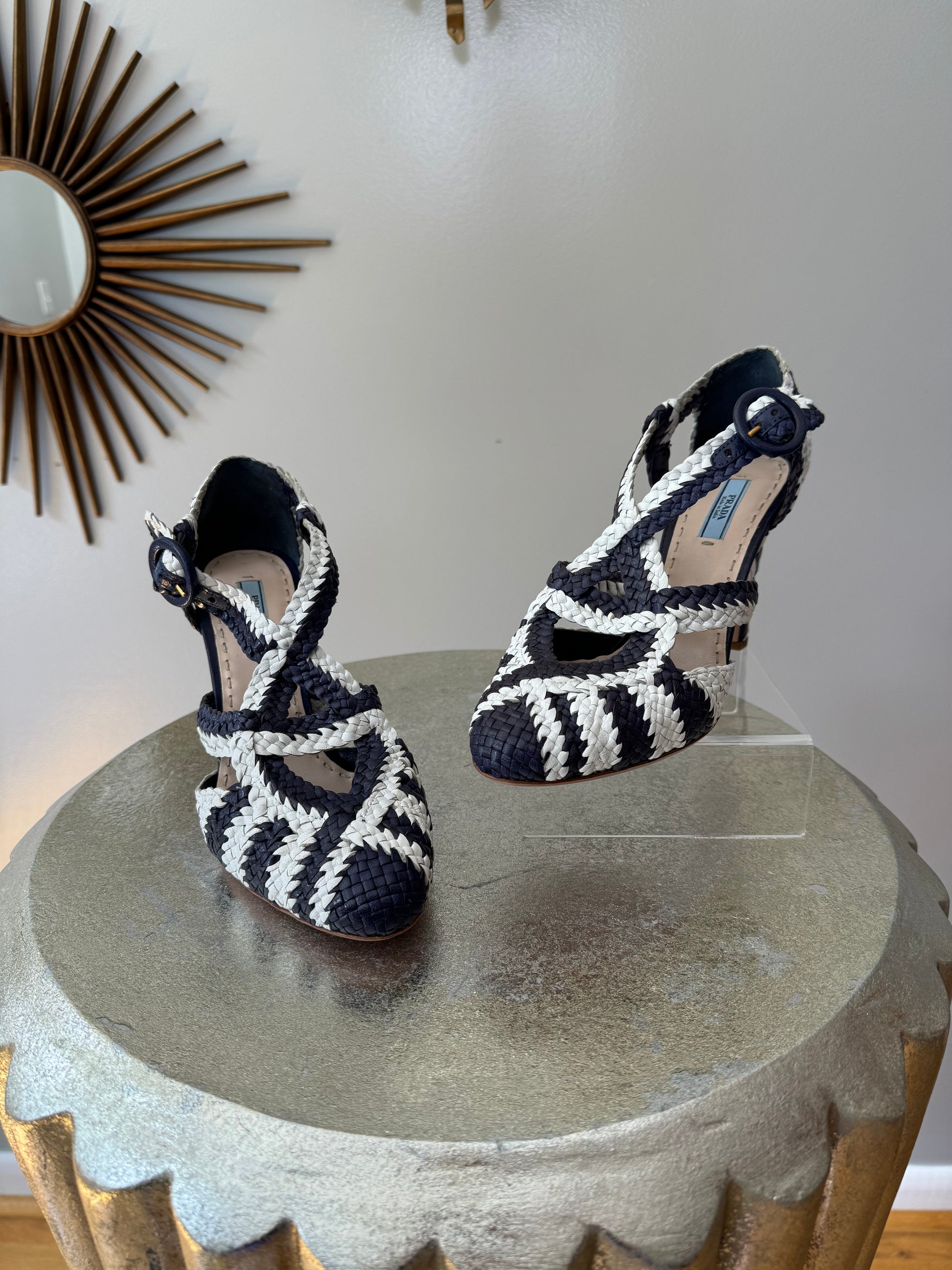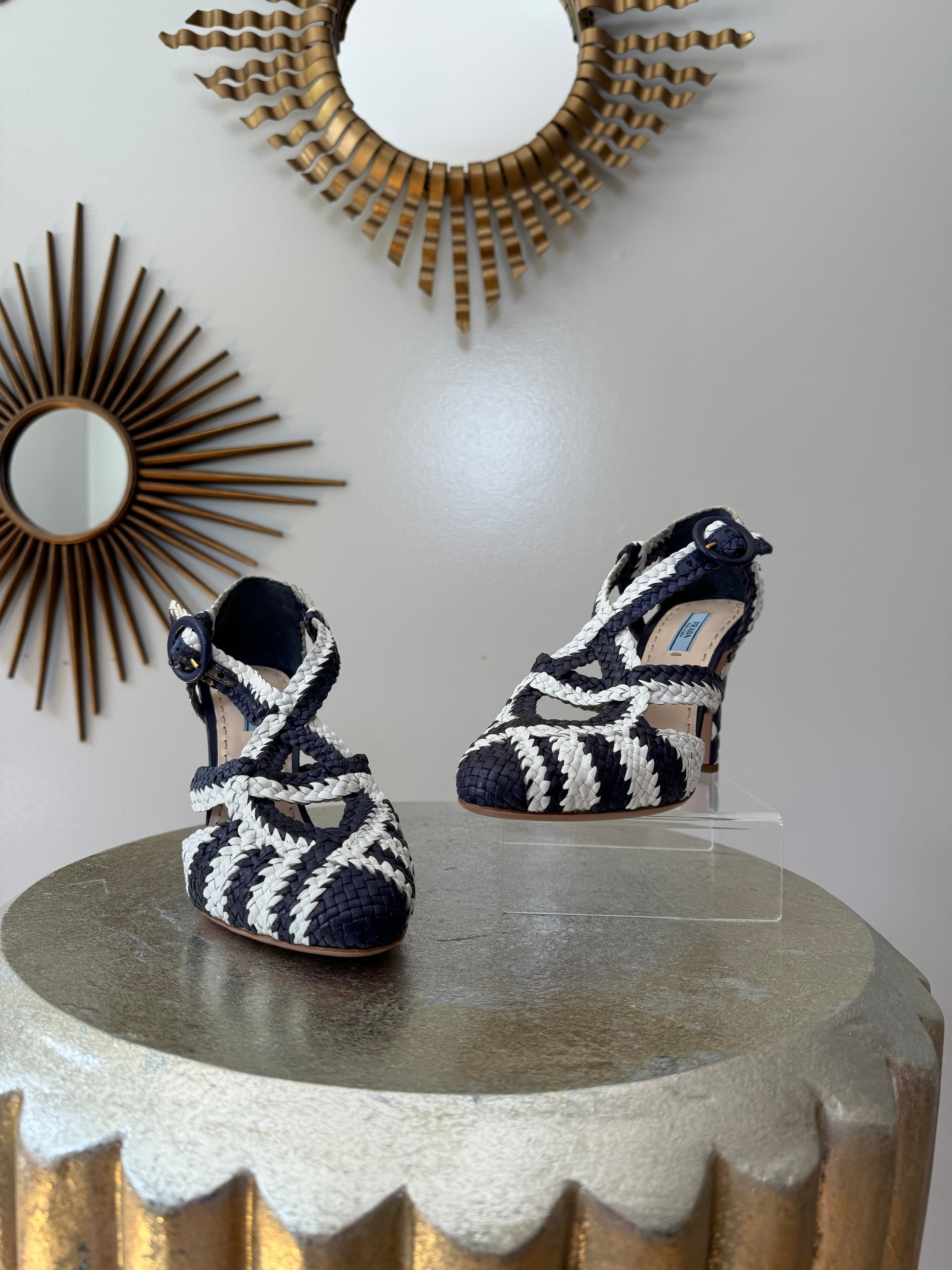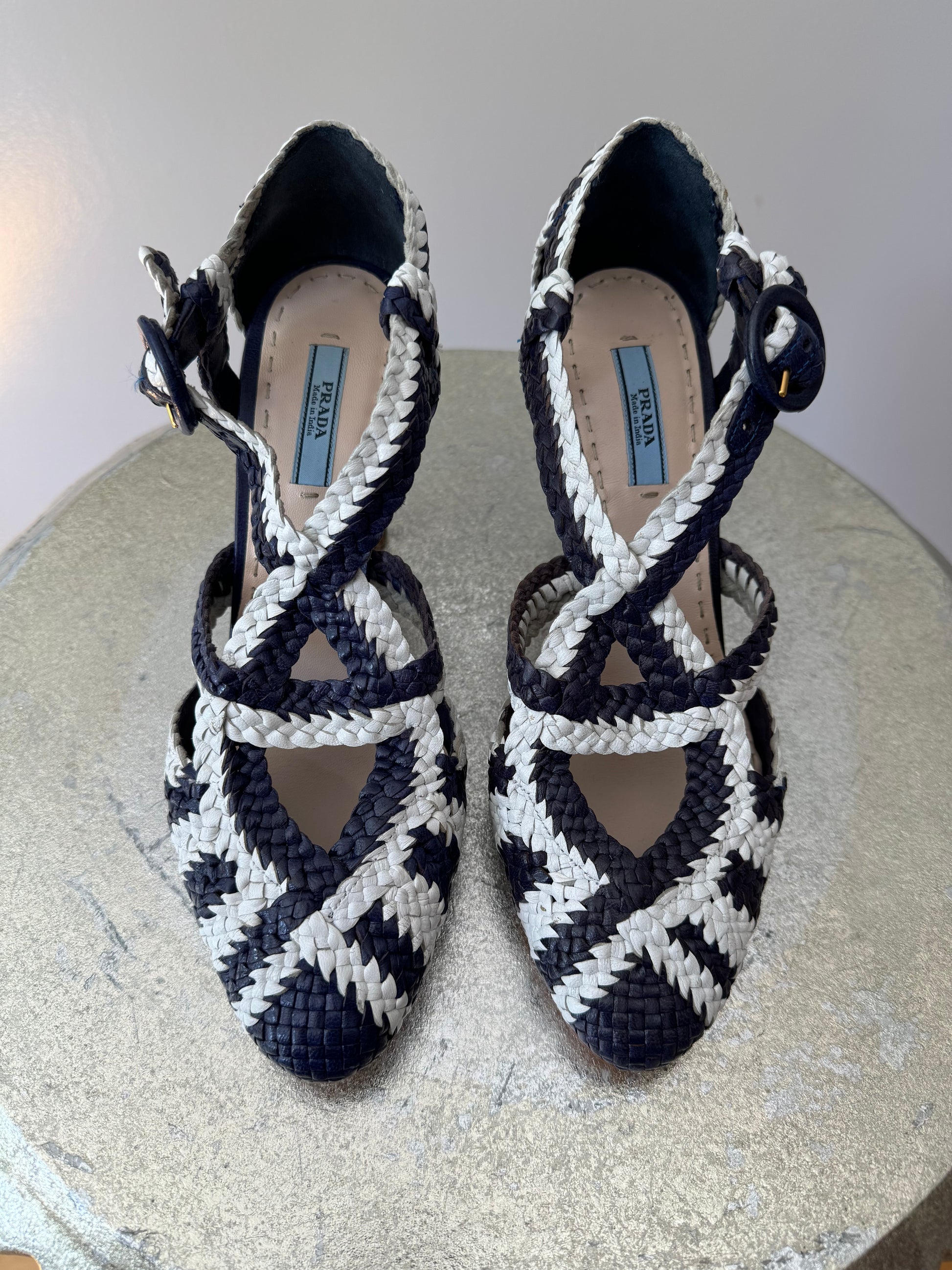 PRADA - White & Blue Spring 2011 Woven Pumps